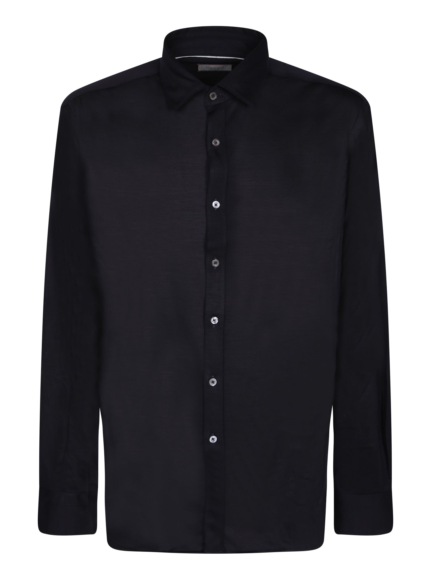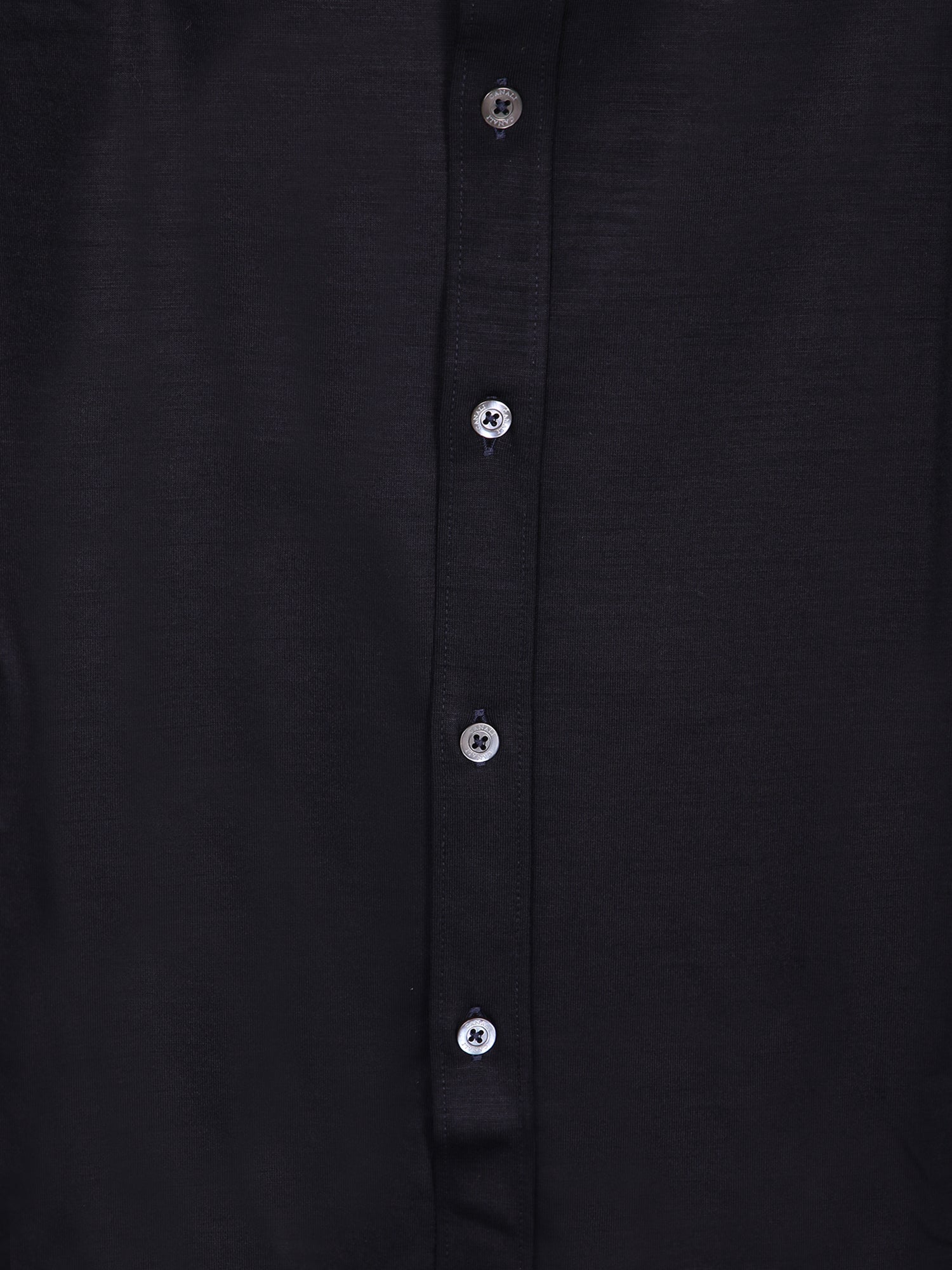 Wool jersey shirt, long sleeves, classic collar, button closure.