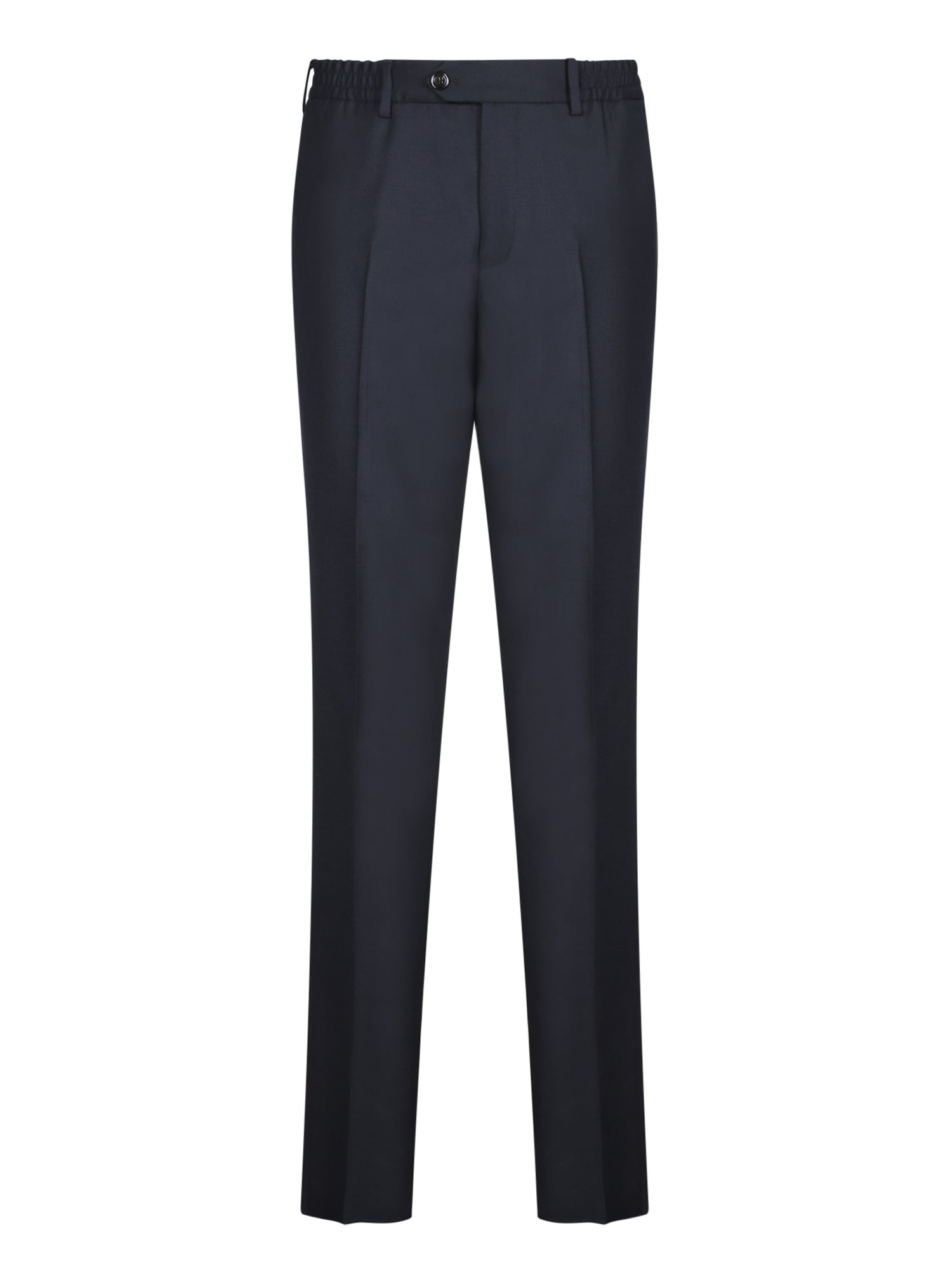 Tailored wool trousers. Features zip and button closure, side pockets.