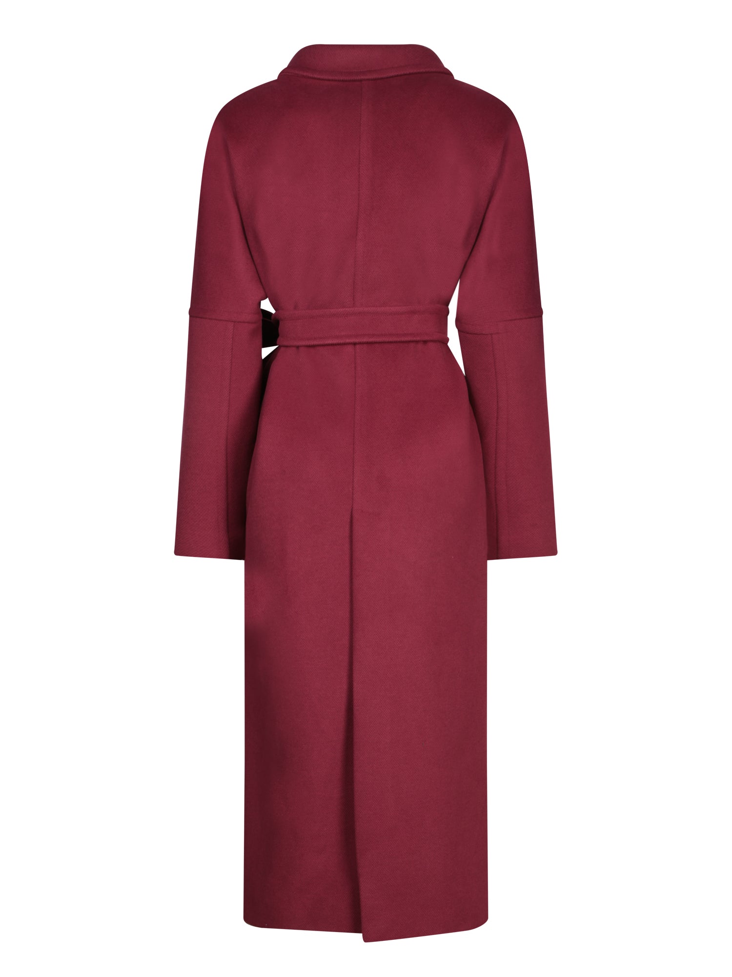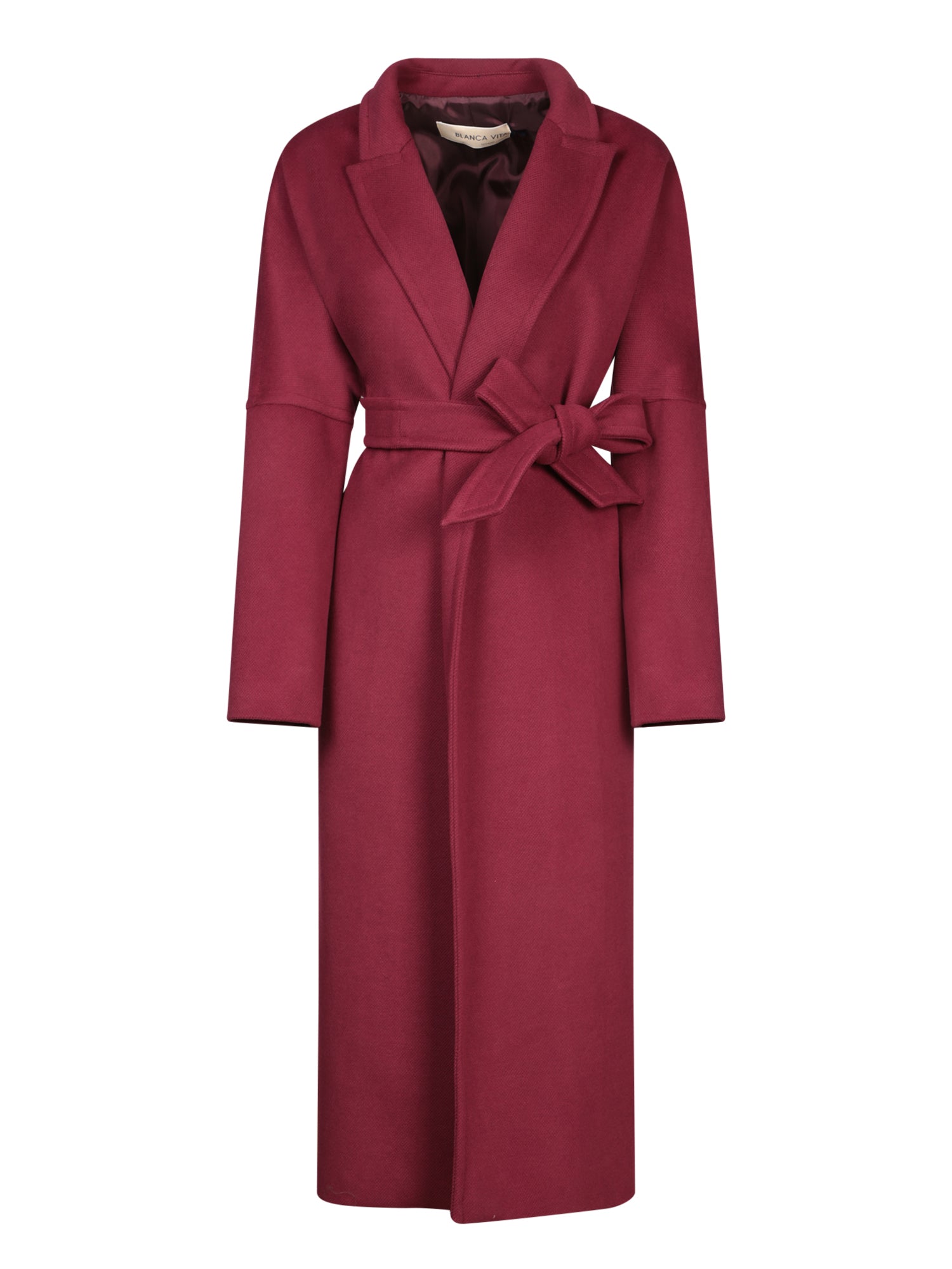Crafted from soft wool blend, this Blanca Vita coat features a rich Bordeaux hue, perfect for a sophisticated winter look. The belt highlights the silhouette, while the minimalist design ensures versatility and style.