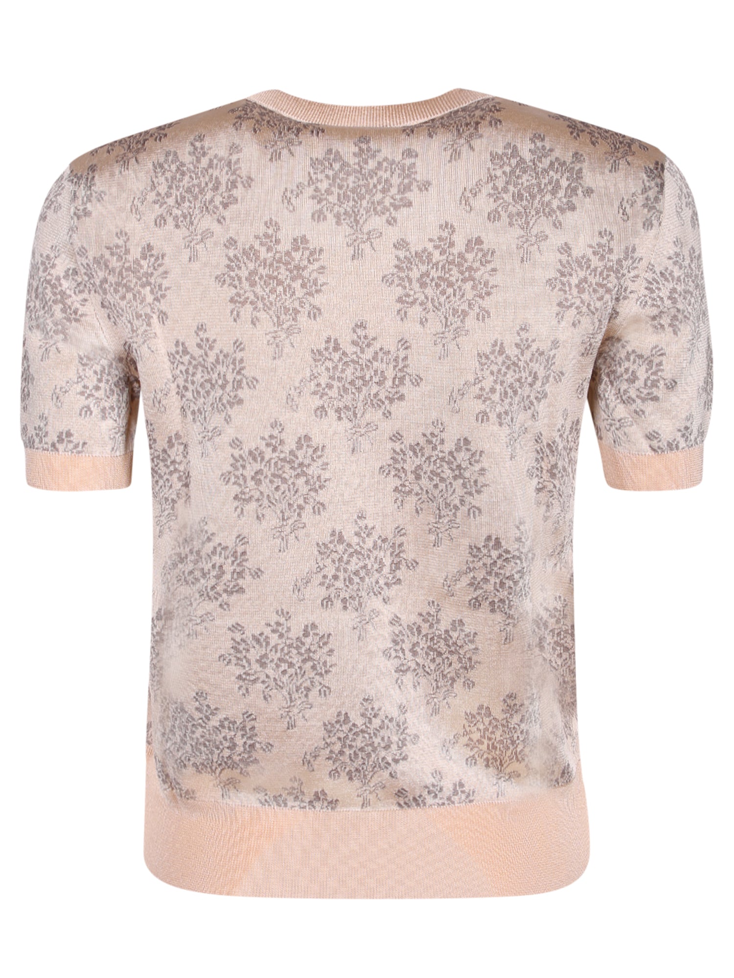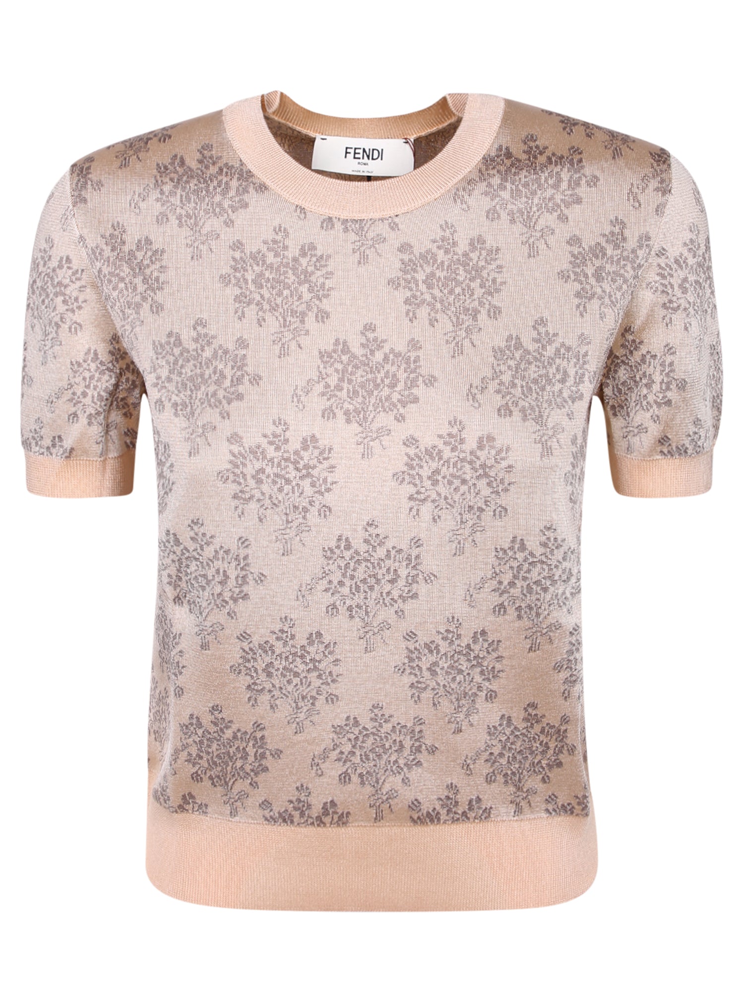 Short-sleeved jacquard t-shirt. Integrated floral pattern. Round neckline.
