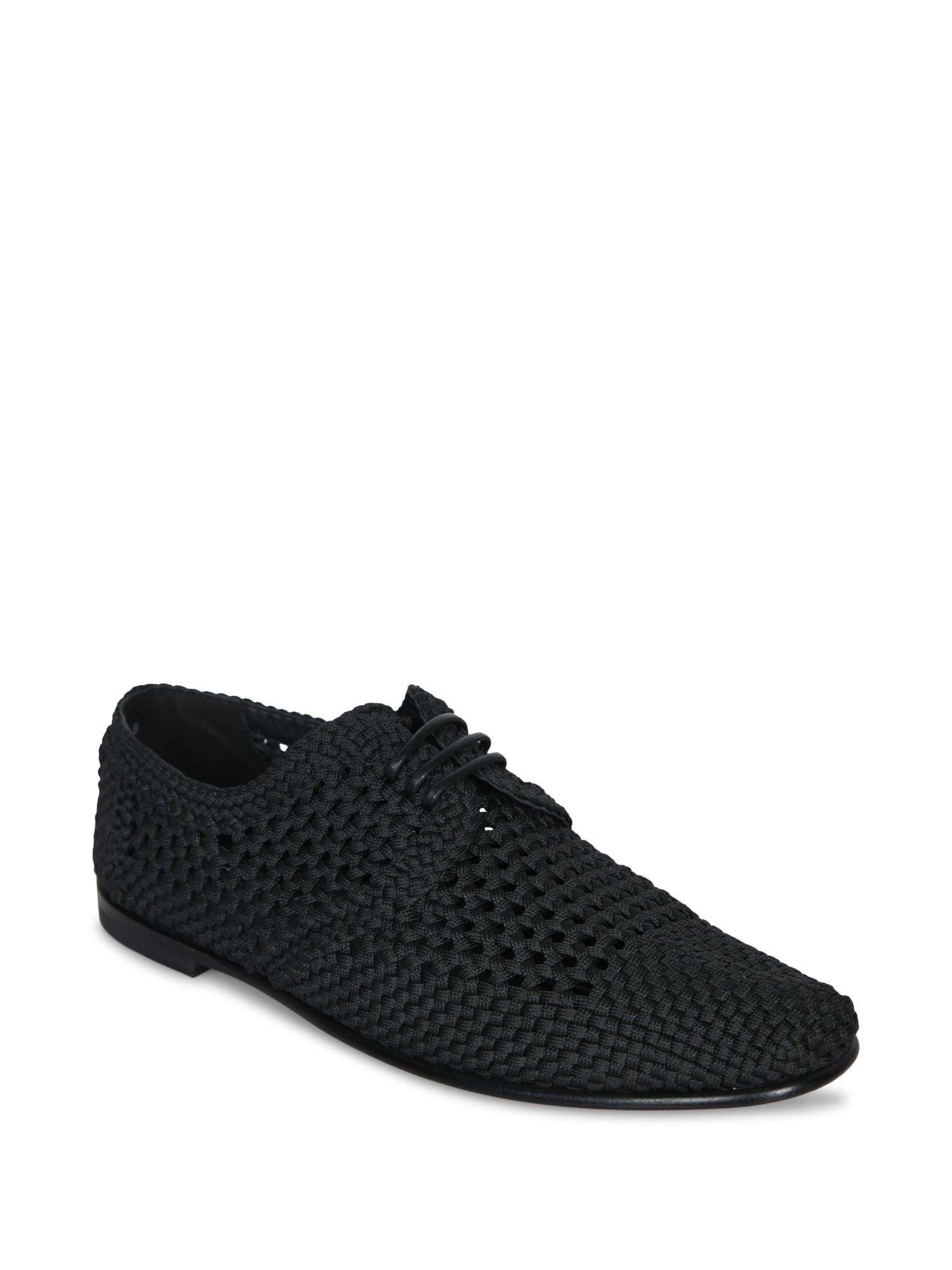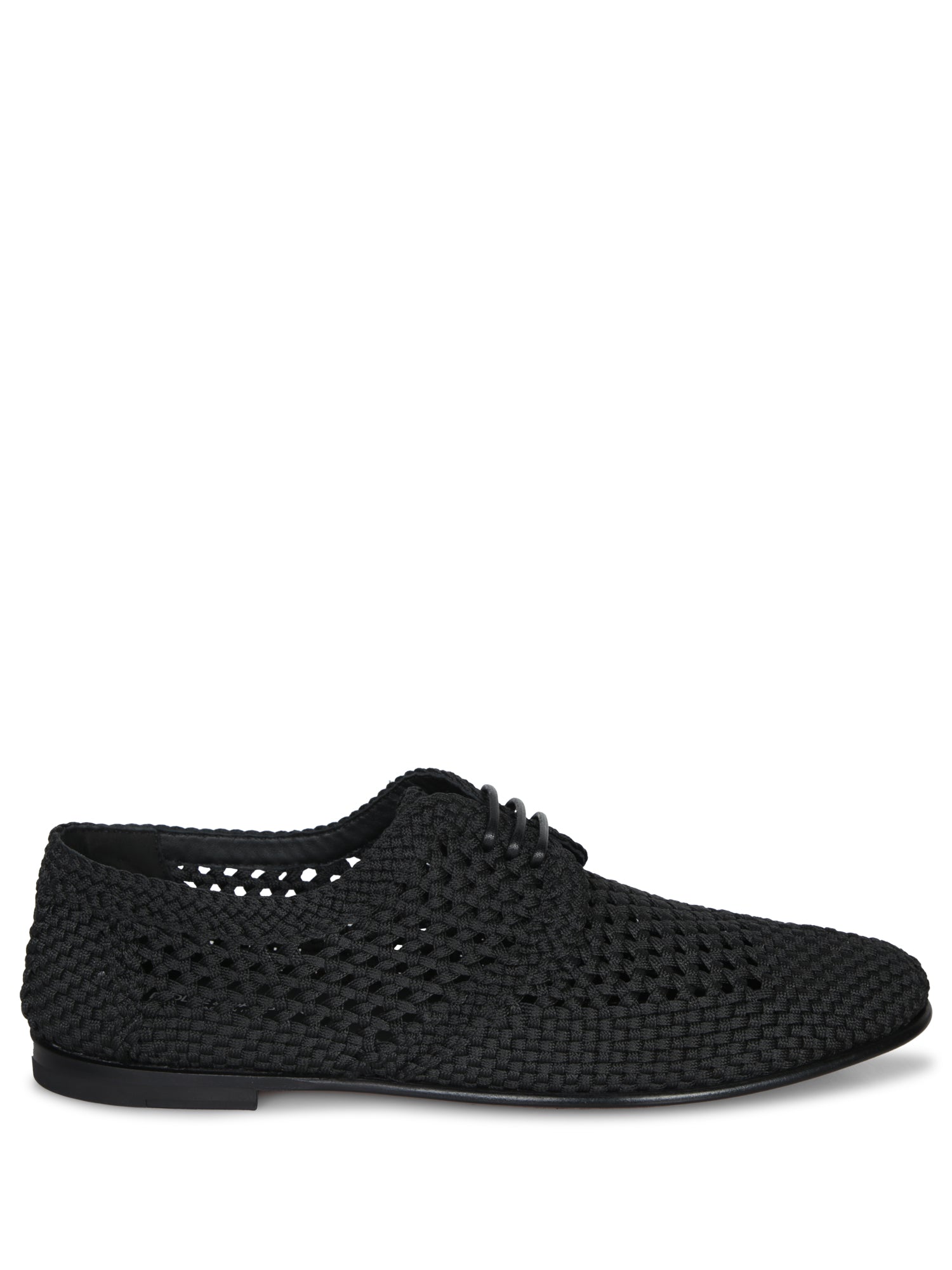 Crafted from Dolce & Gabbana's artisanal passion, these black Derby shoes feature an innovative braided structure that merges sophisticated style with breathable comfort, perfect for distinct looks both day and night.