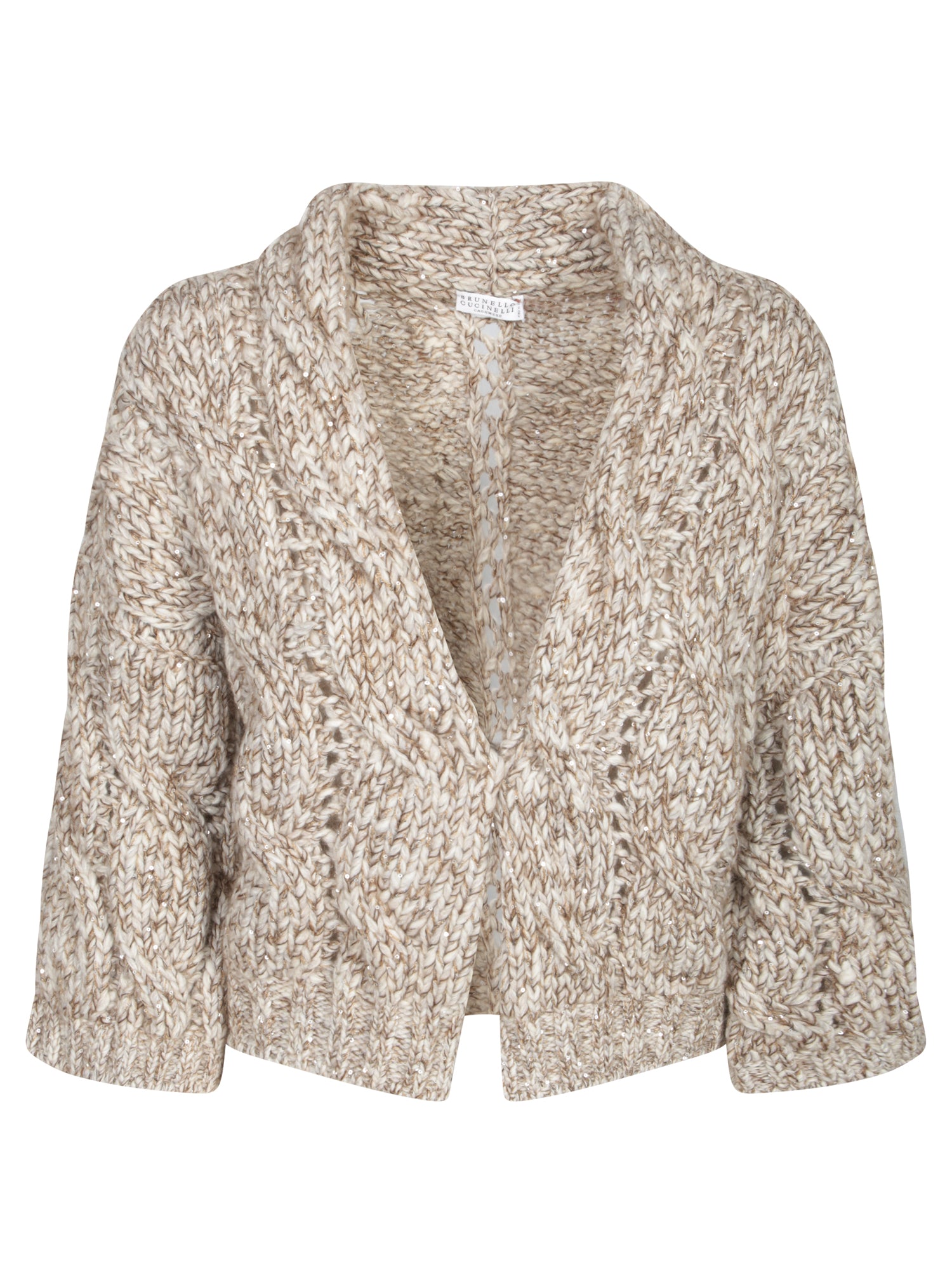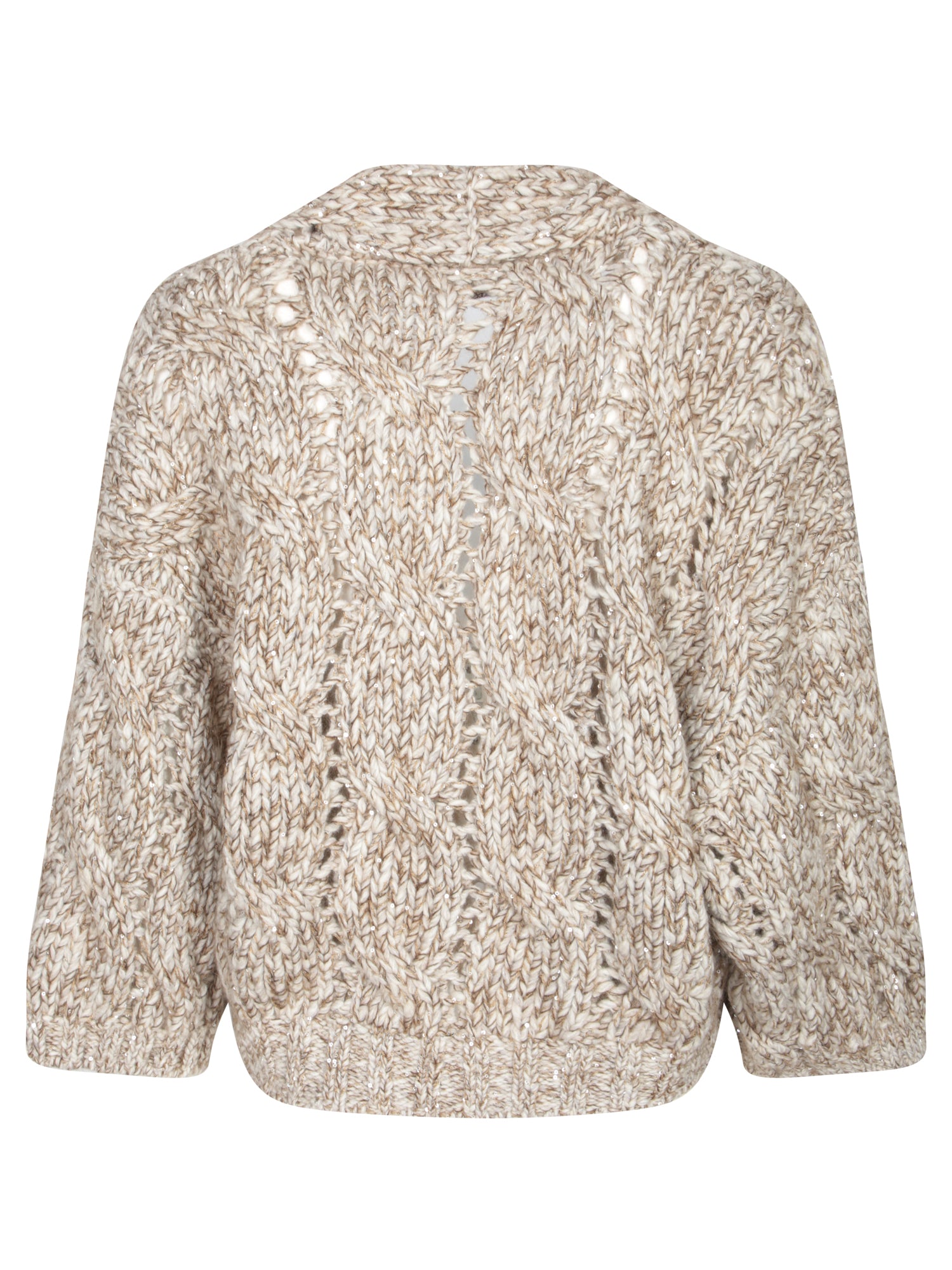 Wool and cashmere cardigan. Thick braided fabric. Beige brown color.