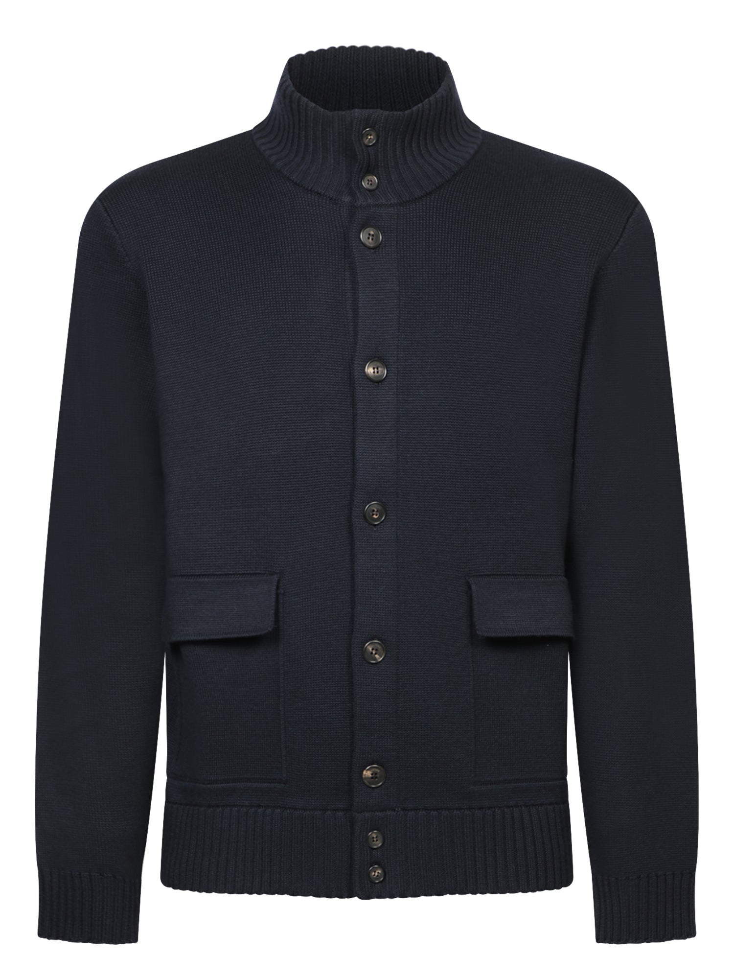 This elegant blue cardigan from Zanone features a sophisticated design with a high ribbed collar and button closure that enhances its classic allure. Front pockets provide practicality, while the regular fit ensures a flawless silhouette.