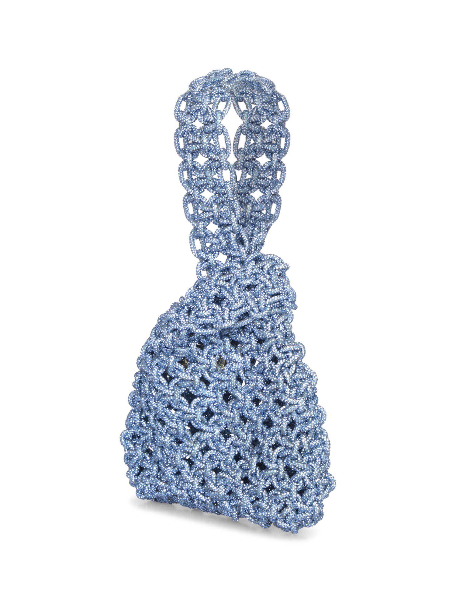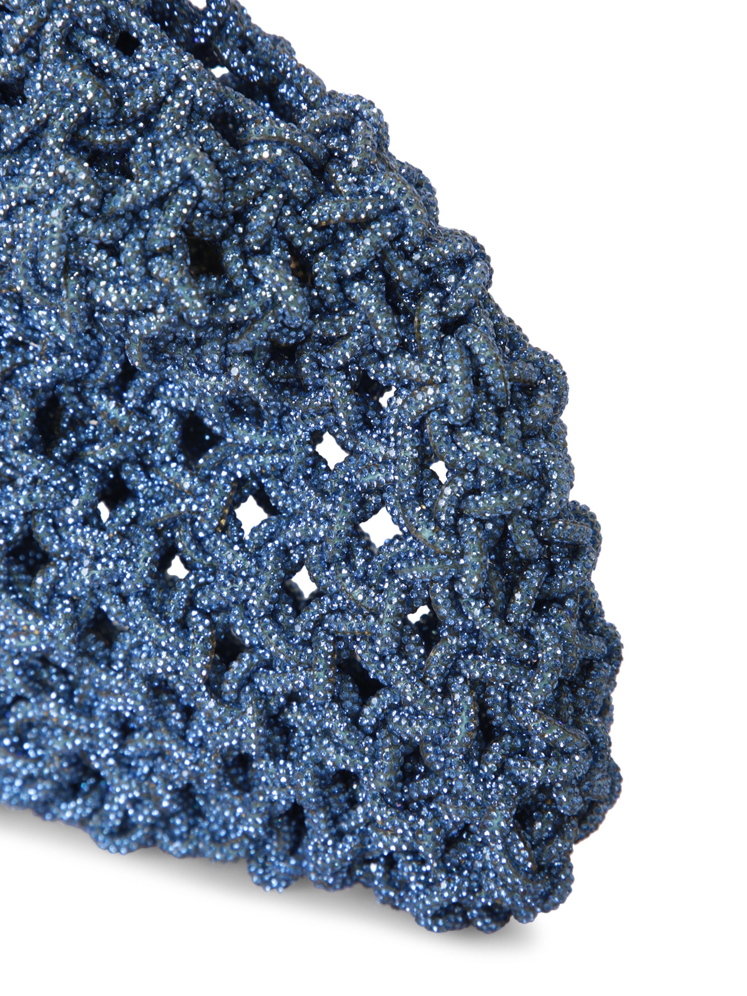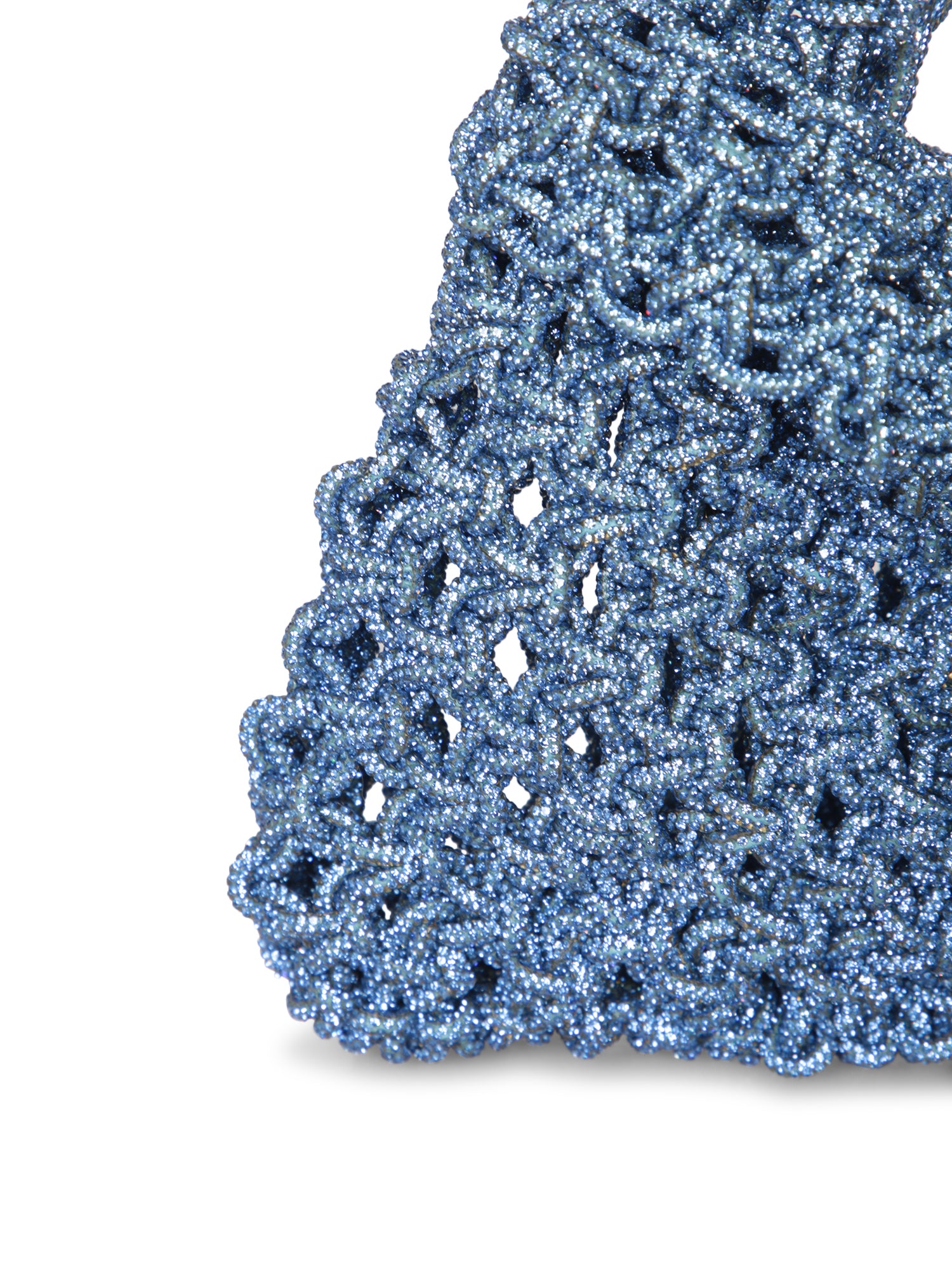Adjustable-length strap woven with sparkling threads. Secure closure with intricate, modern design.