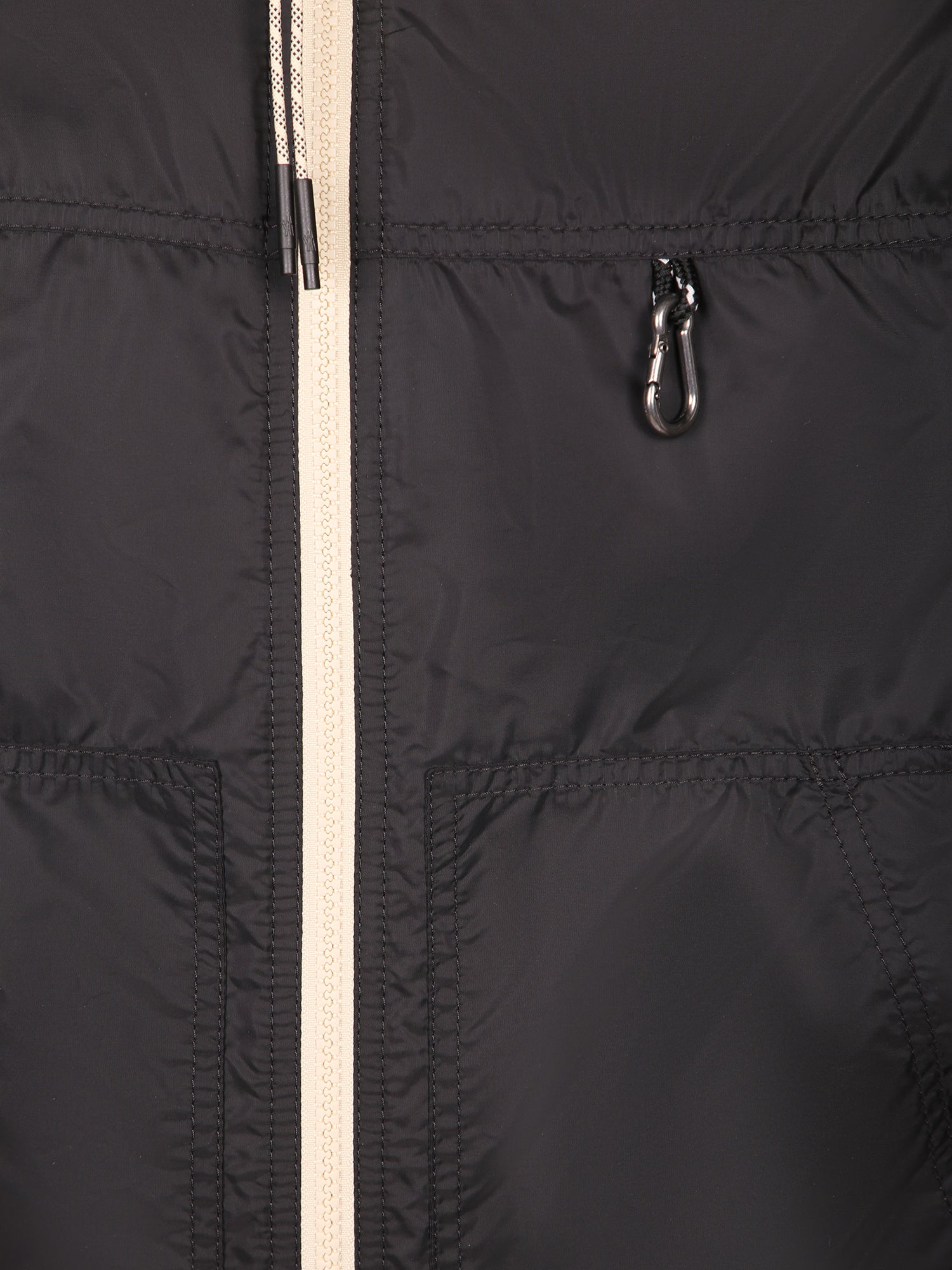 Lightweight nylon. Zip closure. Front zip pockets. High collar.