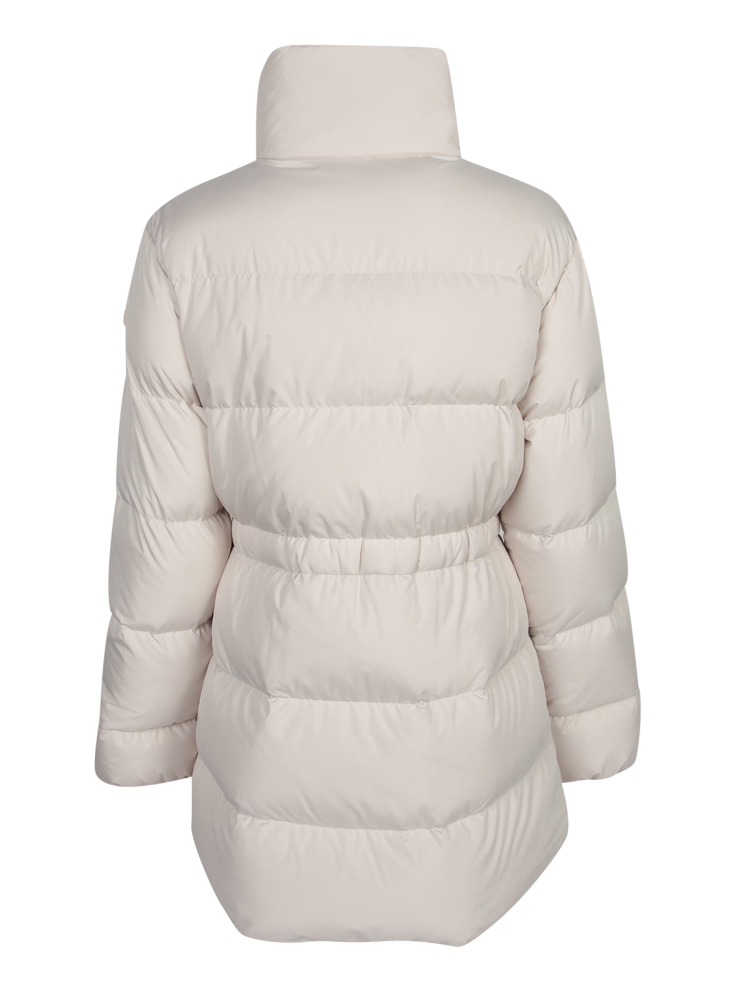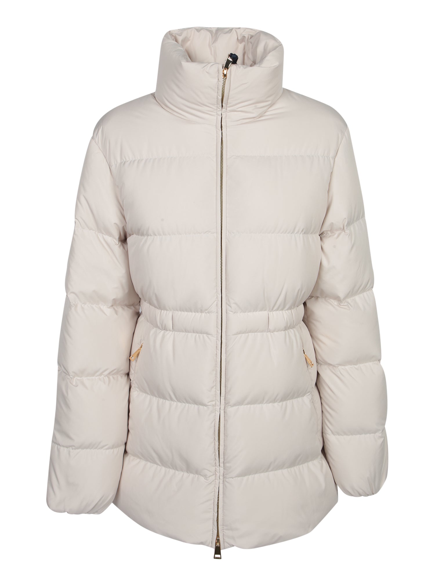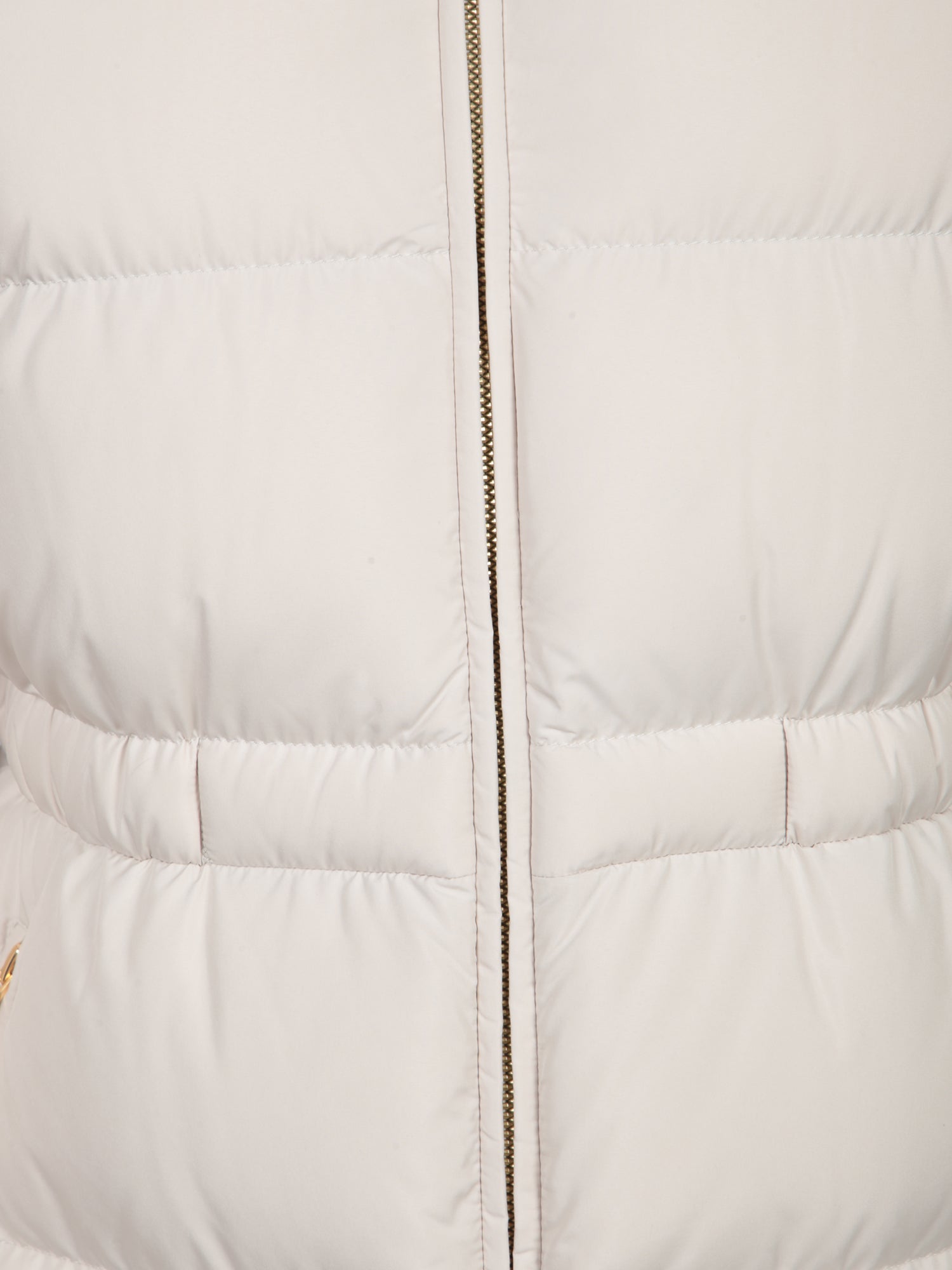 Foldable high collar. Golden zip closure. Vertical side pockets.