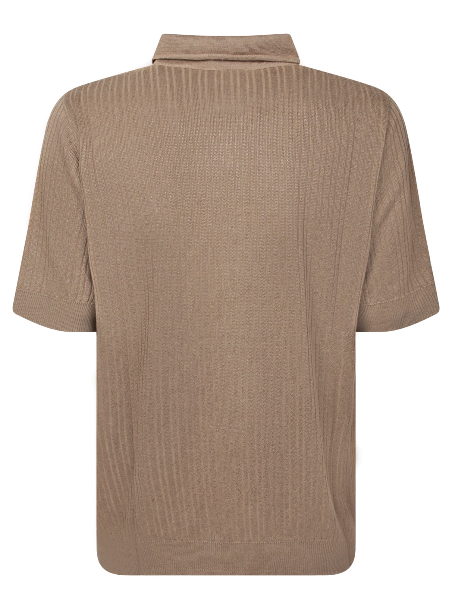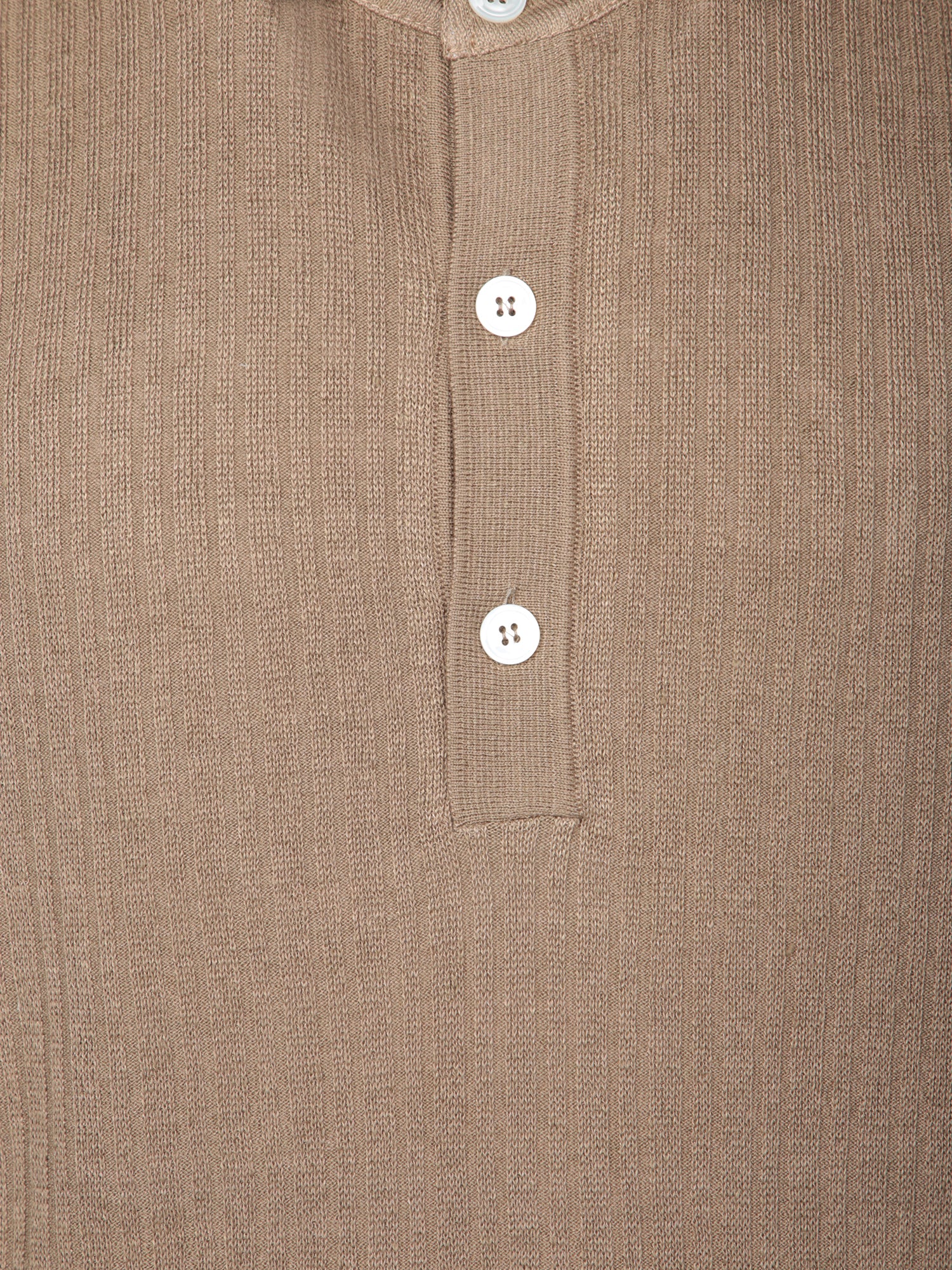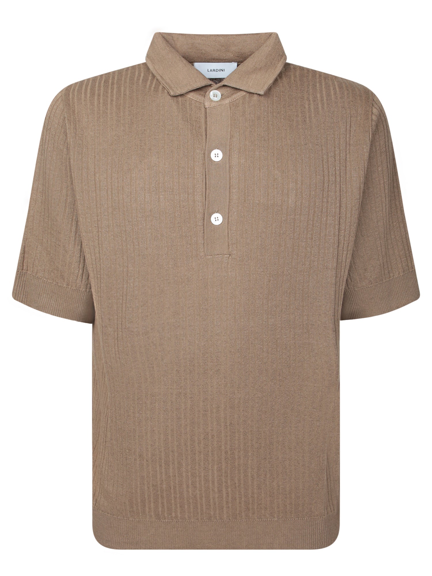 An elegant Lardini cotton-linen blend polo featuring a minimalist design with a three-button closure and classic collar. The fine ribbed fabric provides a refined and versatile appearance, ideal for both casual and semi-formal occasions.