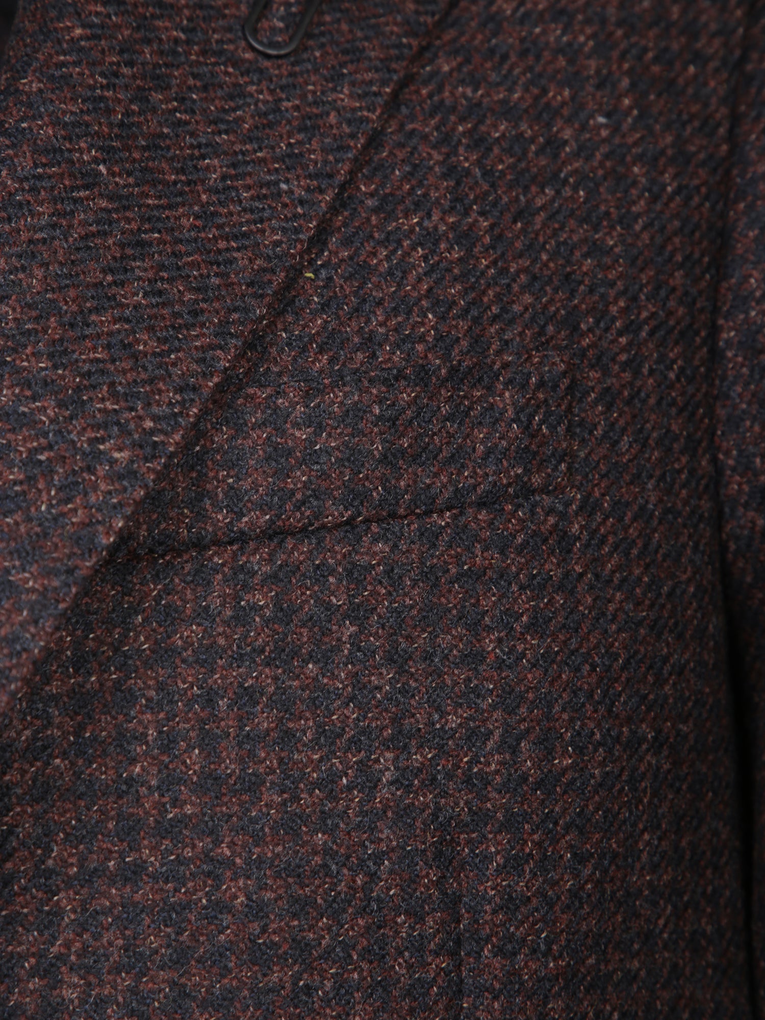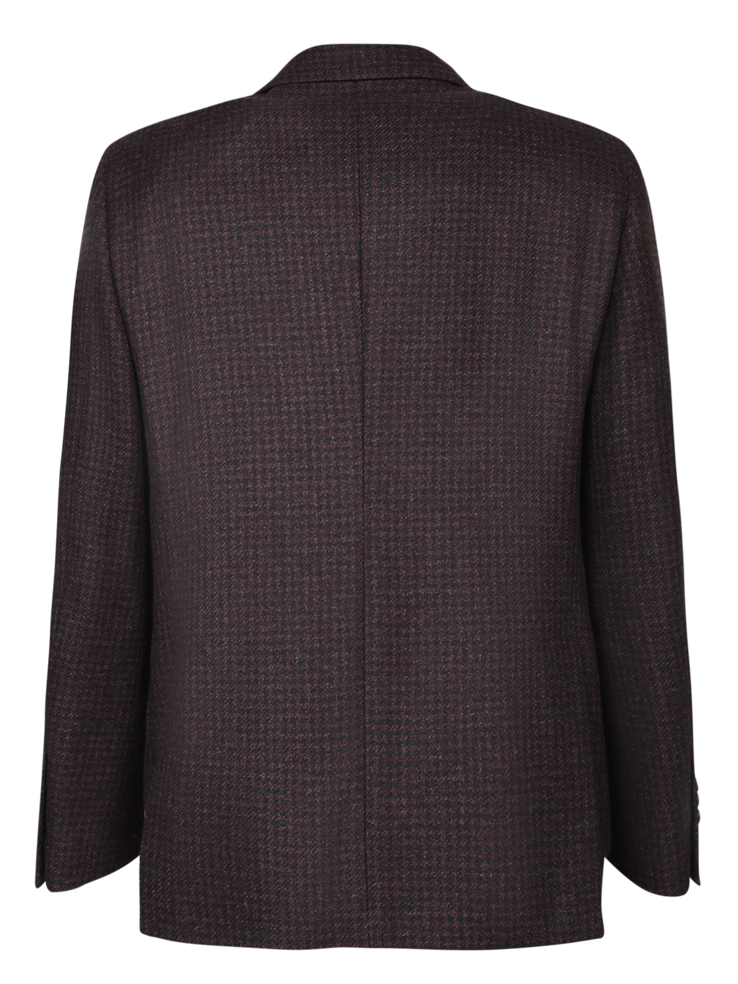 Two-button mixed fabric jacket. Classic lapels, two front pockets, front button closure.