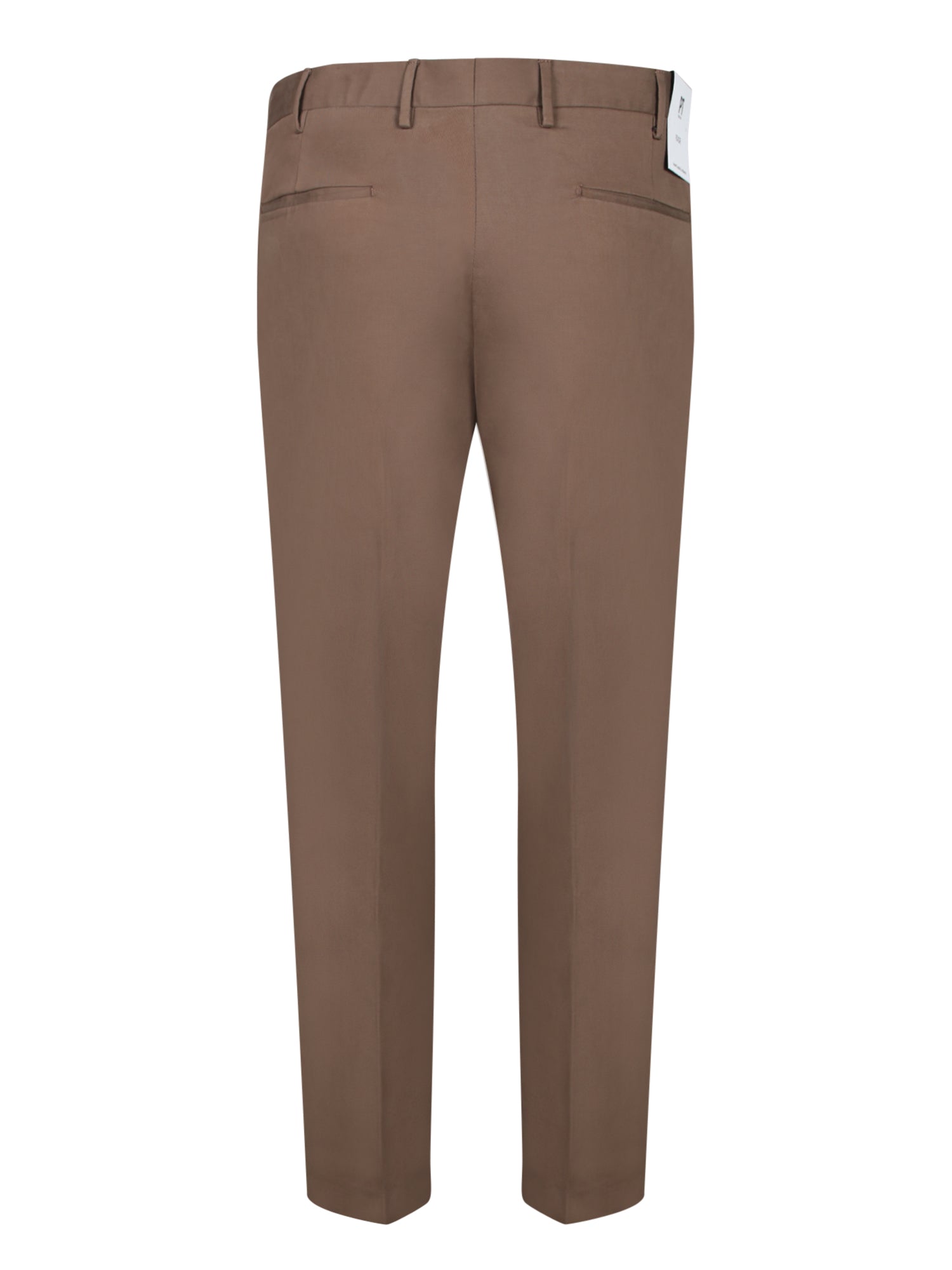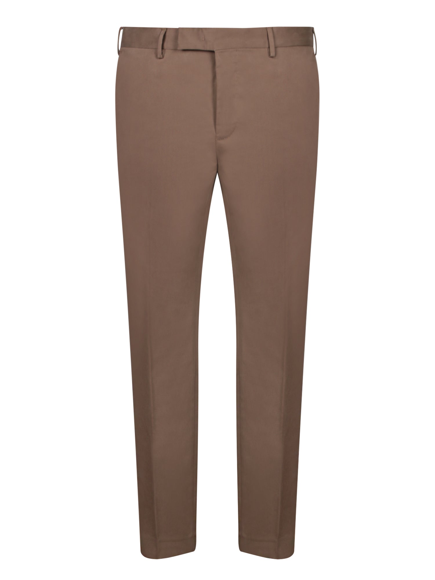 Wool gabardine trousers, zipper and button closure, side pockets and back welt pockets.