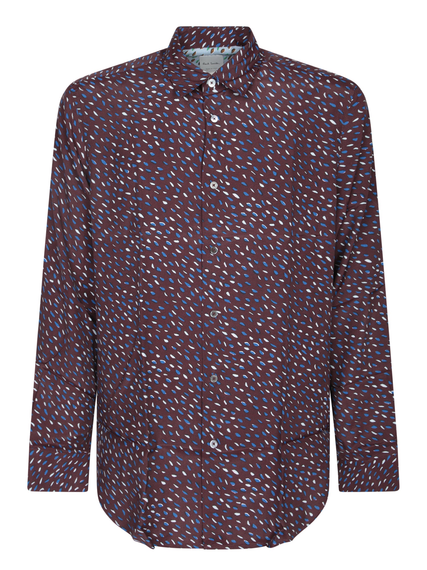 Elegant Paul Smith men's shirt featuring a distinctive brown and blue geometric pattern, perfect for a sophisticated look both in the office and on casual occasions.