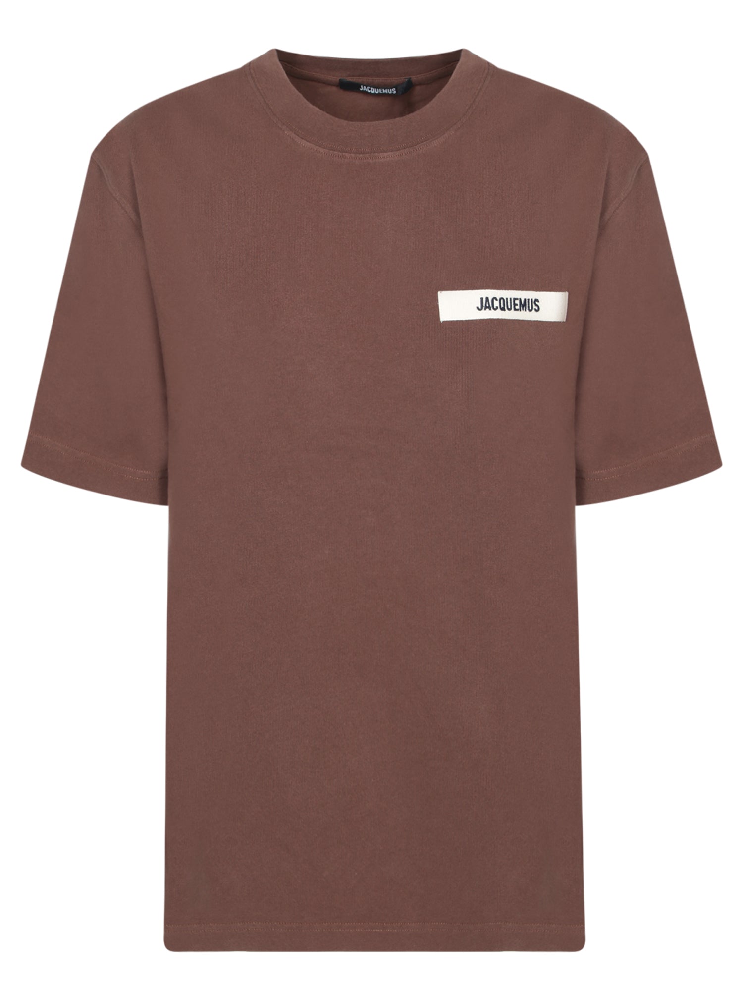 Short sleeves. White 'JACQUEMUS' logo on front gros grain patch. Crew neck.