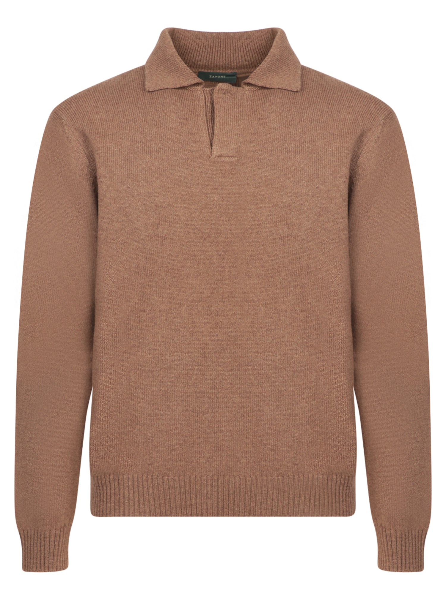 Long sleeves. Knitted polo collar. Ribbed finish.