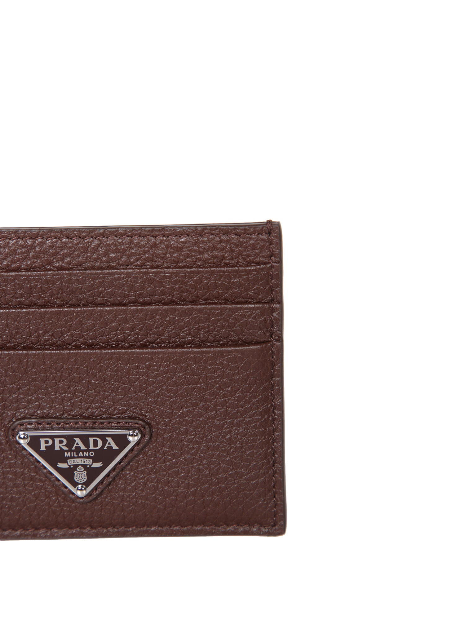 Crafted from premium brown saffiano leather, this PRADA card holder combines durability and style. An elegant frontal metal logo adds a distinctive touch.