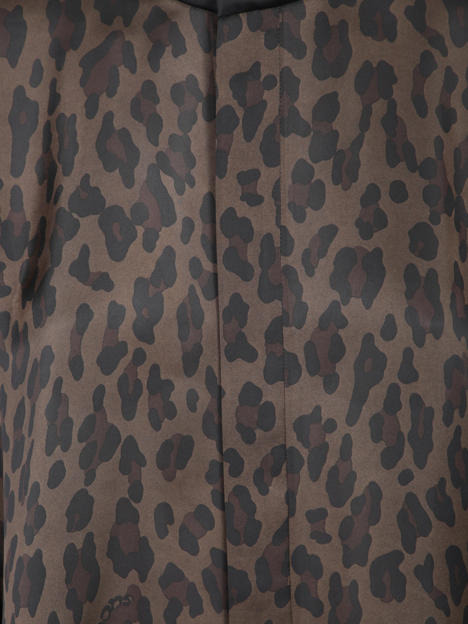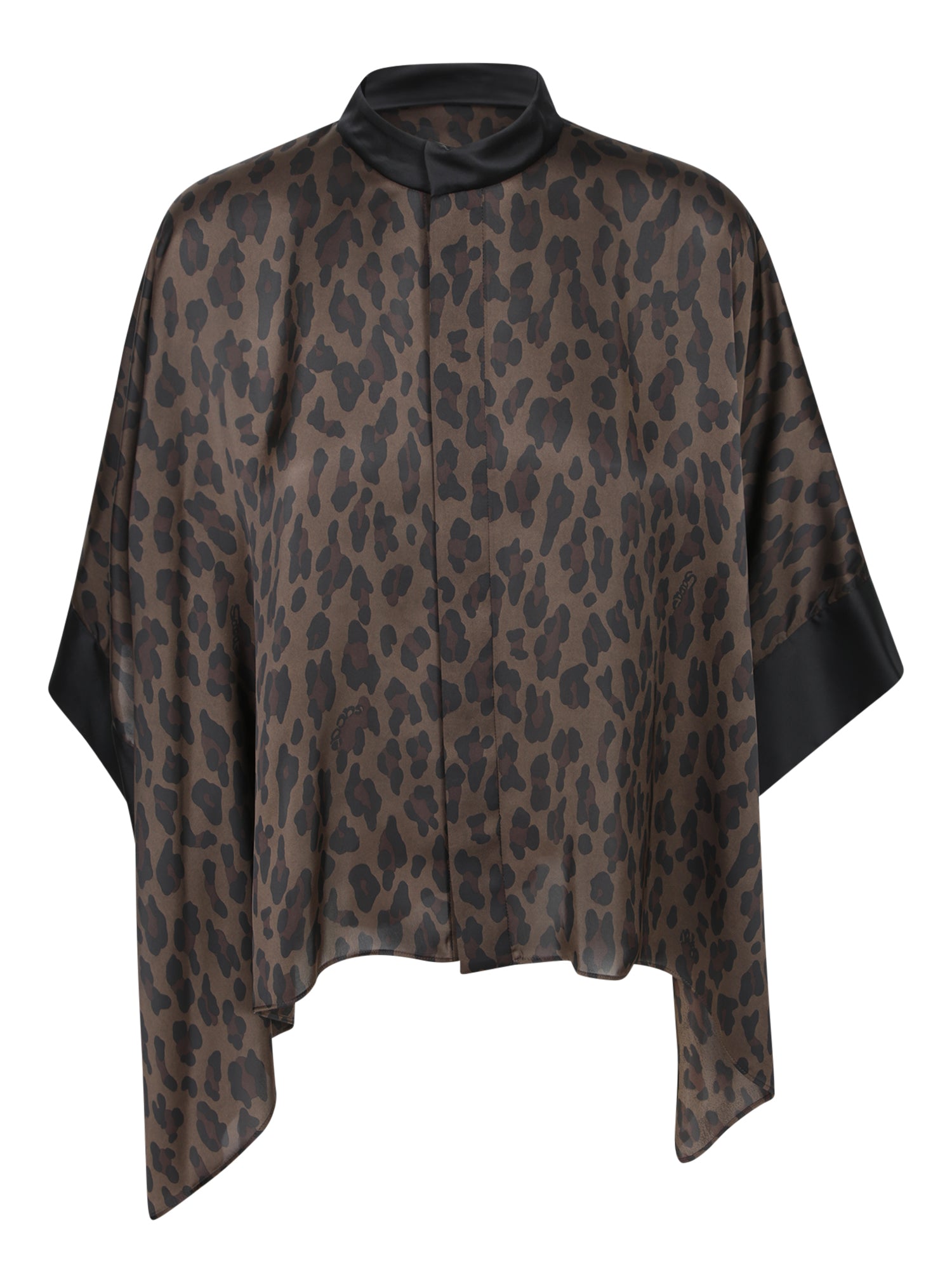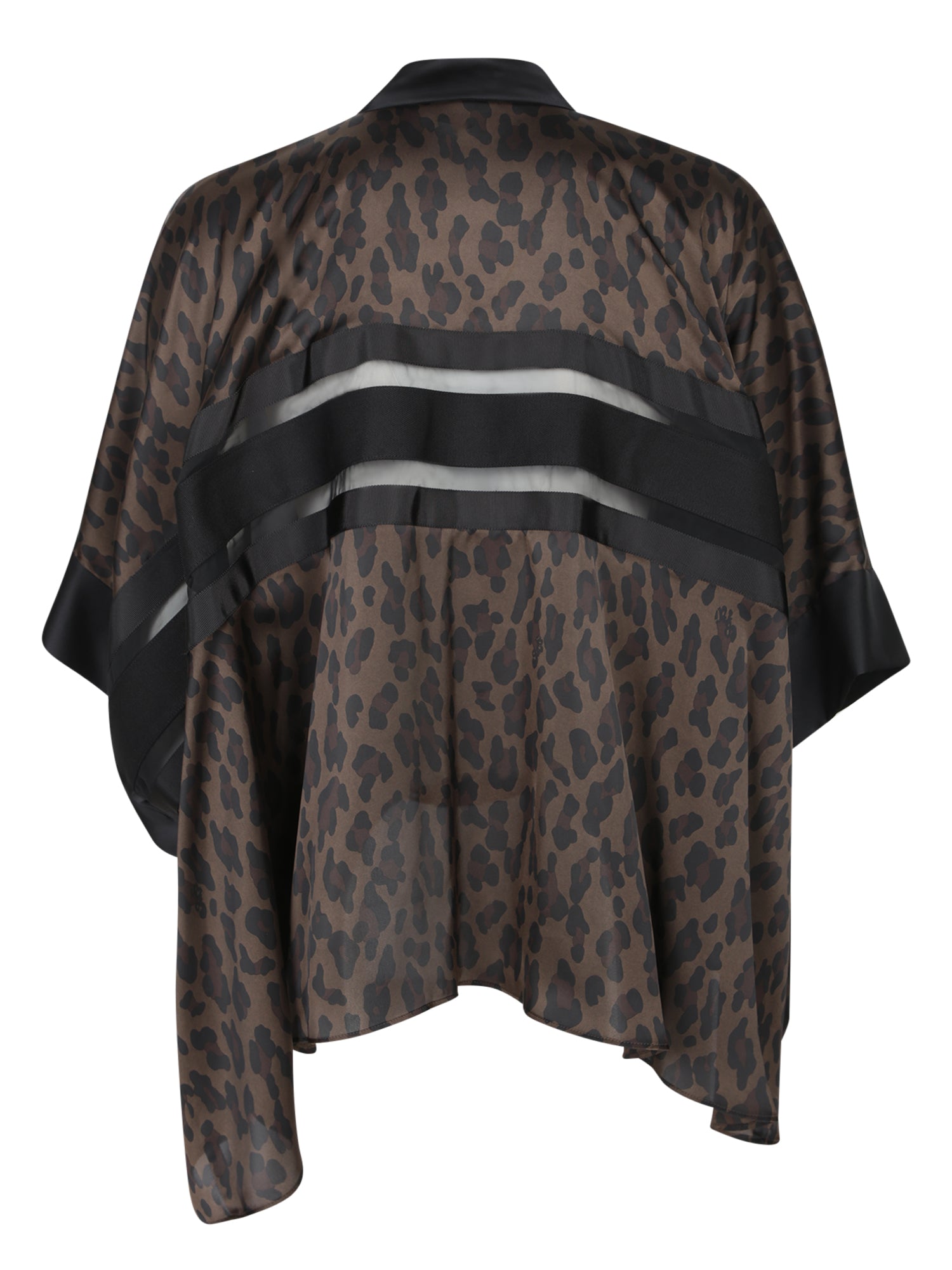 This elegant SACAI satin shirt features a captivating leopard print and a contrasting high black collar, providing a distinct touch of class and uniqueness.