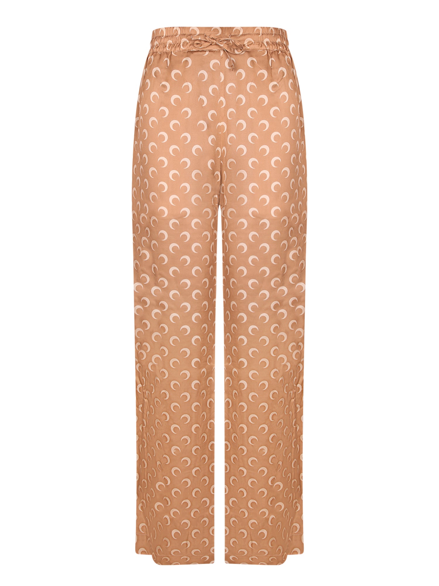 Satin pants with elastic and drawstring waist. Iconic moon print throughout.
