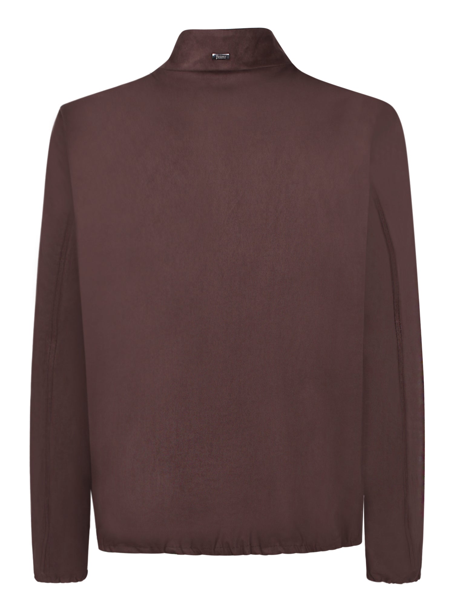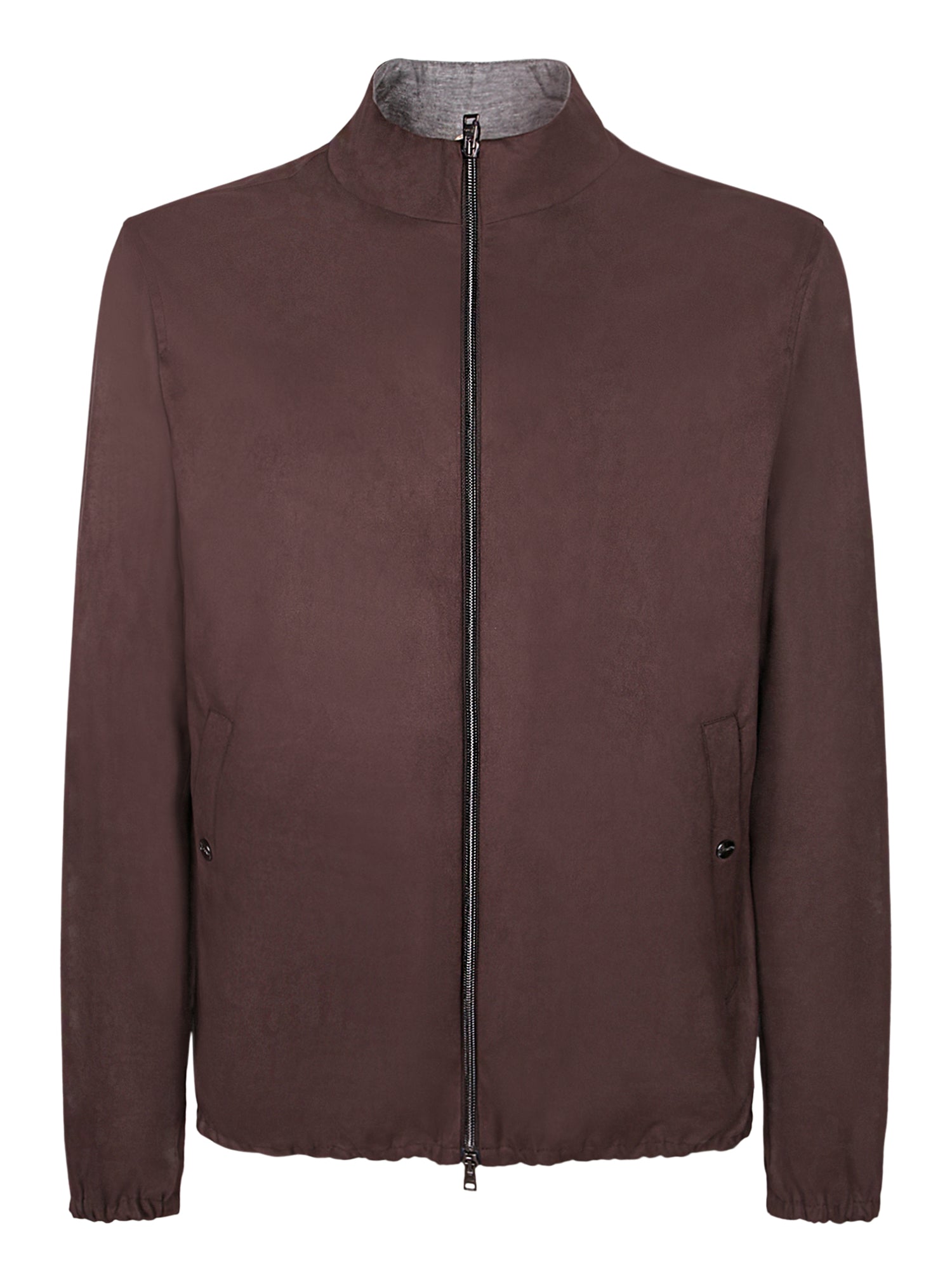 Jacket in suede effect fabric. Front zip closure. Side pockets with button.