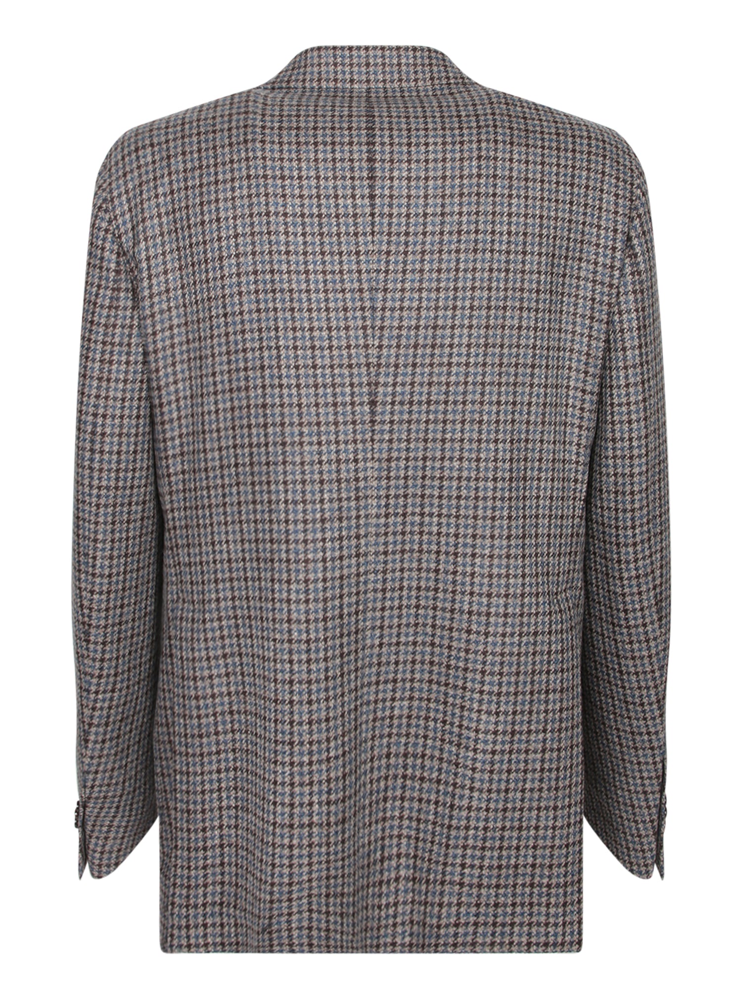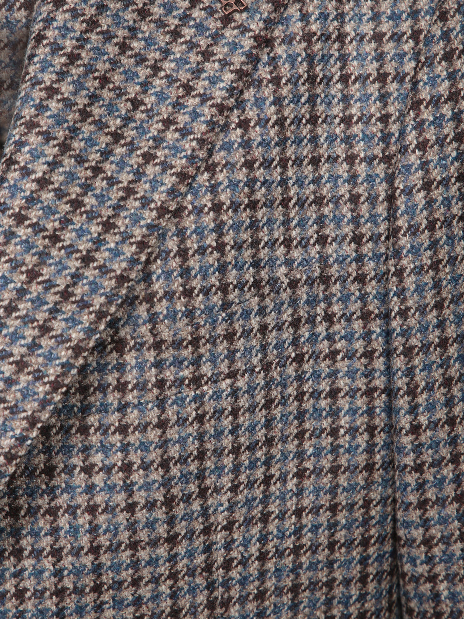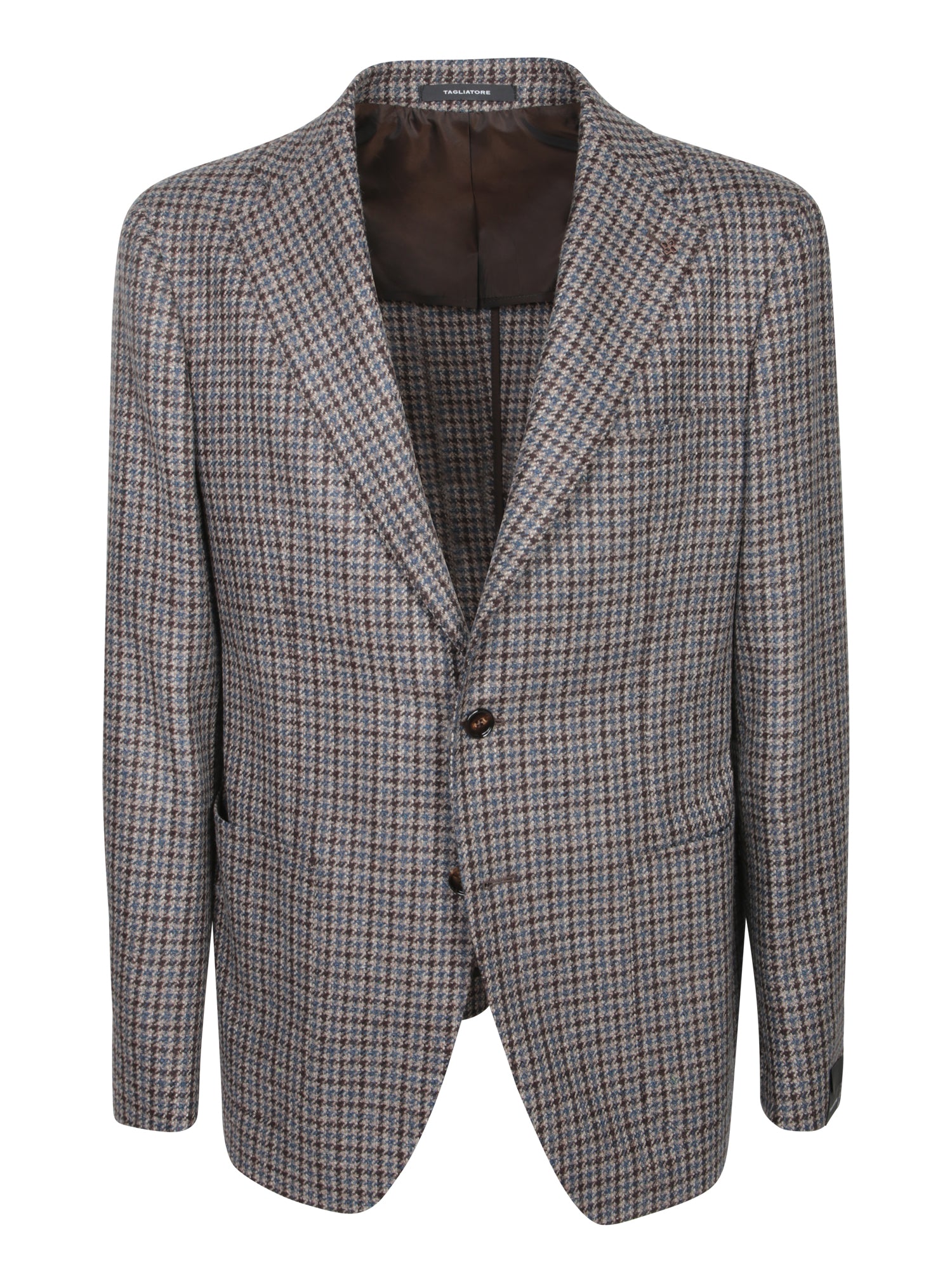 Structured tweed jacket. Two-button front closure, classic lapels, welt pockets.