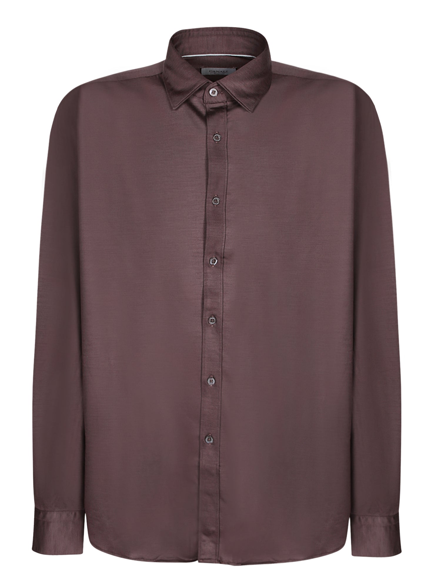 Long sleeve wool jersey shirt. Brown color with button closure.
