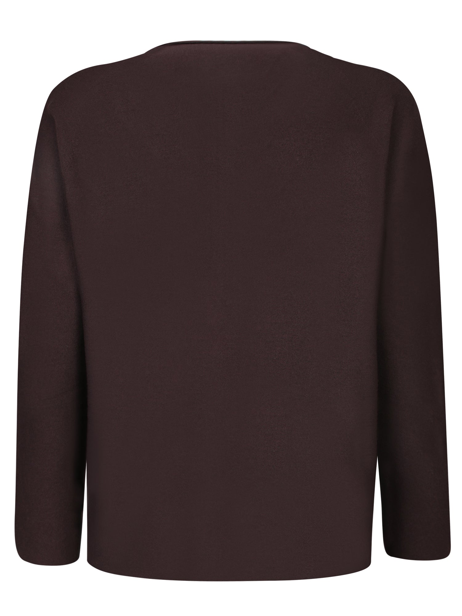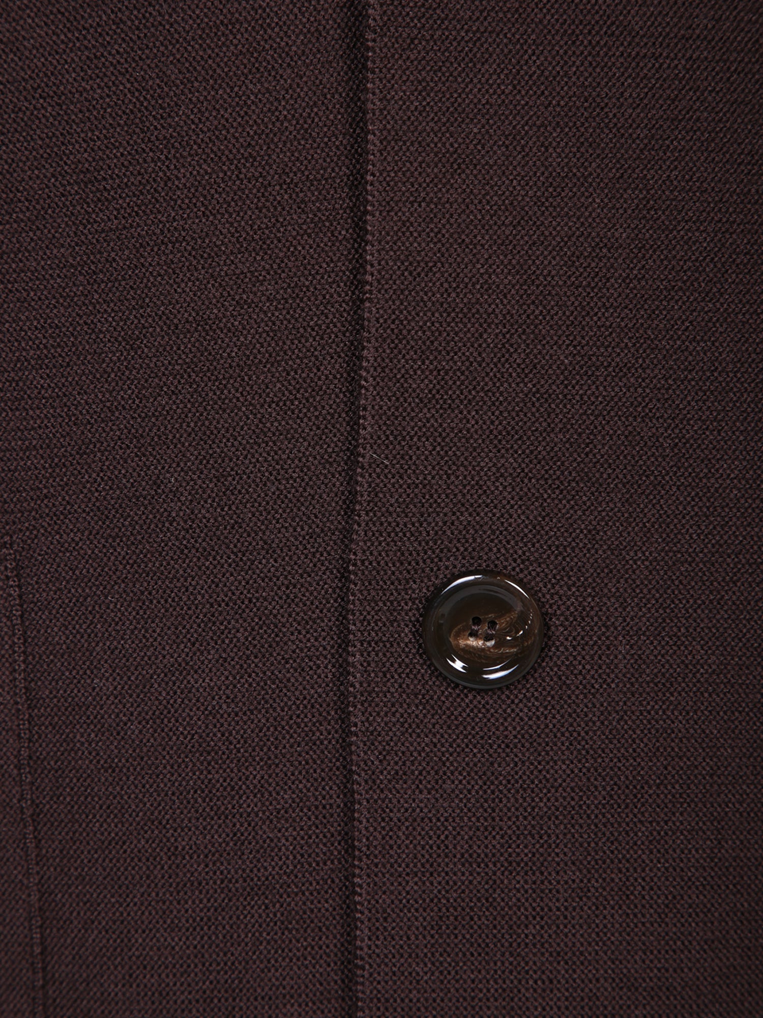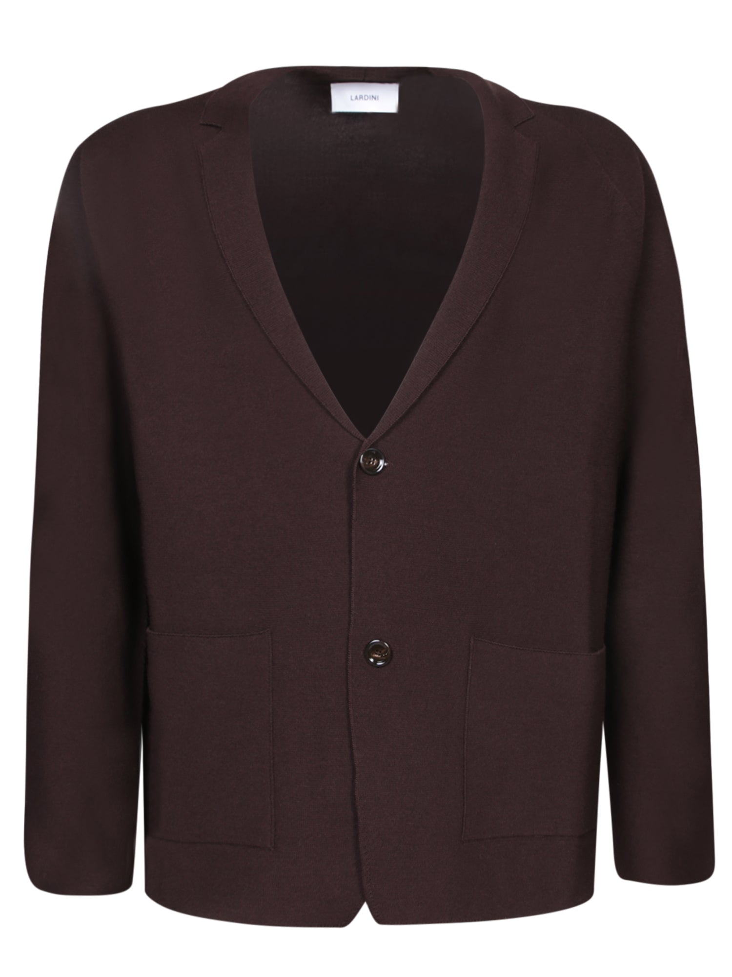 Two-button cardigan in wool silk blend. Patch pockets and long sleeves. Knit finishes.