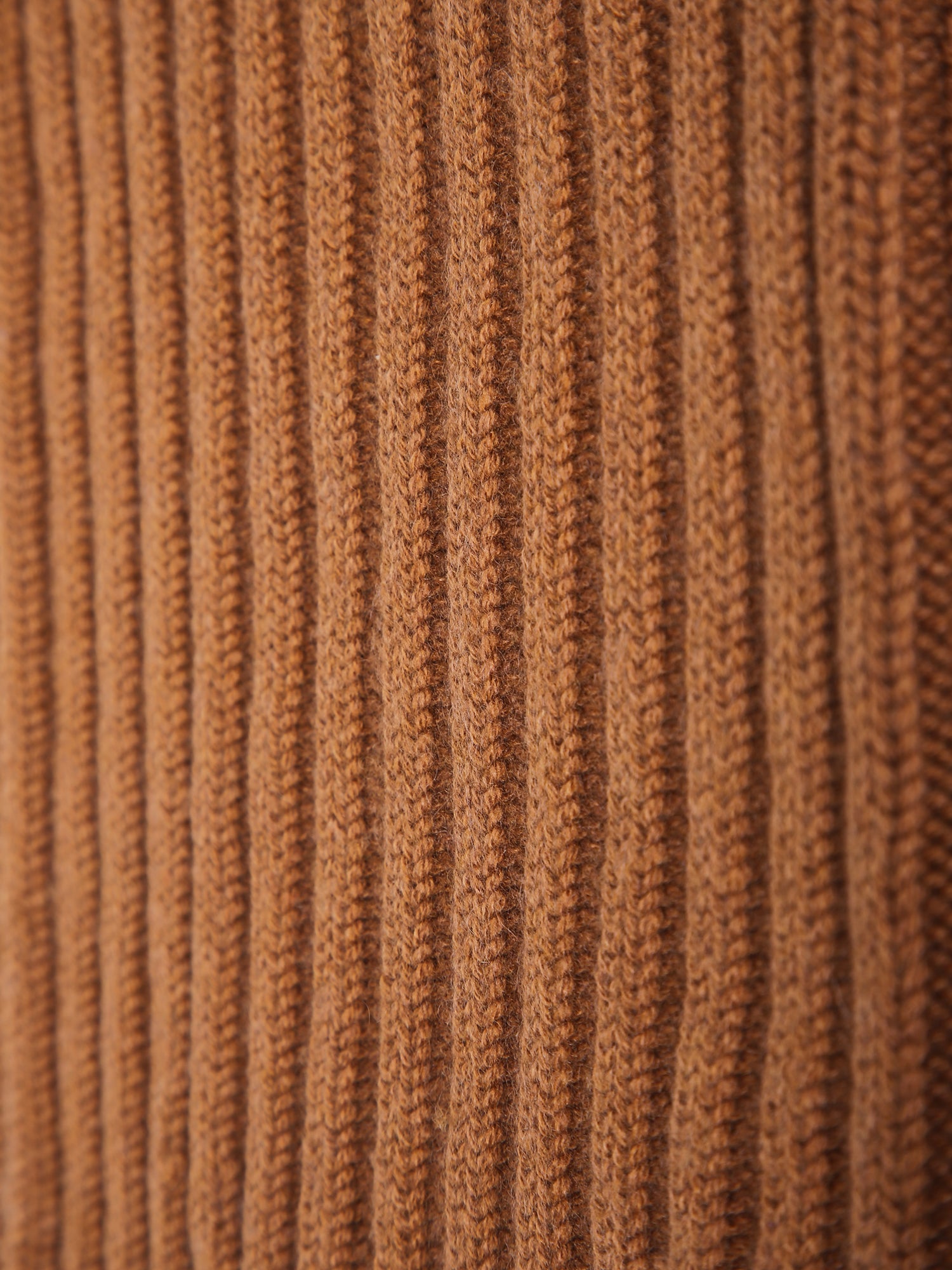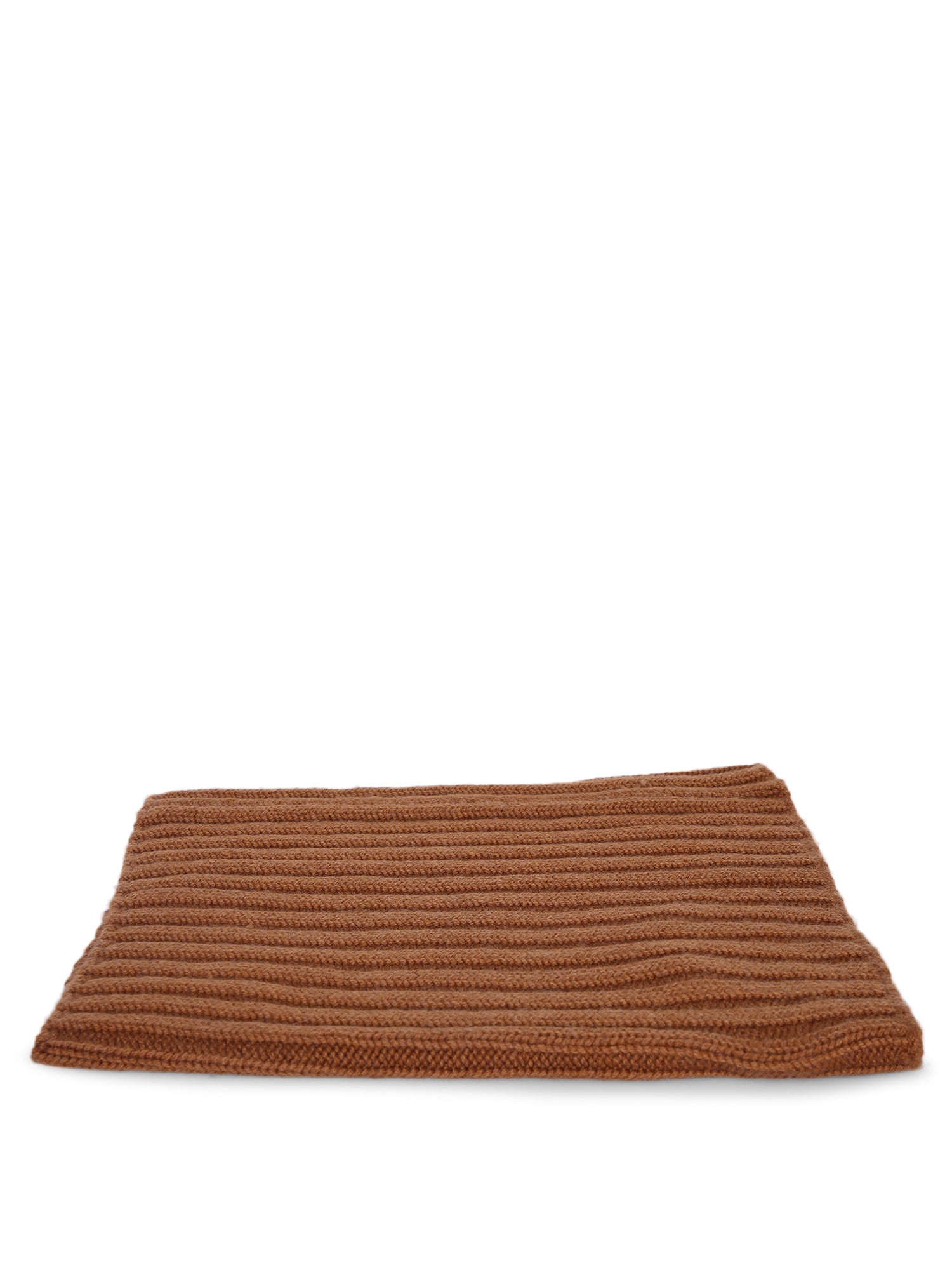 Ribbed knit scarf. Versatile design. Solid burnished brown color.