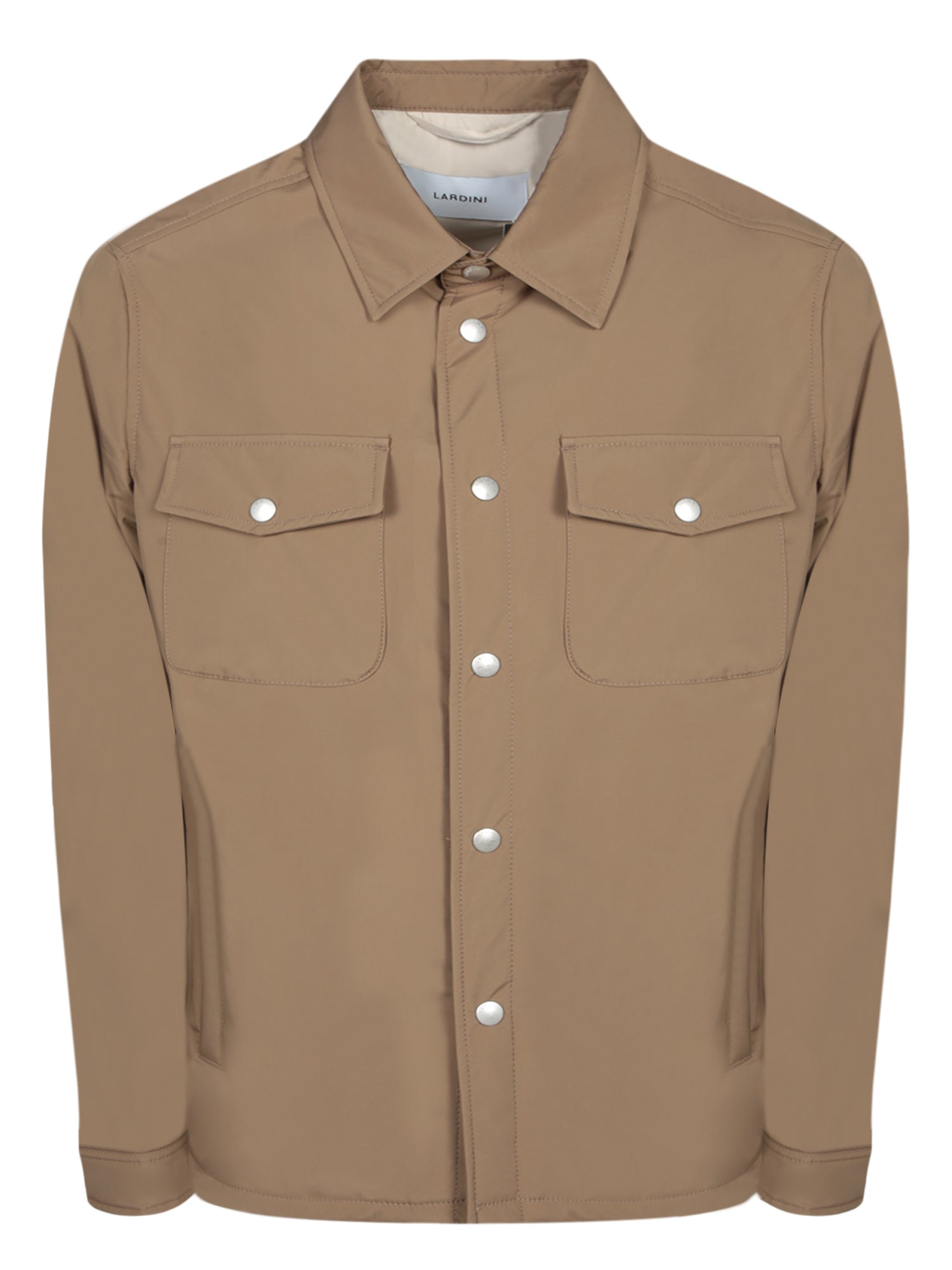Technical fabric overshirt. Burnt color. Snap button front closure. Two chest flap pockets with button.