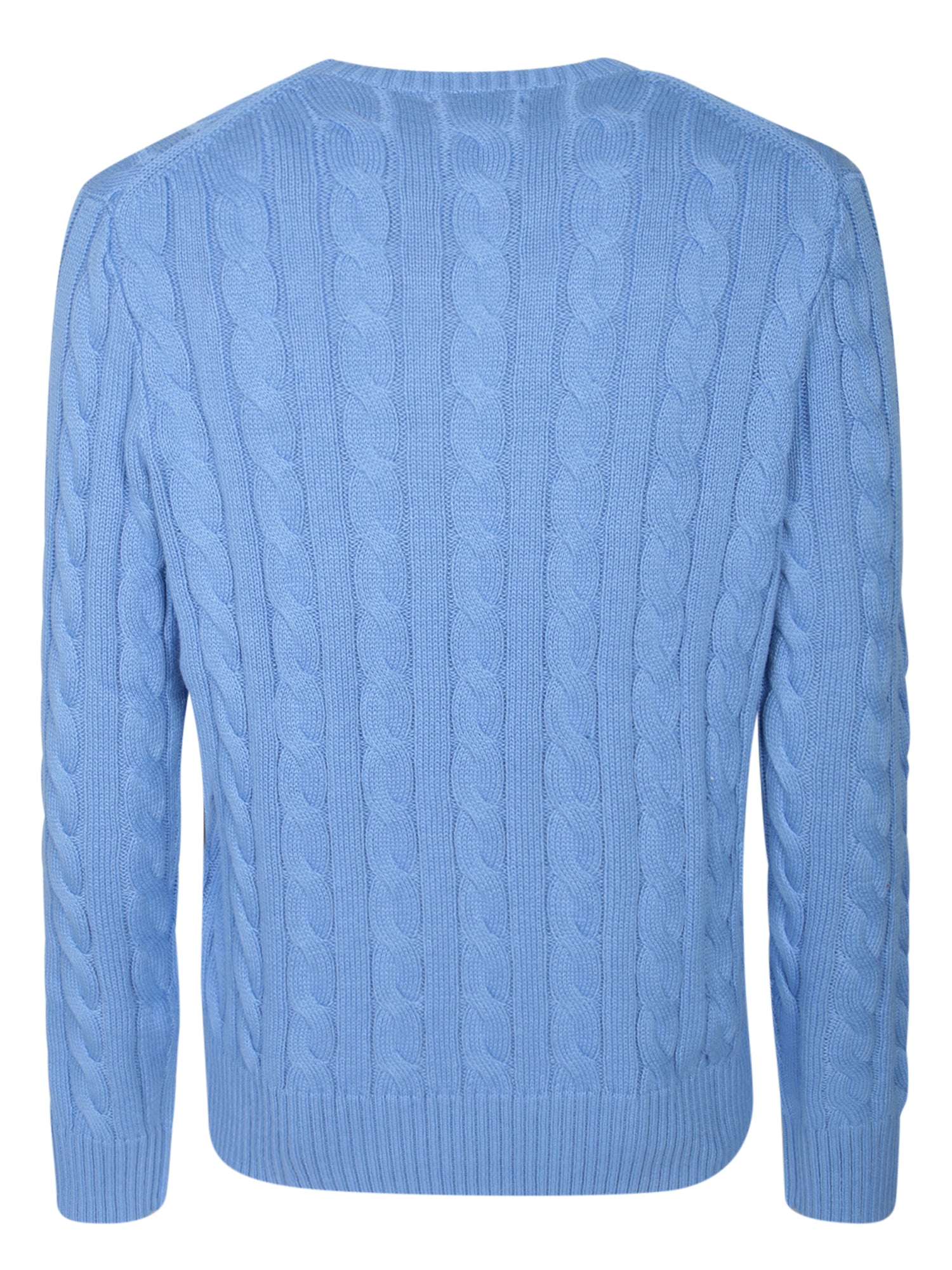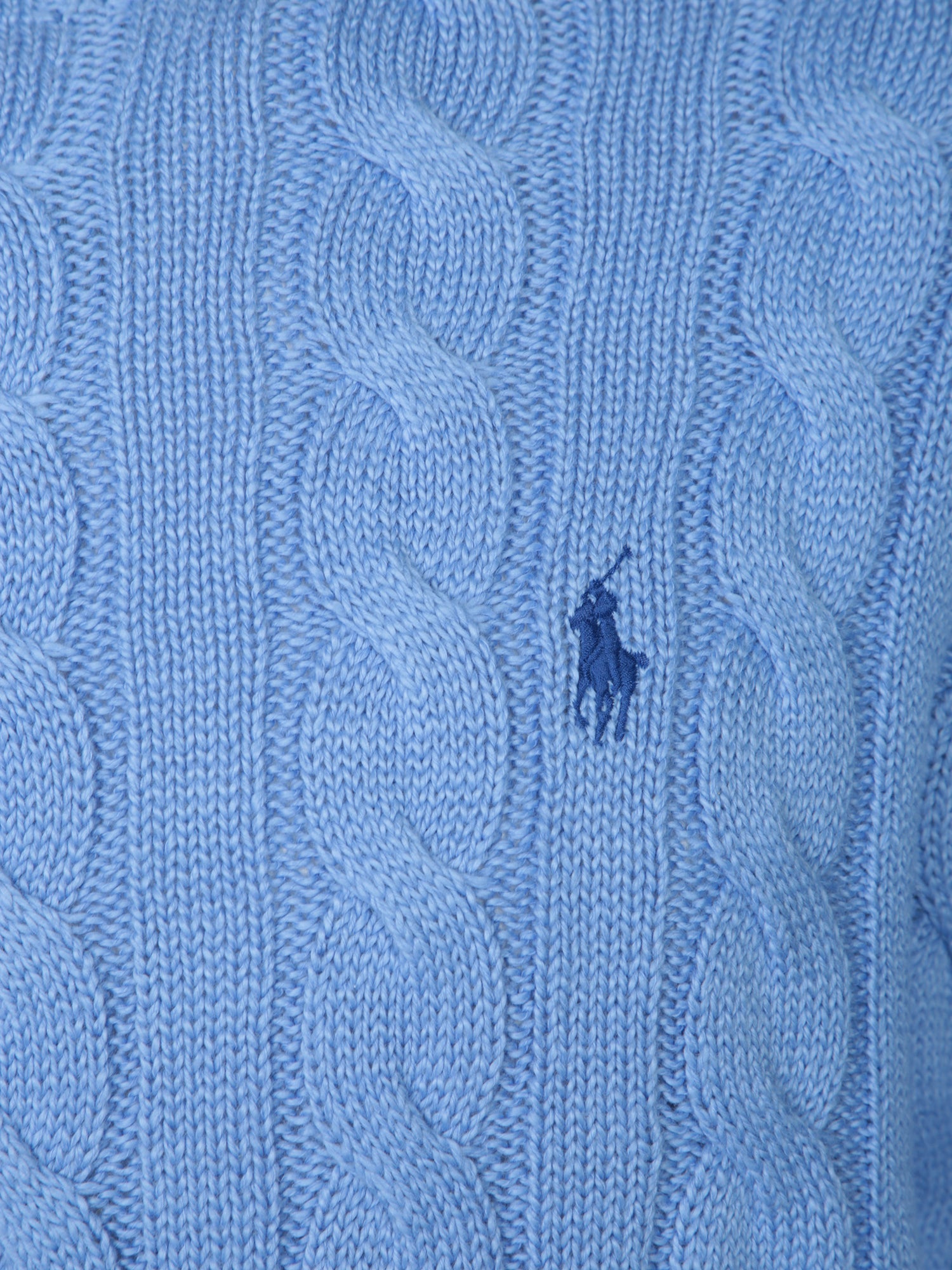 Explore timeless elegance with the Polo Ralph Lauren avio-colored sweater. This purely preppy piece features an intricate cable knit design that adds a classic dimension to your winter wardrobe.