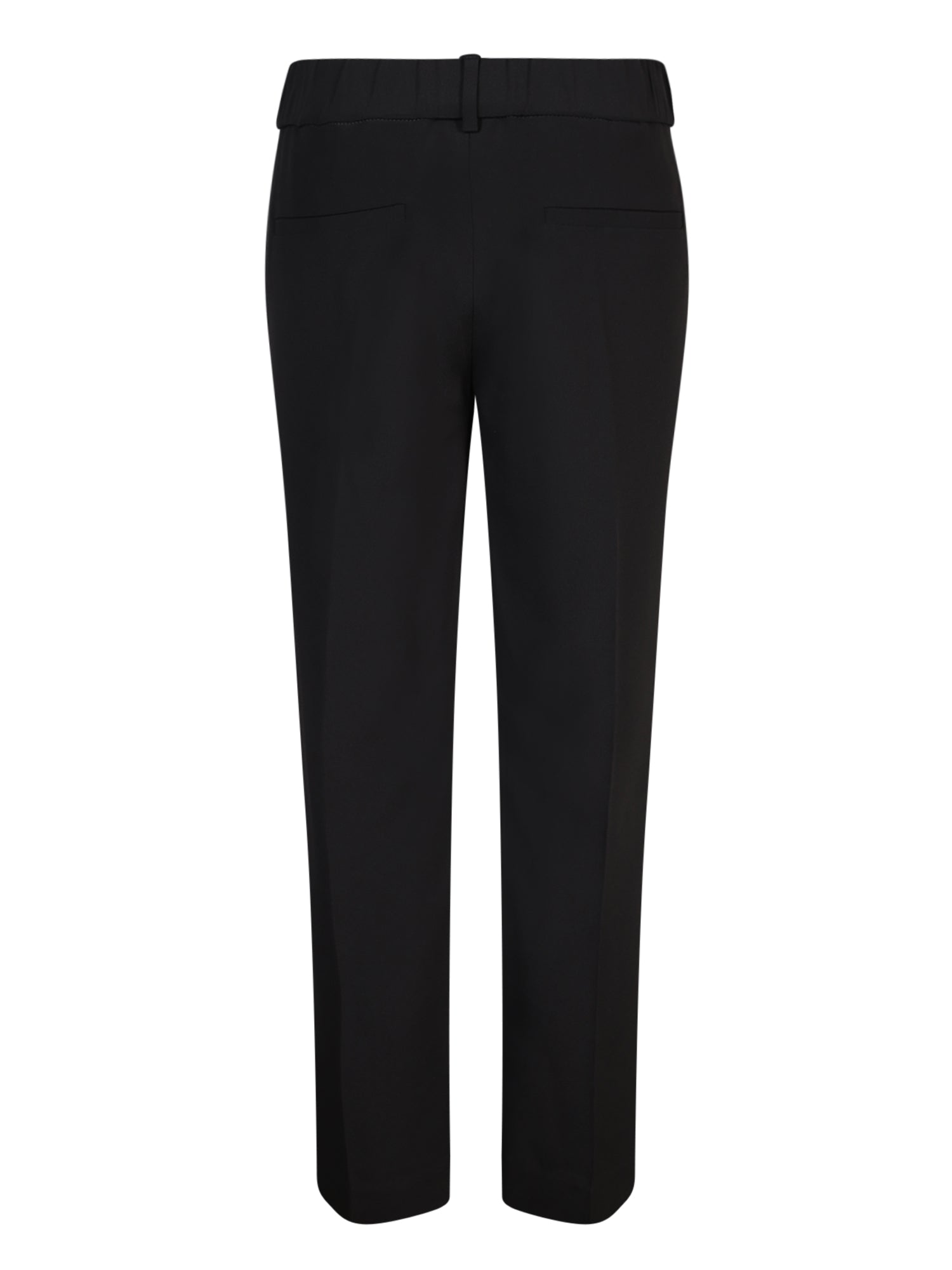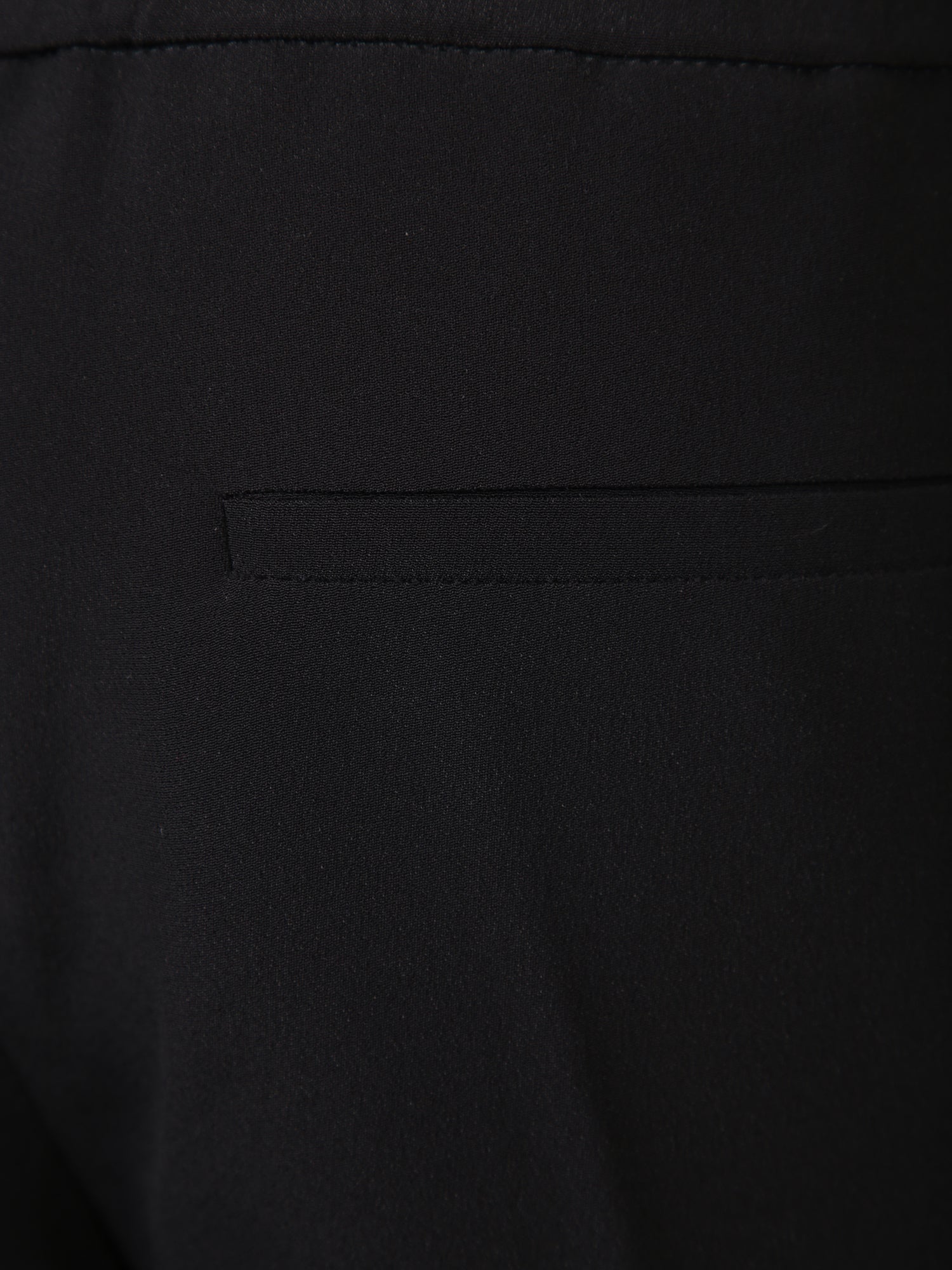 Elasticated waist. Two side welt pockets. Two rear welt pockets. Cropped. Slim cut. Color: black