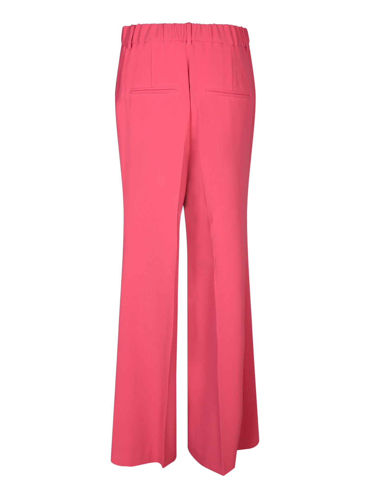 Flared cady trousers. Half-elasticated waistband. Side welt pockets.