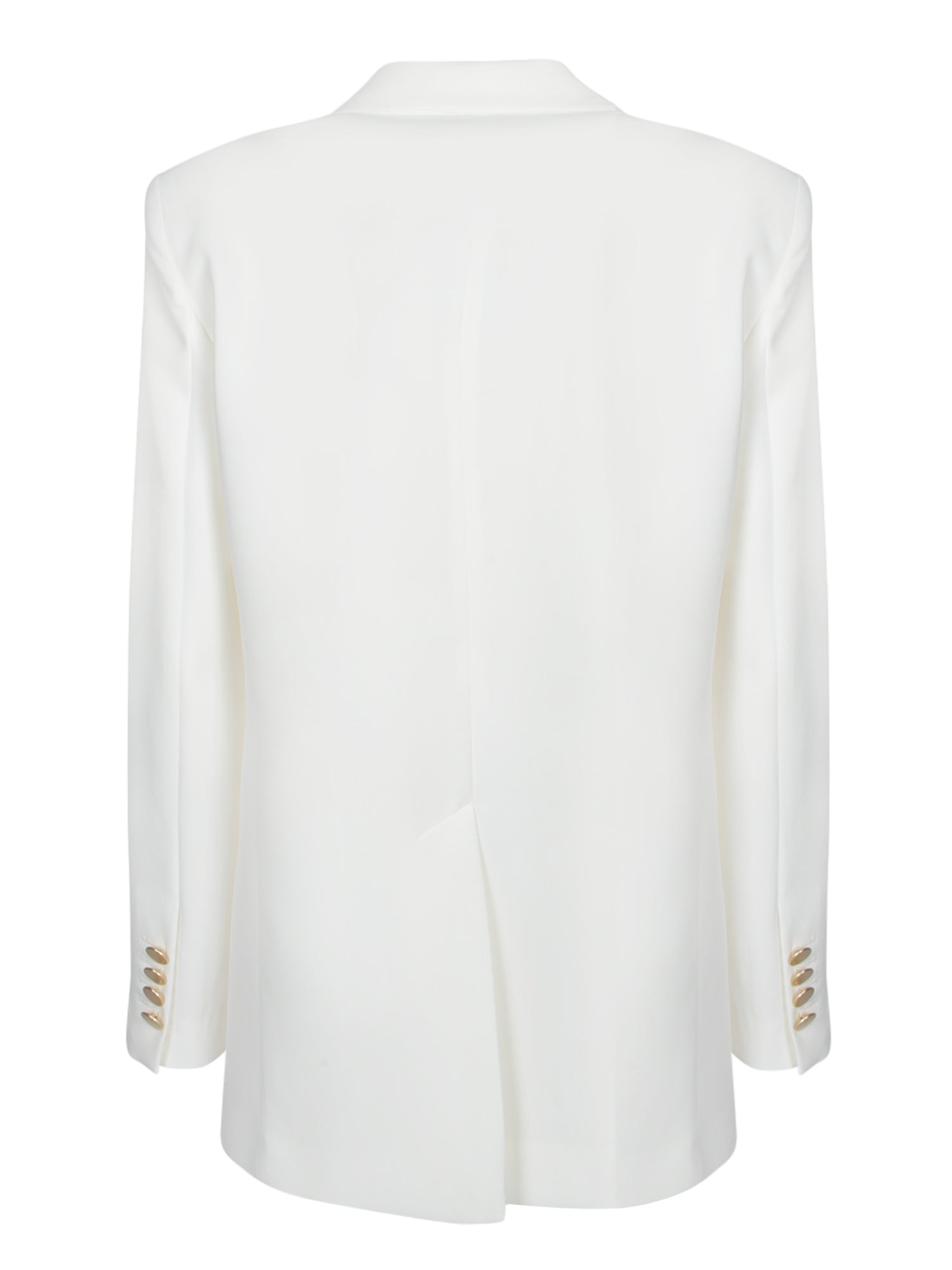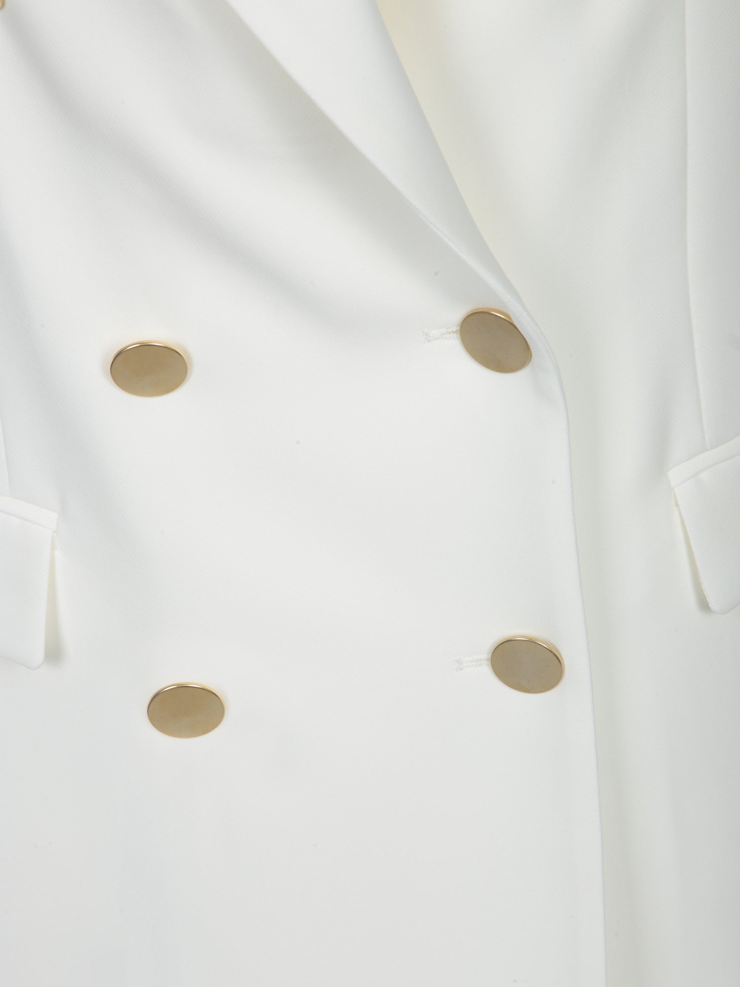 Double-breasted jacket. Silky inner lining. Flap side pockets. Long sleeves with decorative buttons.