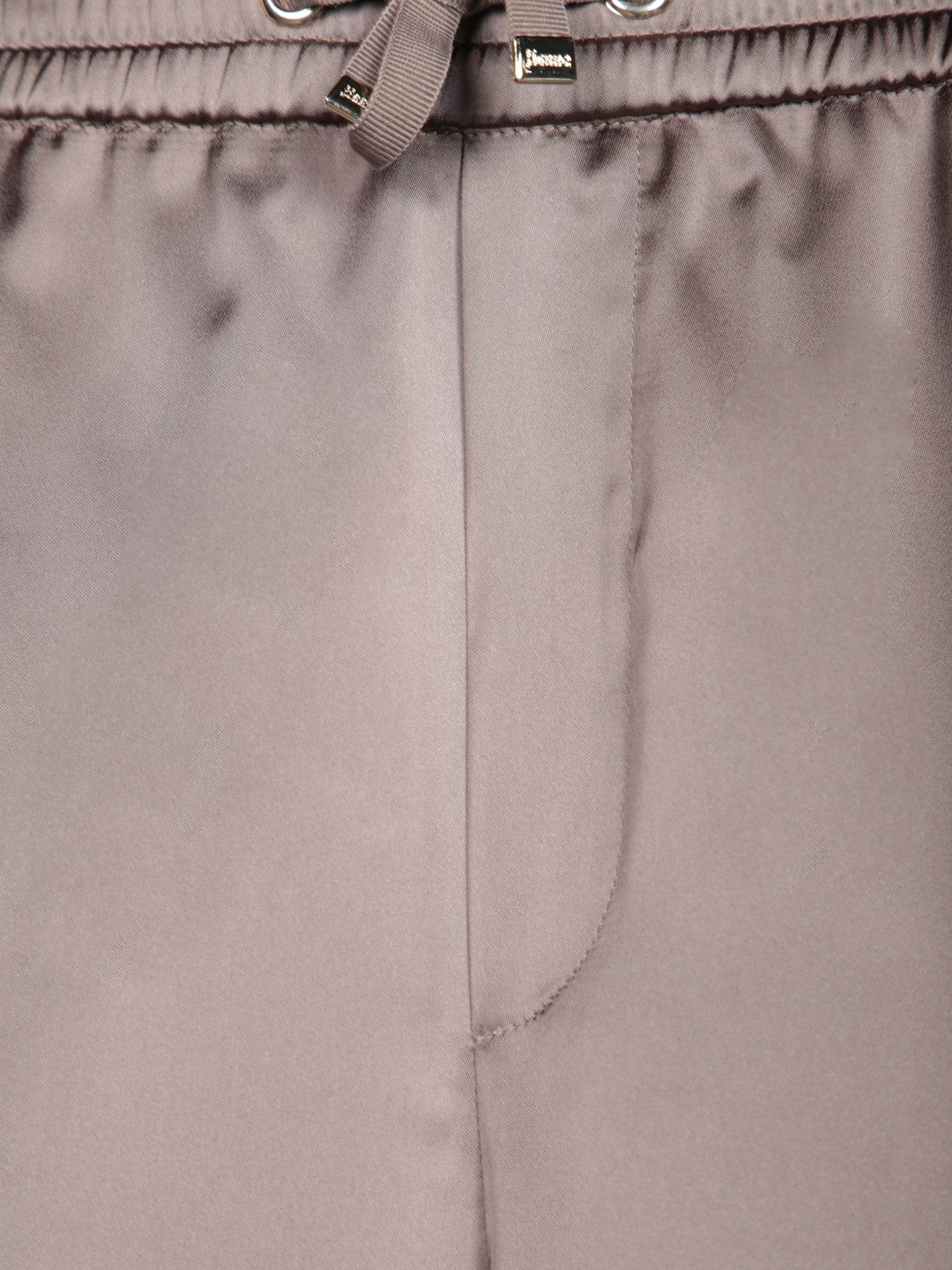 Elastic waistband with drawstring. Two front pockets. Satin fabric.