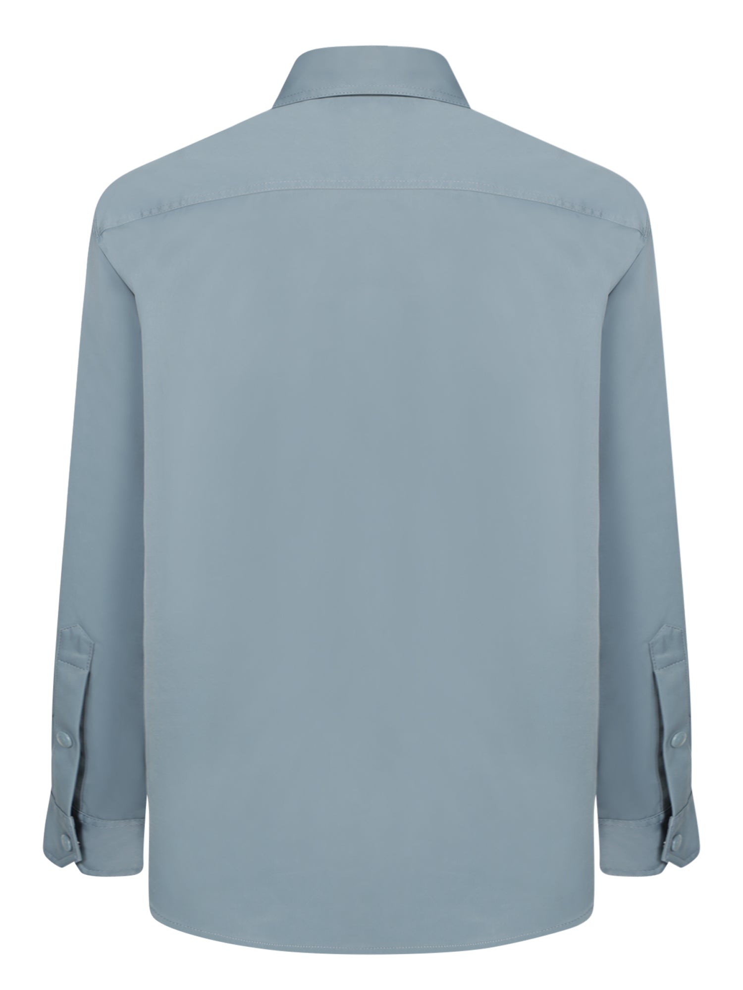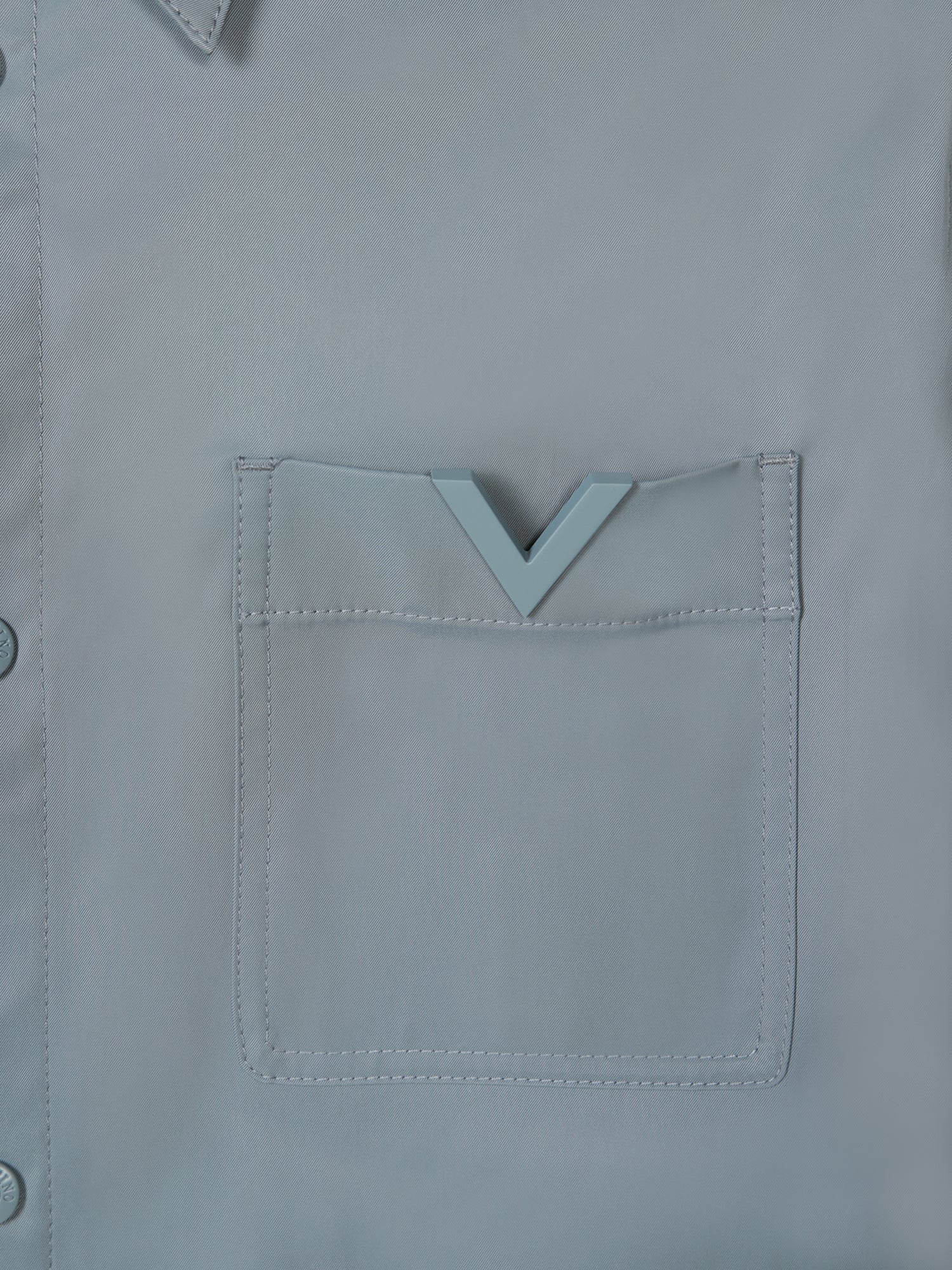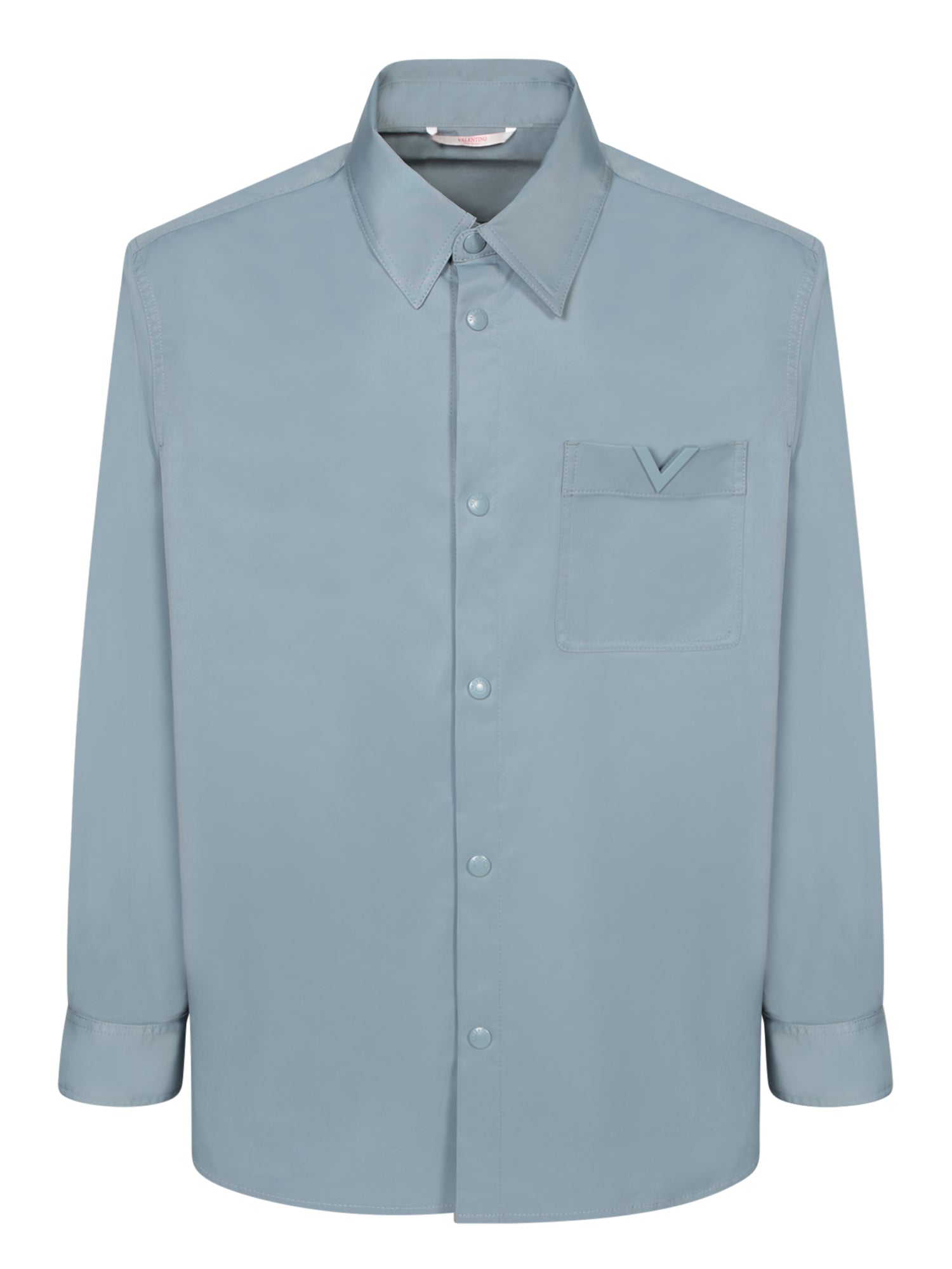 This elegant celestial blue shirt from Valentino showcases minimalist finesse, enriched with the iconic 'V' detail on the pocket, ideal for a sophisticated office look or semi-formal occasions.