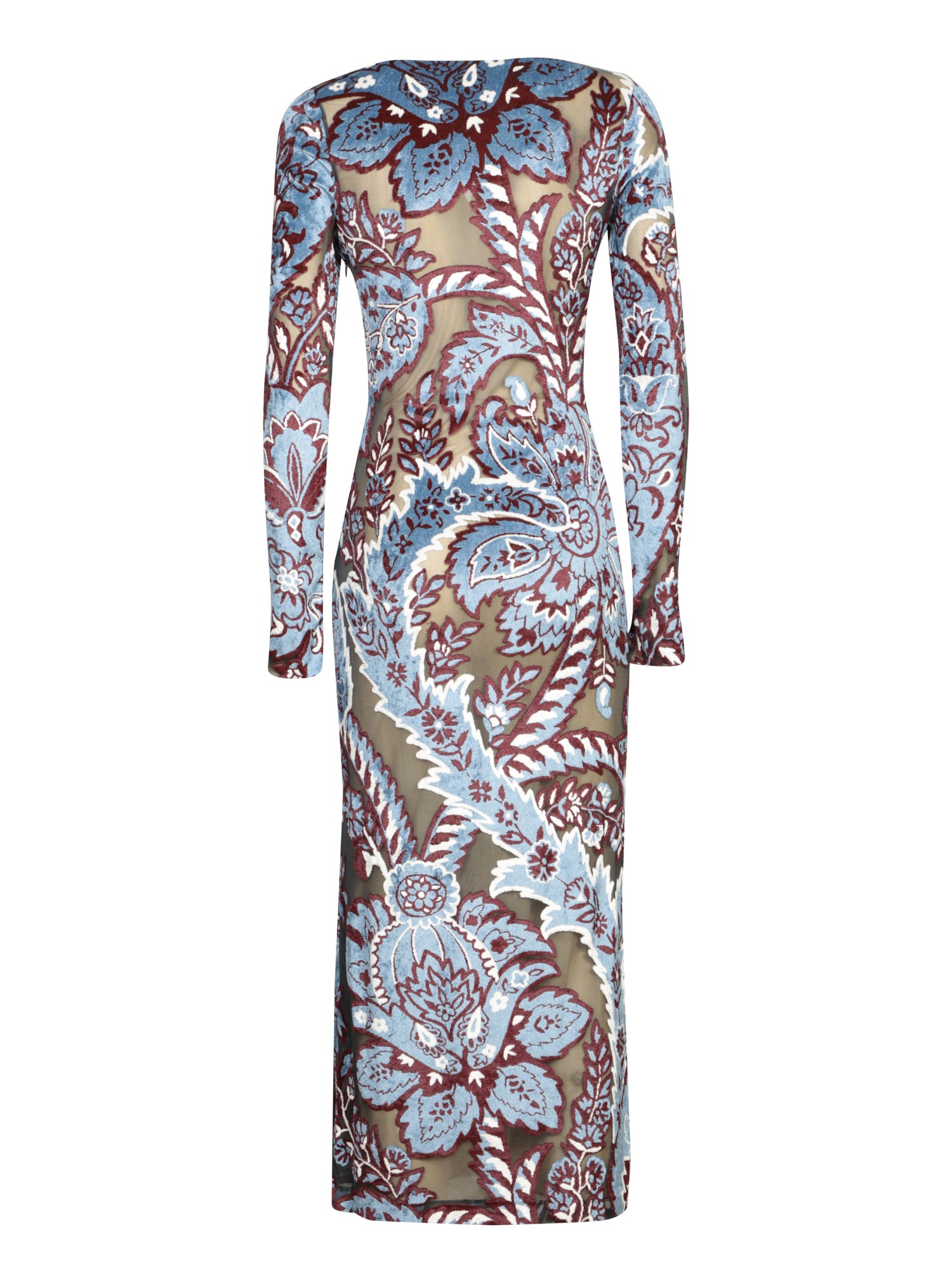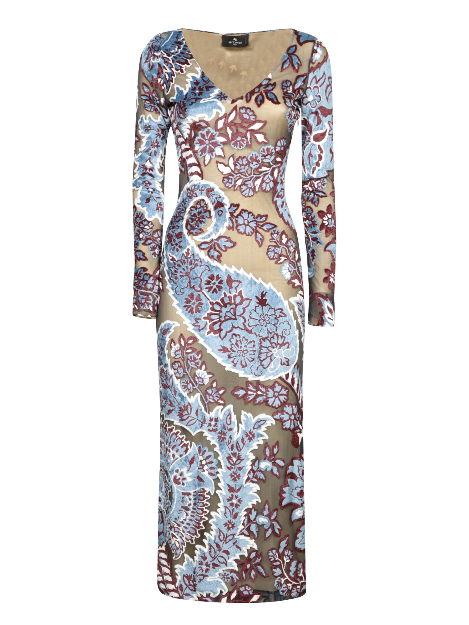 This Etro dress blends a sleek silhouette with vibrant detailing for a stand-out look. Featuring an intricate tattoo print on soft fabric, it's perfect for special occasions.