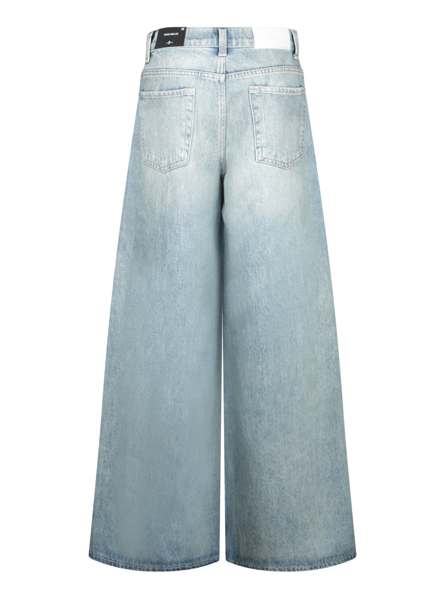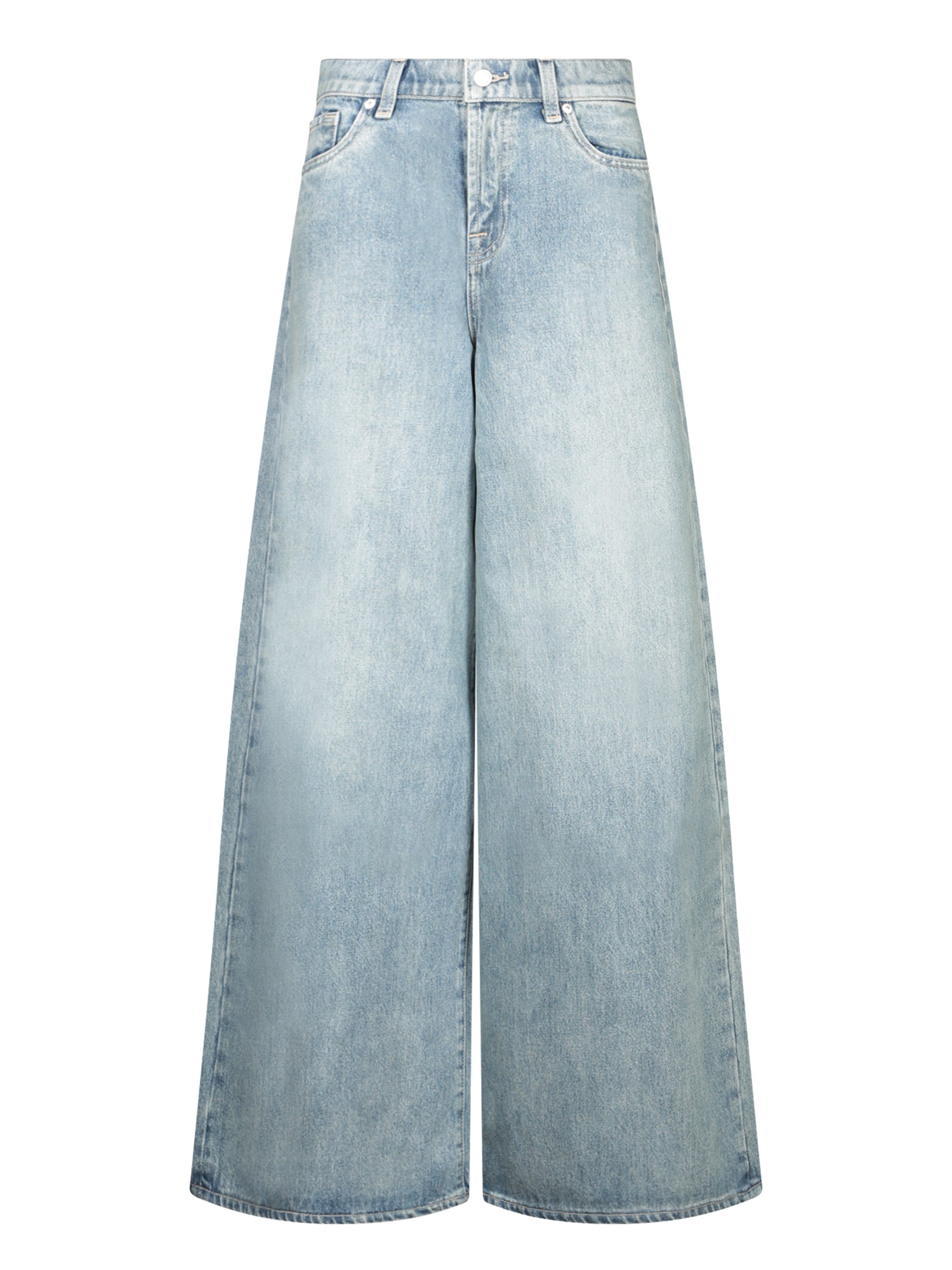 High waist with button and zip closure. Bow and crystals detail on the sides. Wide-leg cut.
