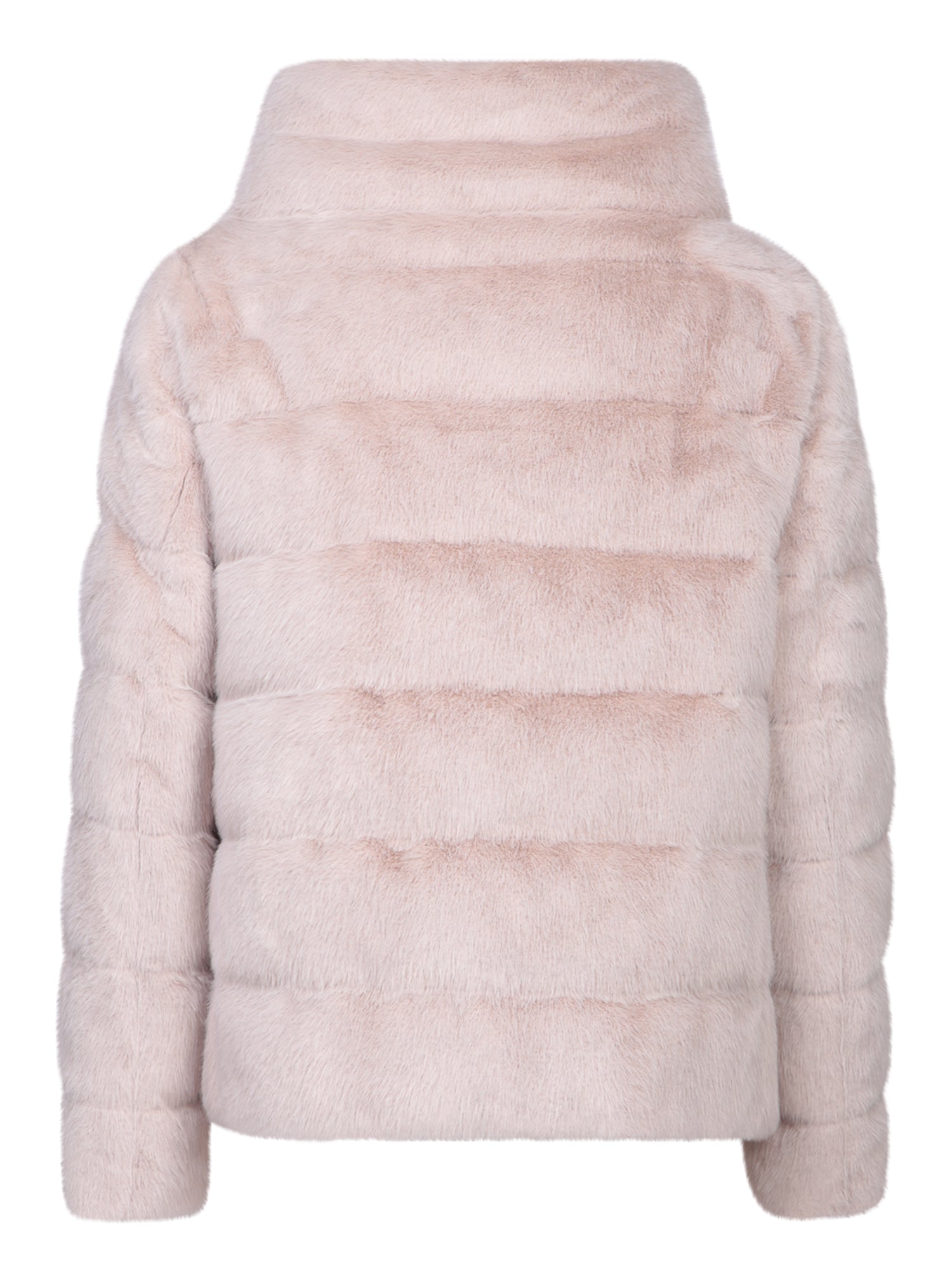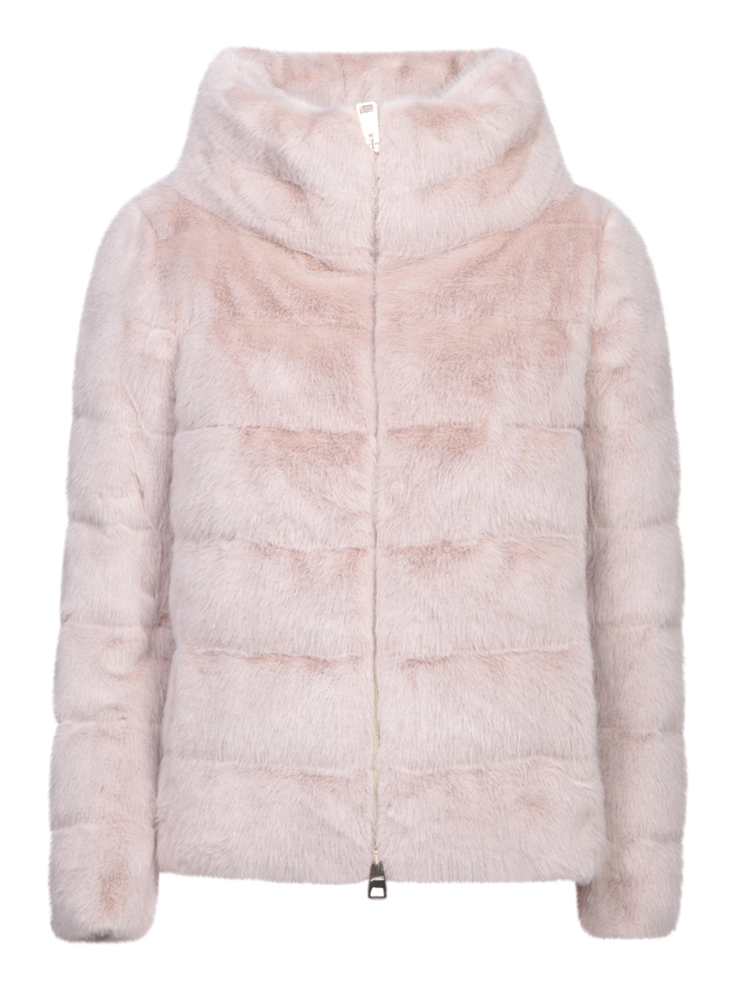 A masterpiece of winter elegance, this HERNO puffer jacket is enhanced with an exclusive pink faux fur. The horizontal quilted design provides optimal insulation, while the high collar shields against the cold with distinct style.