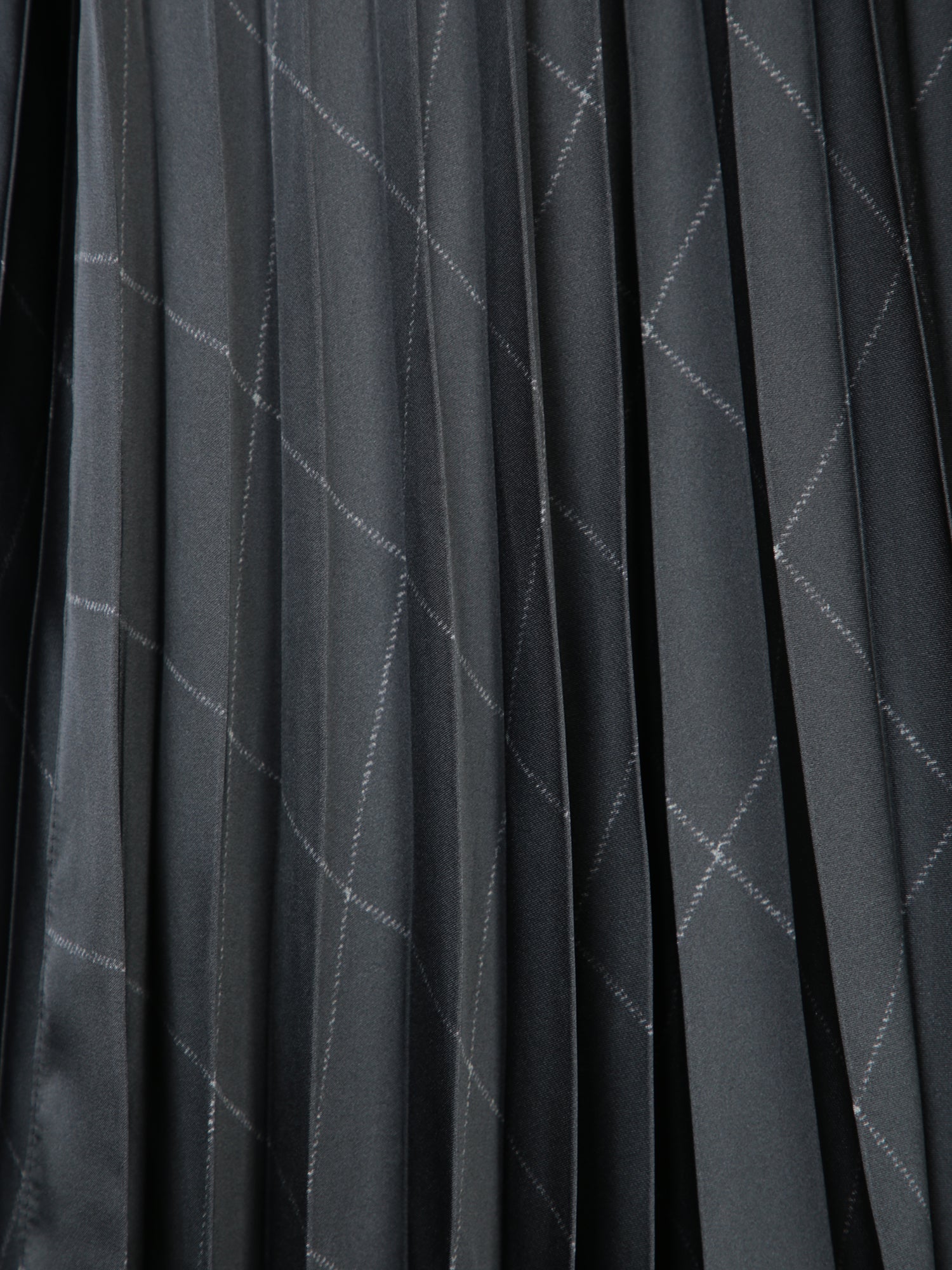 Long pleated skirt in lightweight fabric with checkered pattern. Features adjustable belt and side pocket.