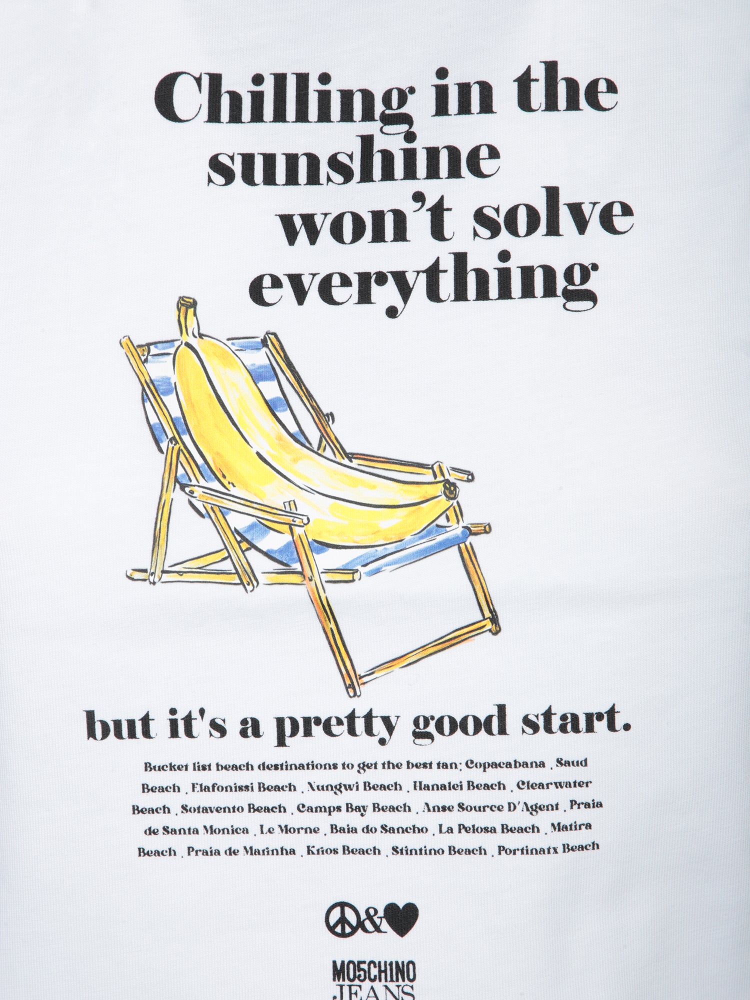 This Moschino Jeans tank top features a vibrant print that captures the essence of summer with its playful design and motivational message. Perfect for casual pairings, it offers both comfort and style.