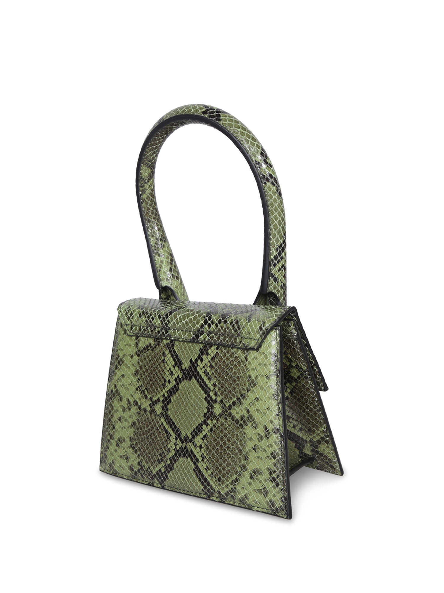 Jacquemus' Green Python Chiquito Moyen Bag is an icon of style and functionality. Crafted from fine python-effect leather, the bag features a distinctive silhouette and an elegant gold-tone closure.