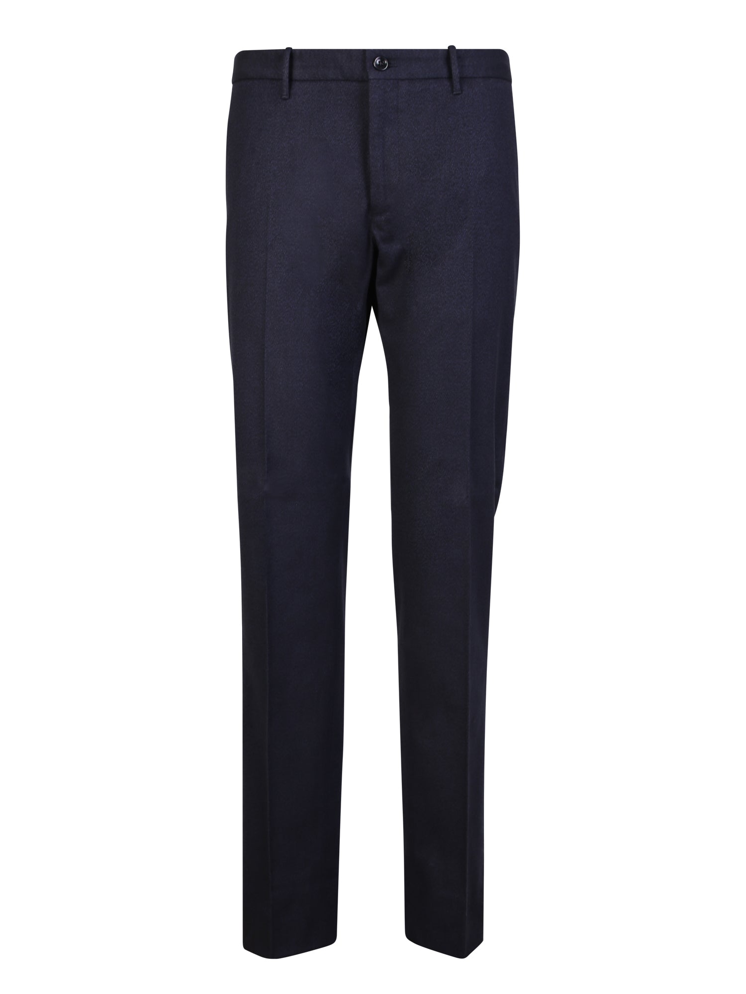 Mid rise. Elasticated drawstring waistband. Belt loops. Front button and zip fastening. Two side pockets. Two rear welt pockets. Straight leg. Color: mélange blue