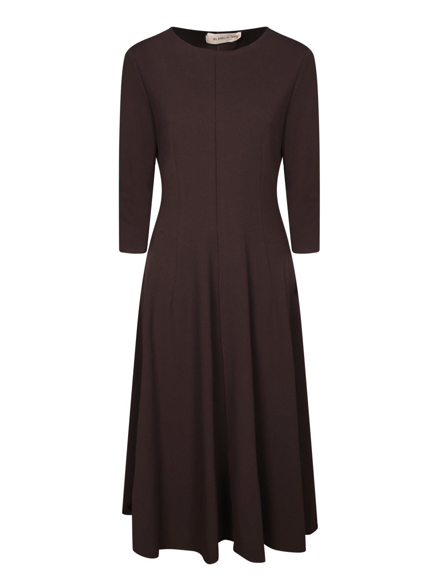 Three-quarter sleeves, scuba crepe fabric, no-closure design.