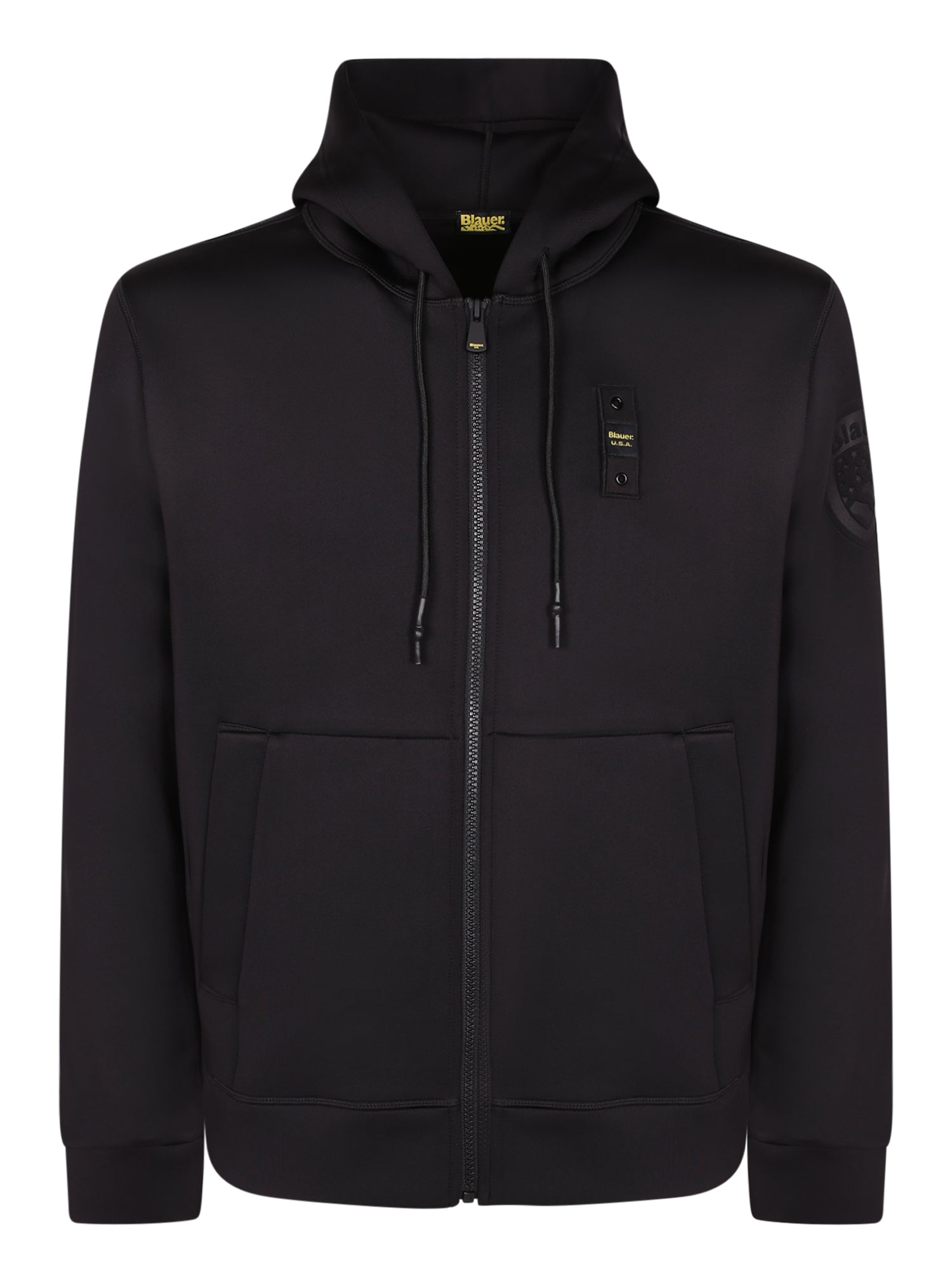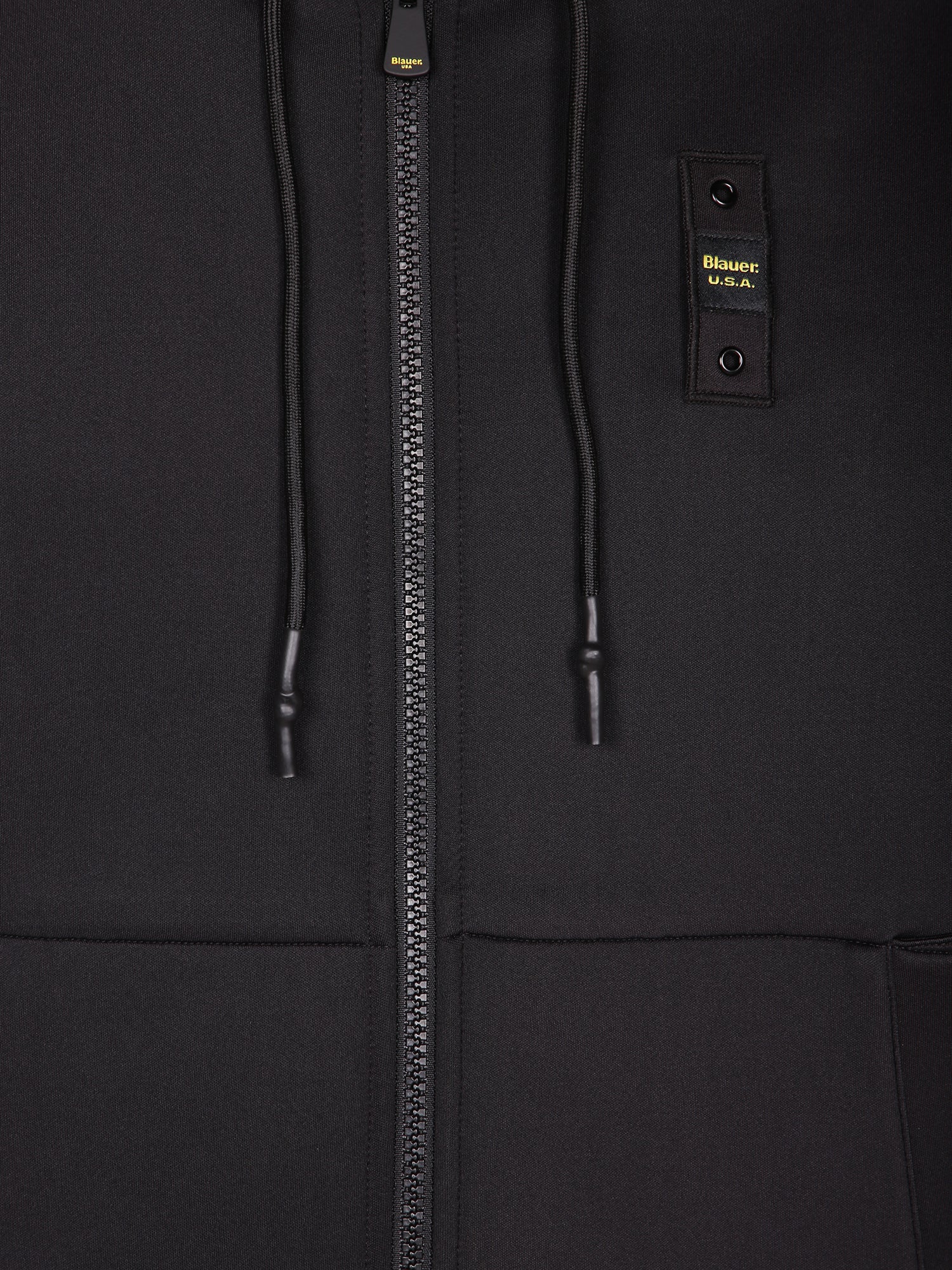 Integrated hood. Front zip closure. Kangaroo pockets.