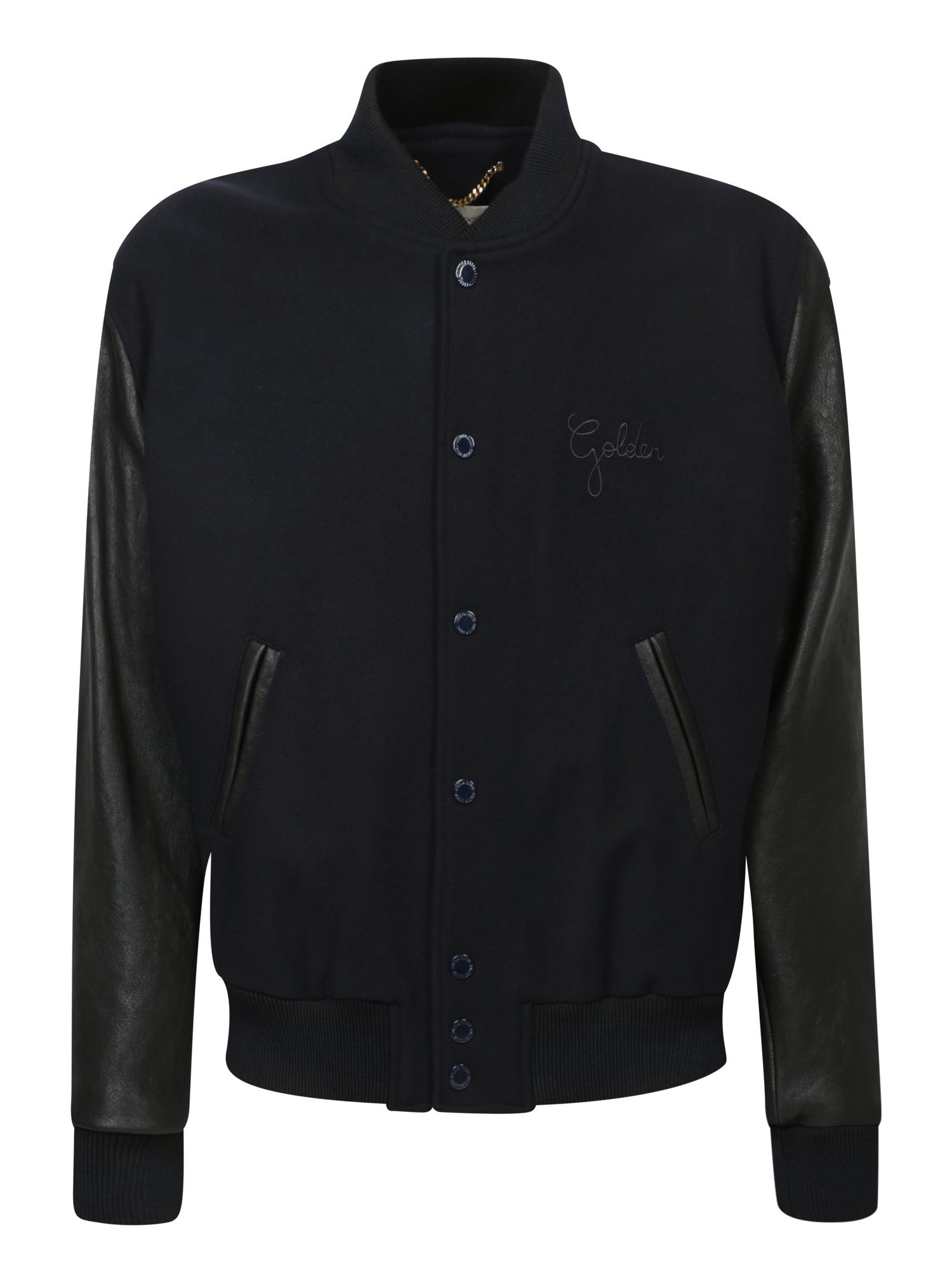 Explore urban style with the Golden Goose compact wool jacket, enhanced with elegant leather details and a versatile button closure.