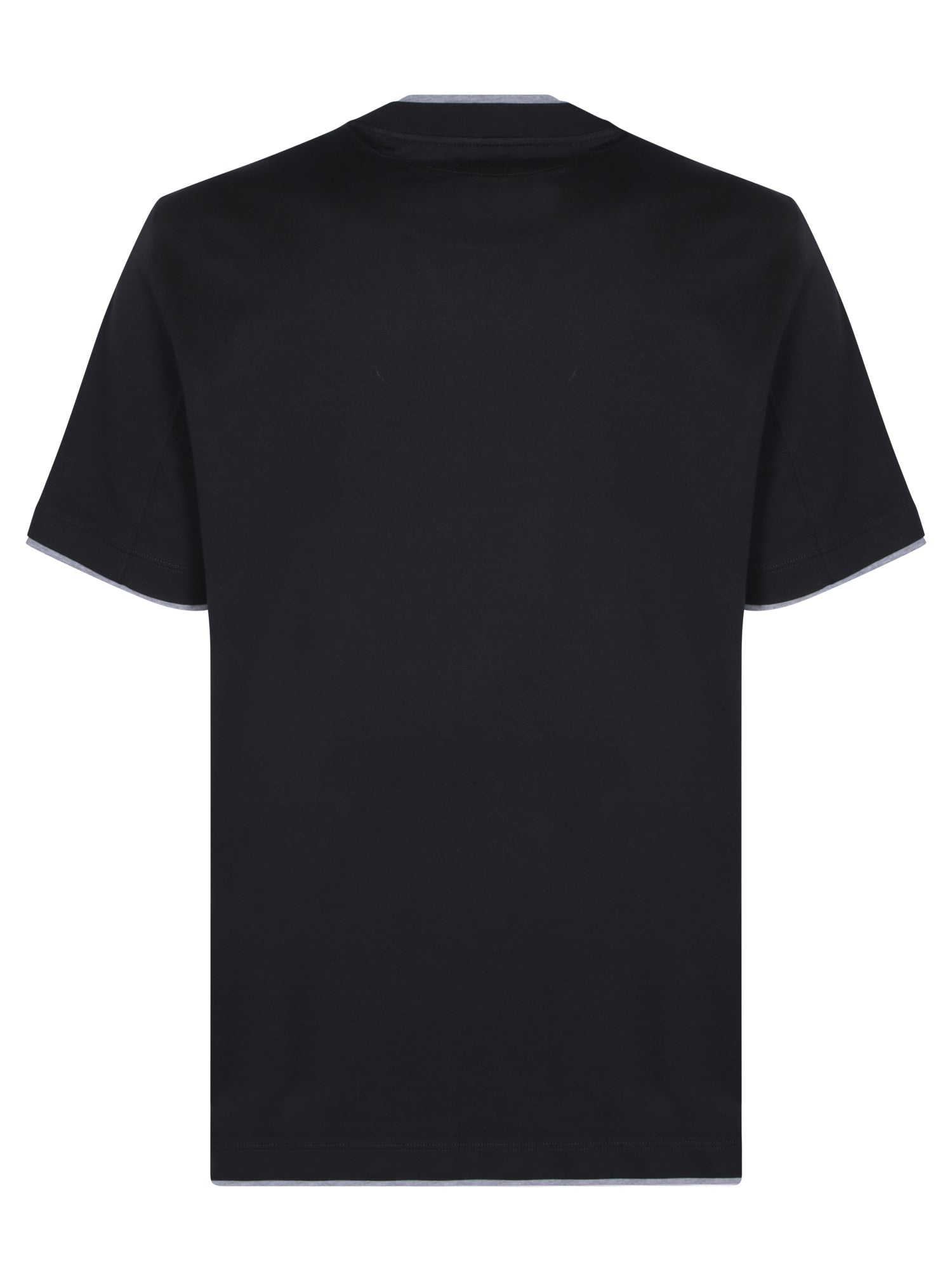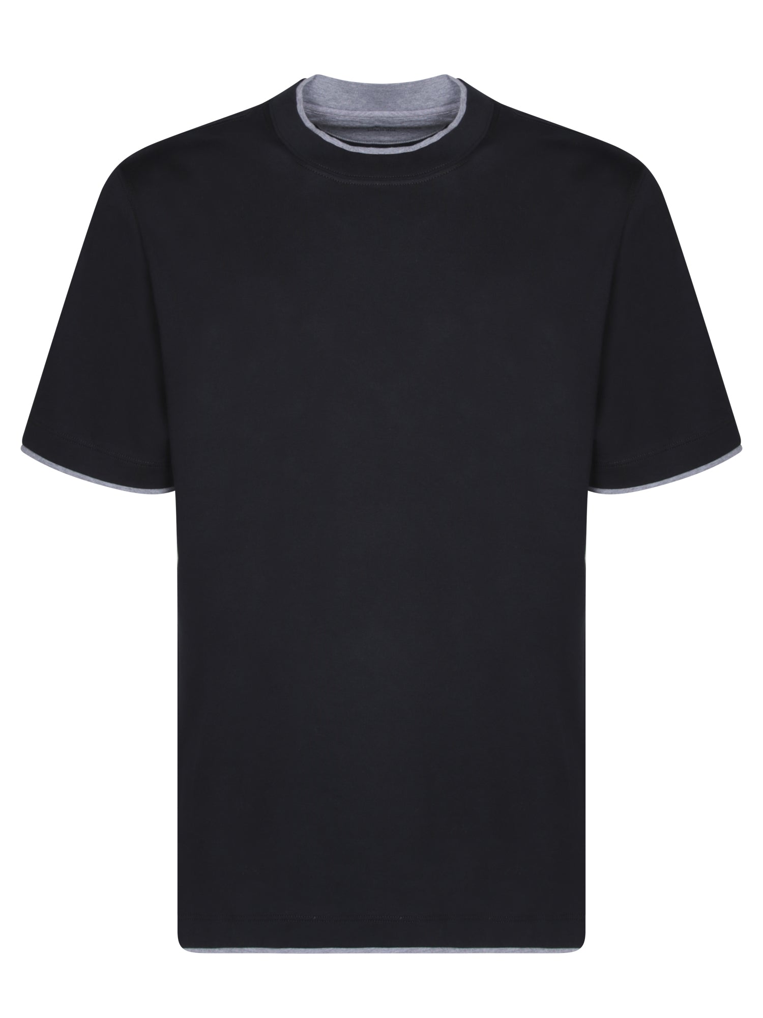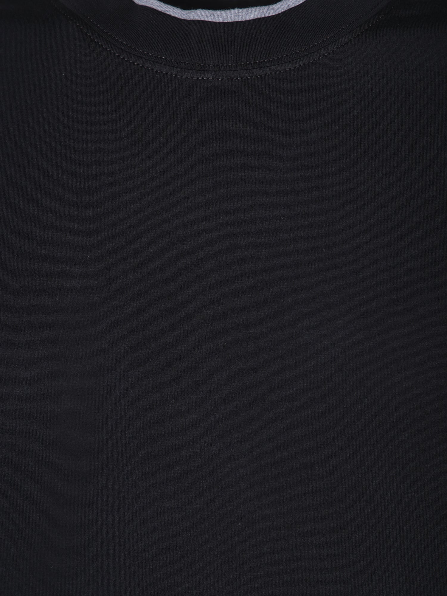 Roundneck. Contrasting edges on the neck. Short sleeves.