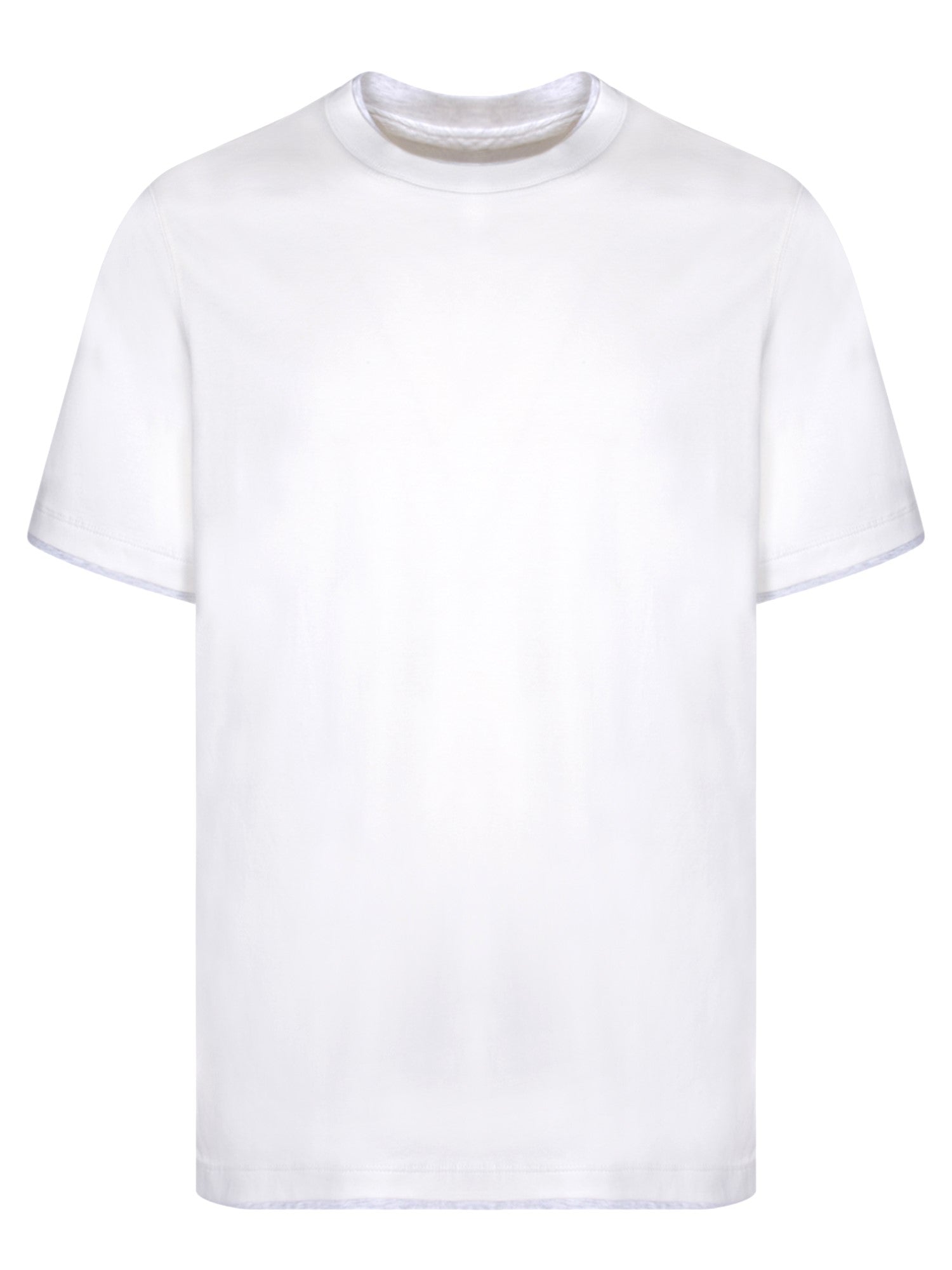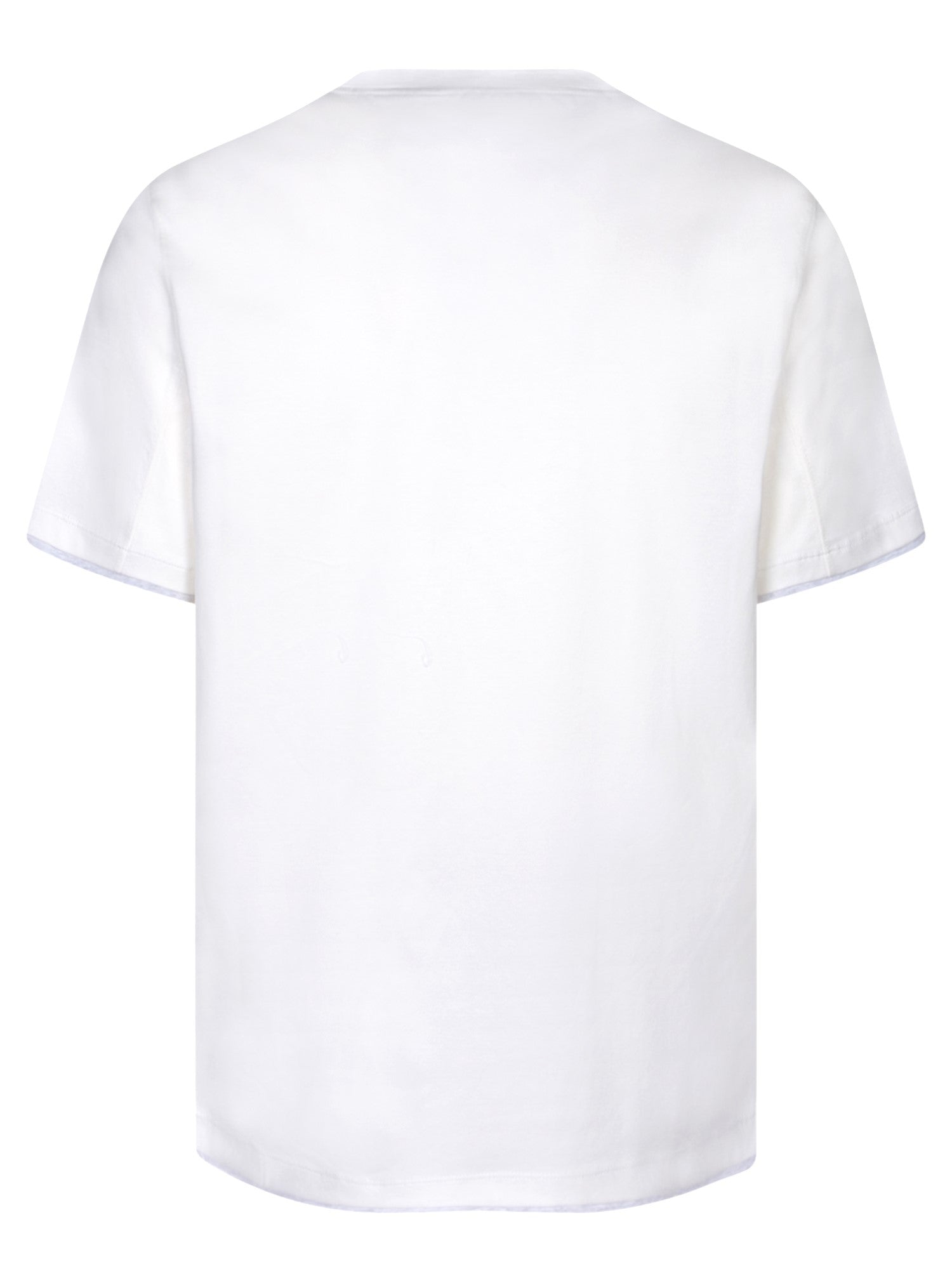 Roundneck. Contrasting edges on the neck. Short sleeves.