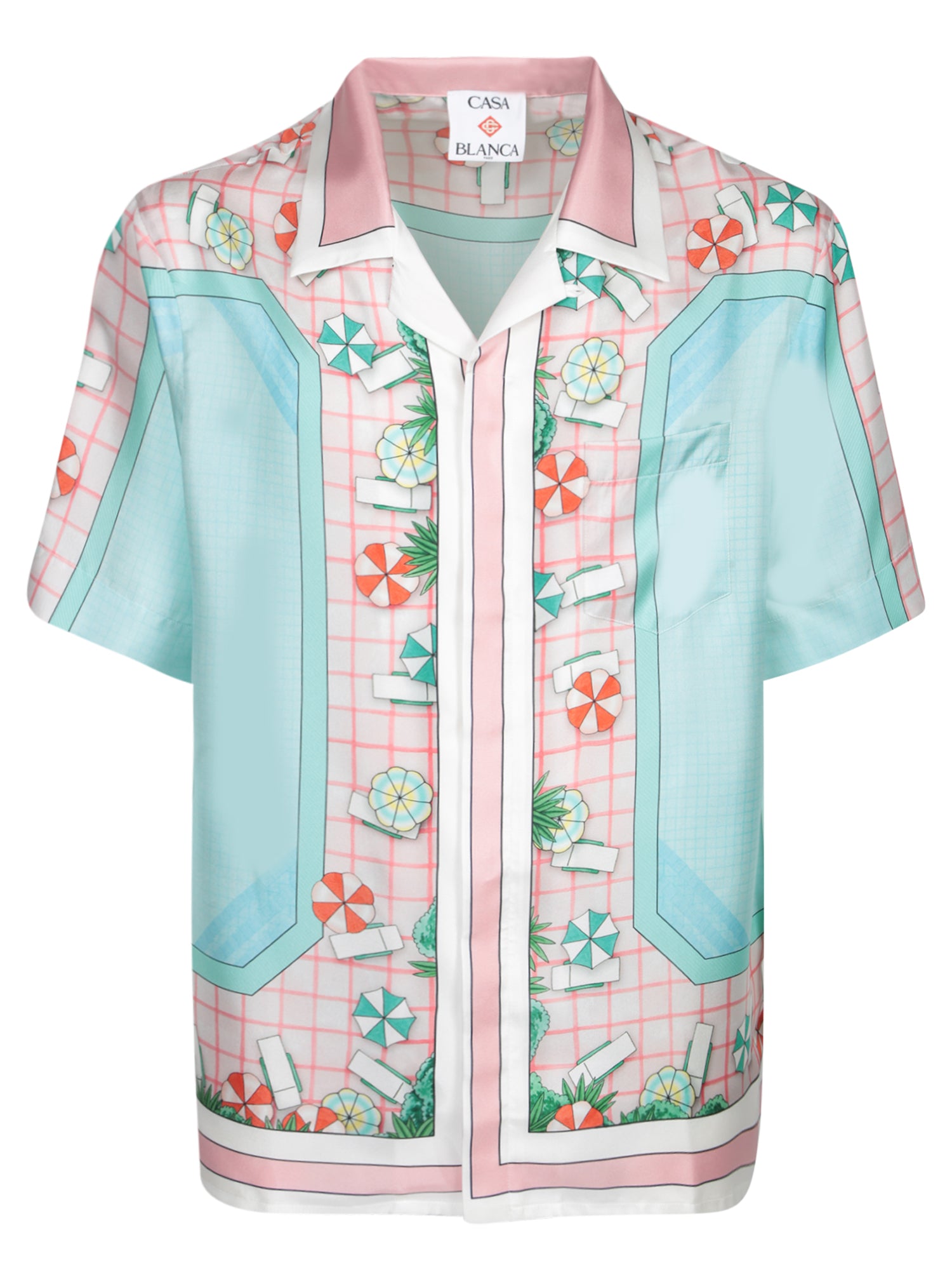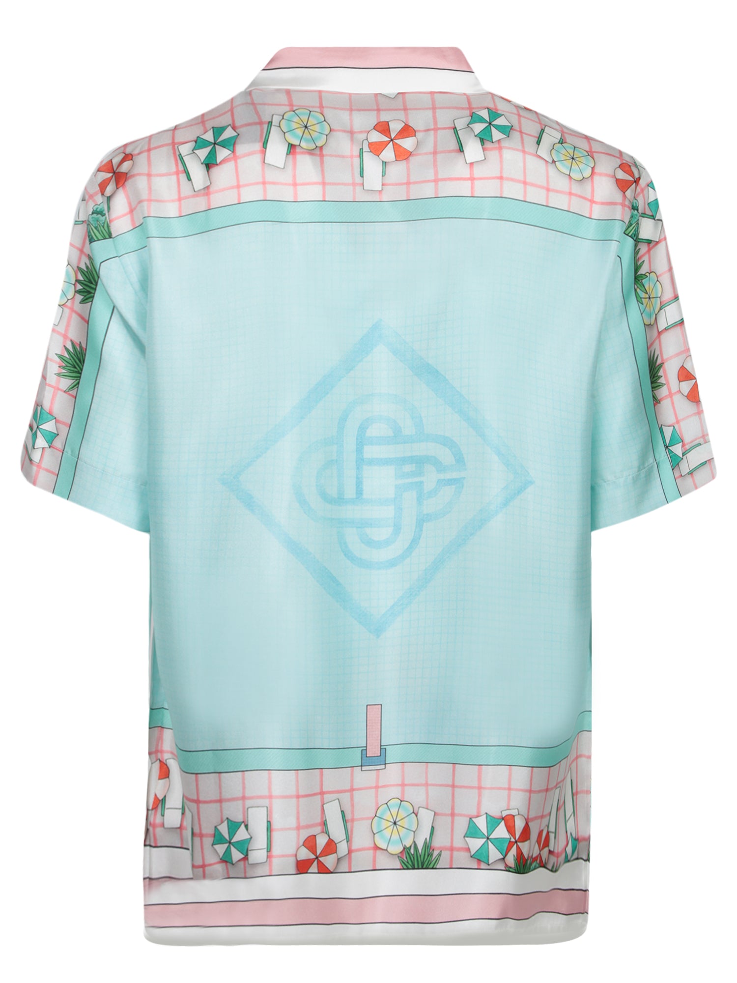The Casablanca Copacabana Shirt enhances summer styling with its vibrant tropical design on a pink base and blue detailing. Perfect for casual occasions or as a standout piece for more formal events.