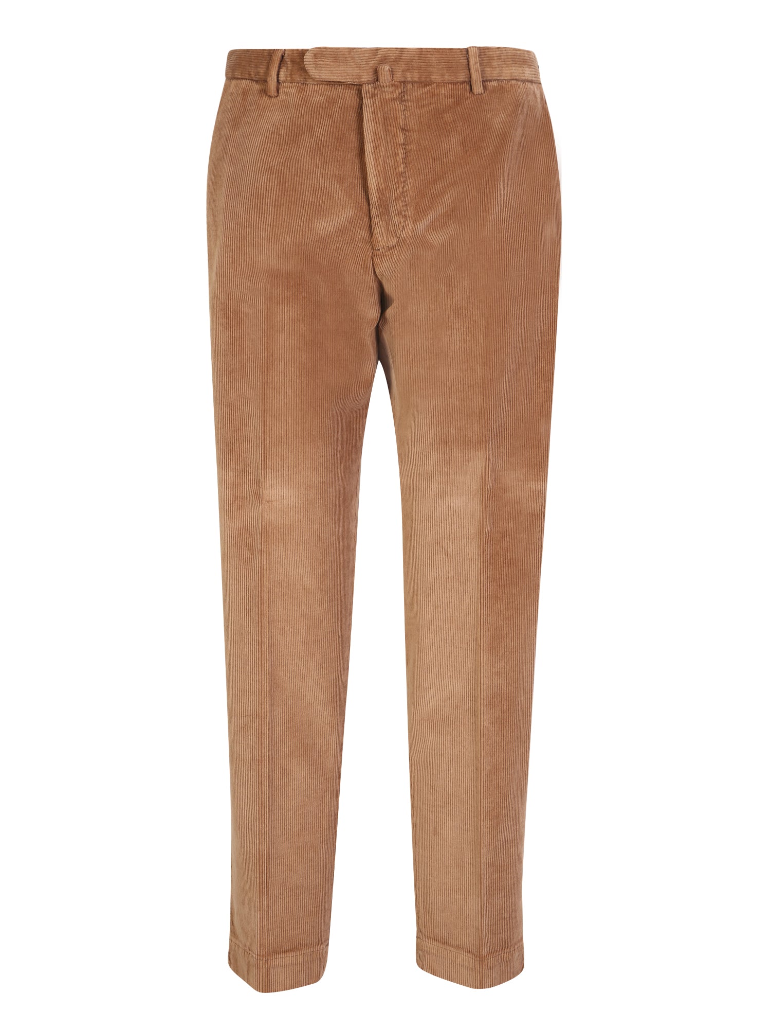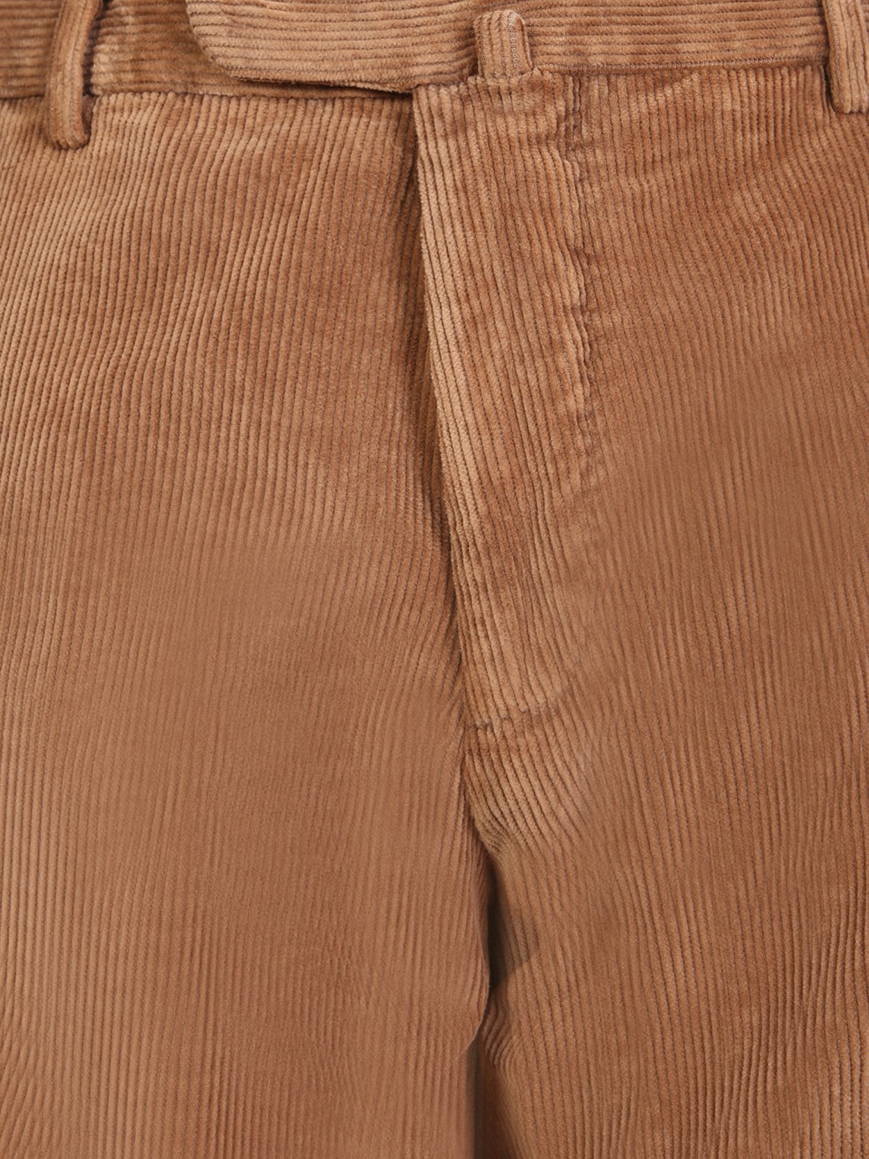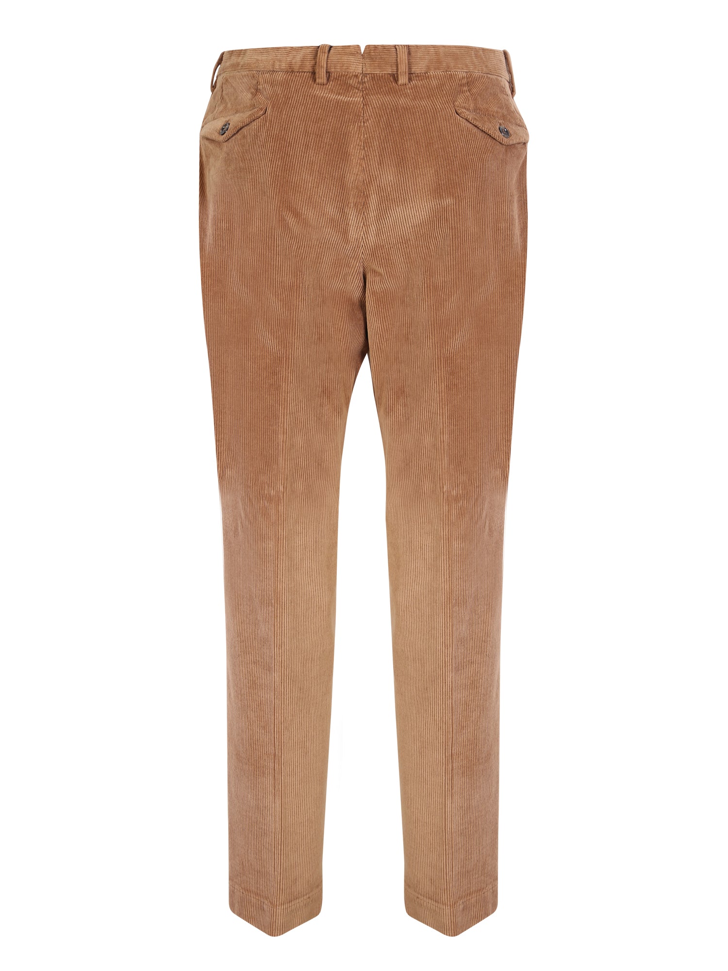 Mid rise. Belt loops. Concealed front fastening. Two rear button fastening pockets. Straight leg. Stretch cotton. Velvet. Ribbed trim. Color: light brown