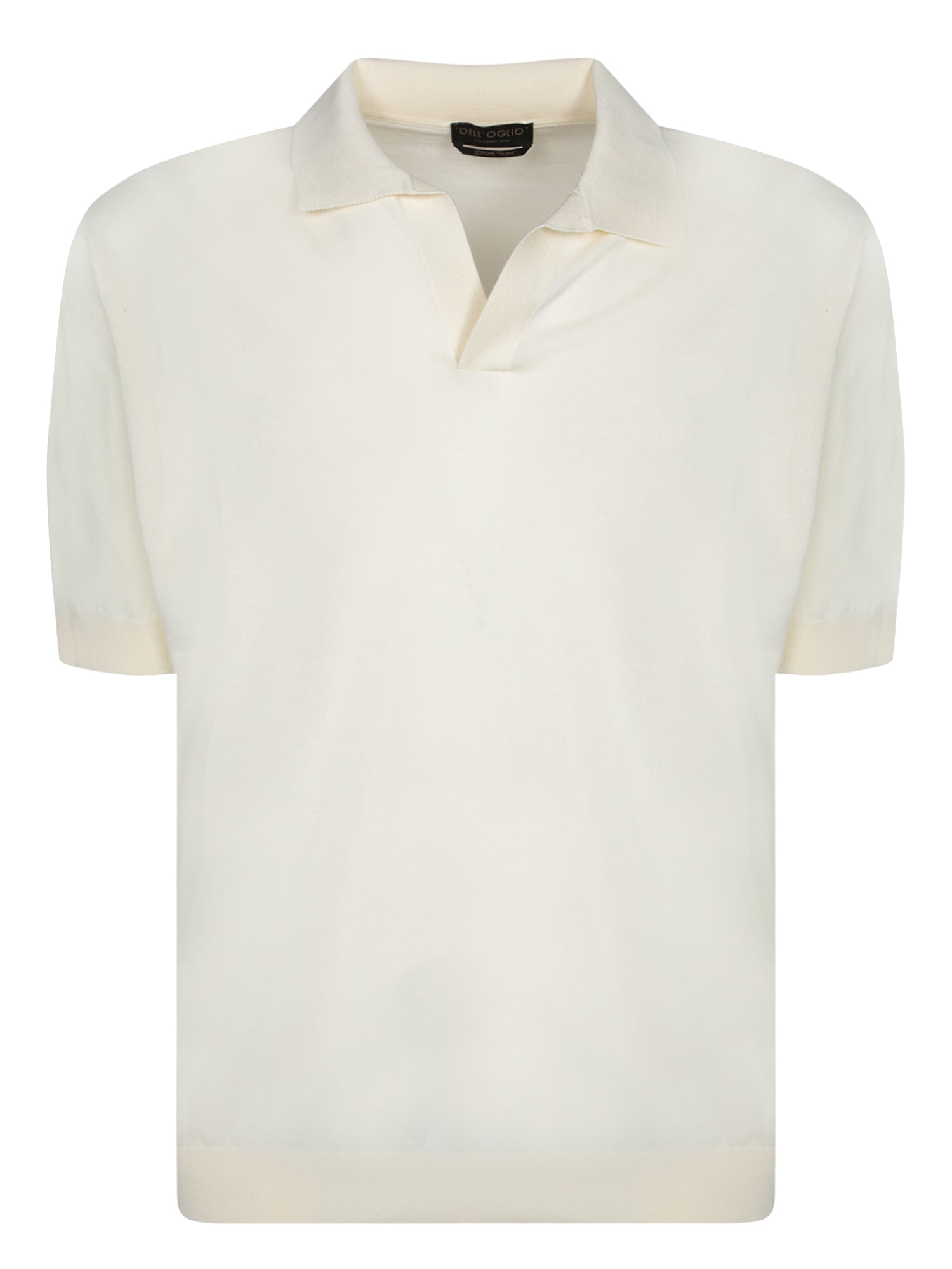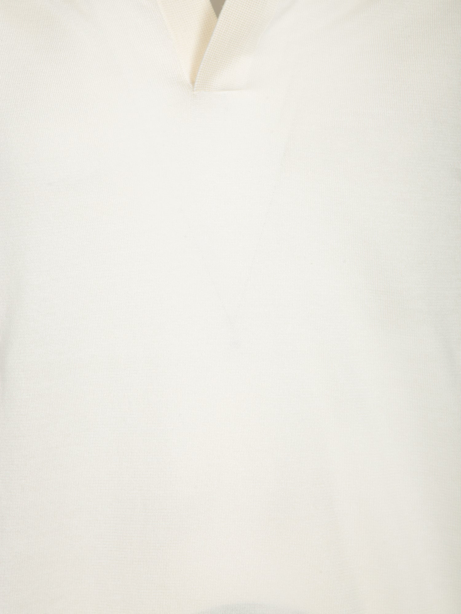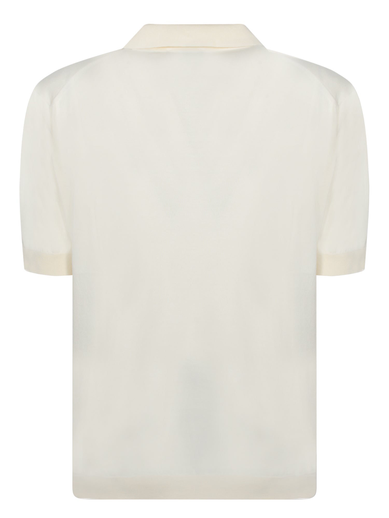 Short sleeve polo in pure cotton. Cream color. Classic contrasting collar with three-button placket.
