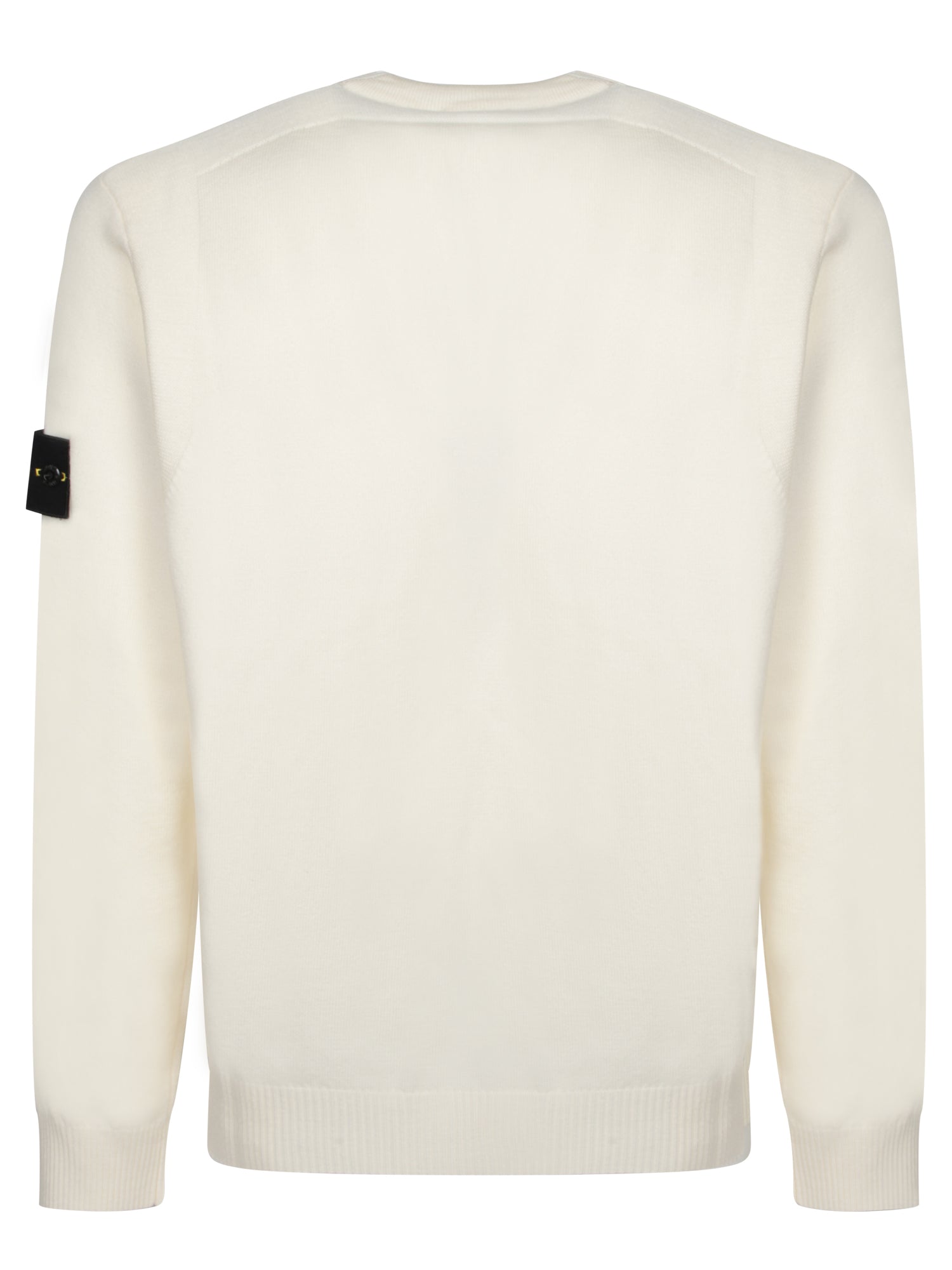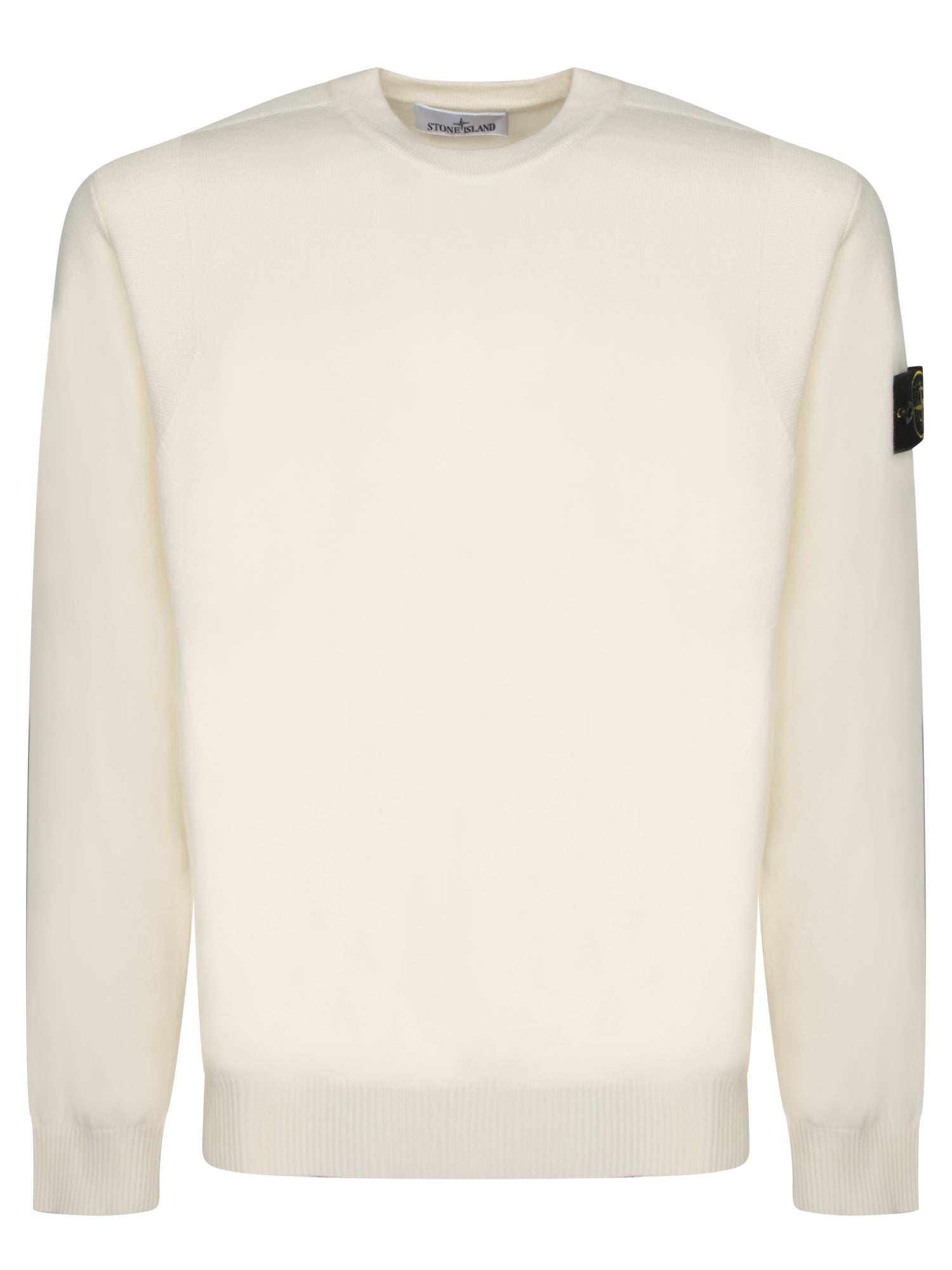 This cream wool sweater from Stone Island merges comfort with minimalist style. Featuring a soft texture and a distinctive logo patch pocket on the sleeve, it's perfect for a refined casual look.