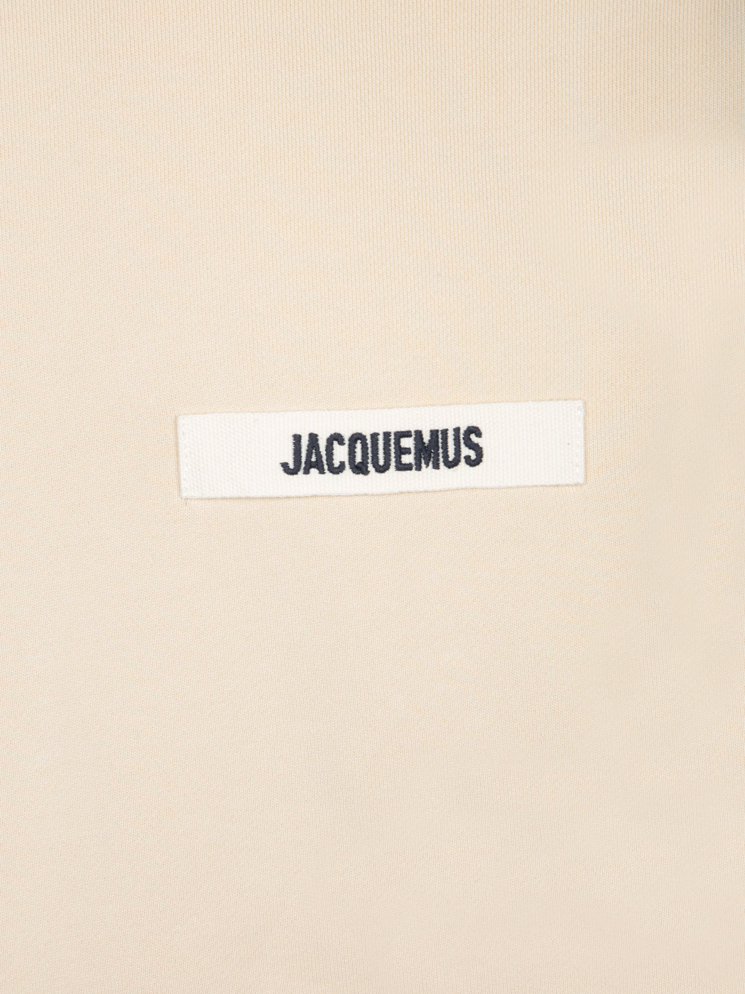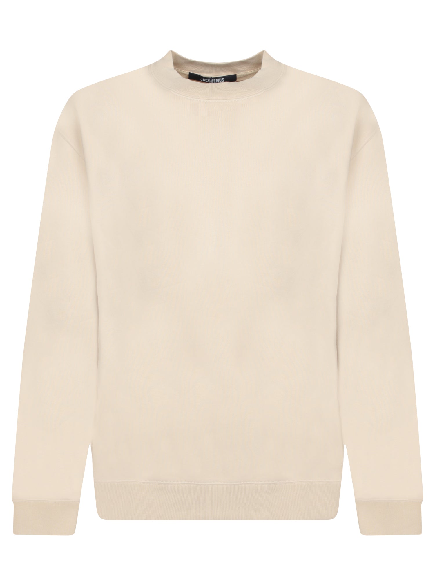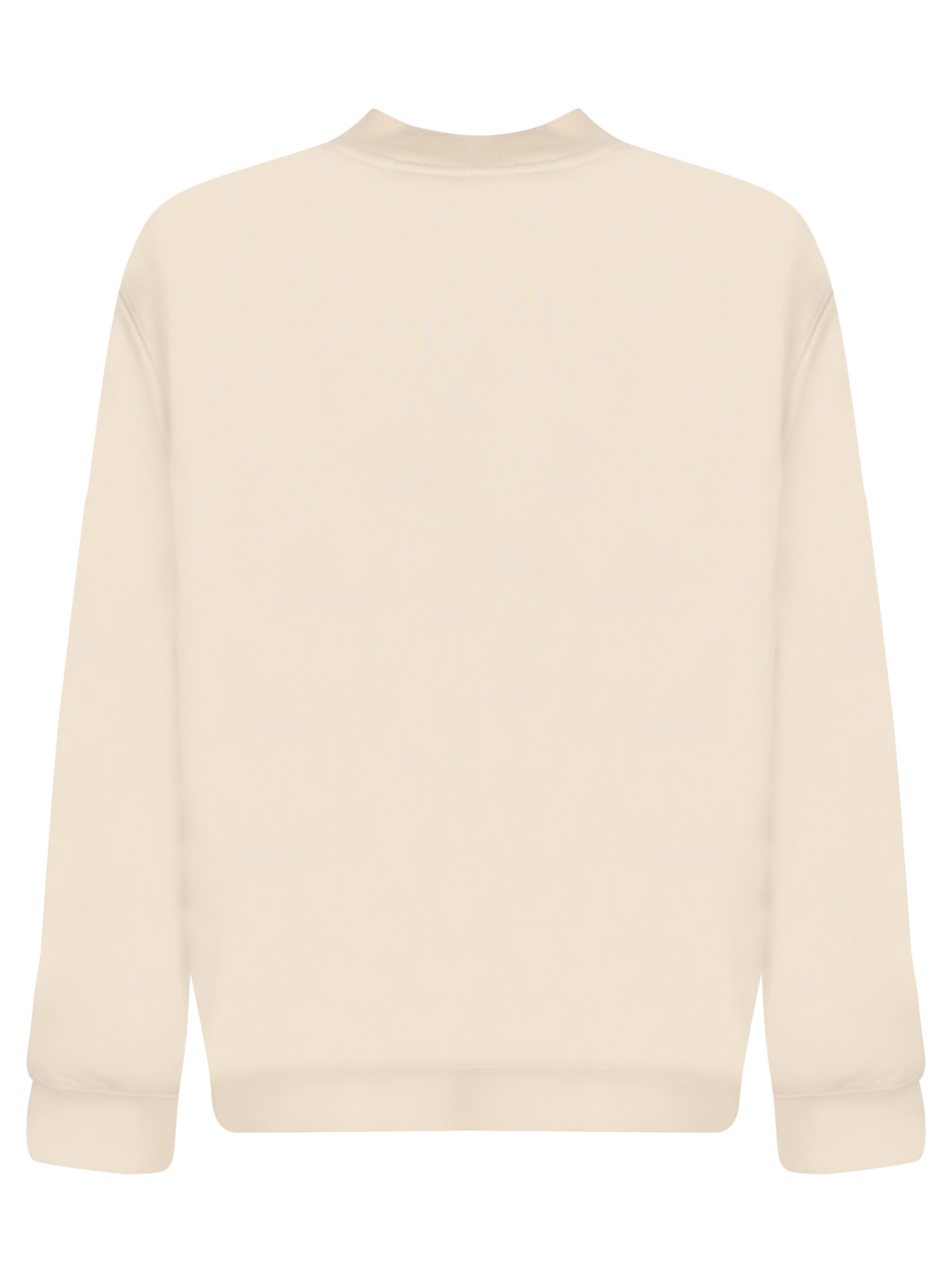 Crew neck sweatshirt in soft cotton fabric. Ribbed finishes on collar, cuffs, and hem. Solid beige color.