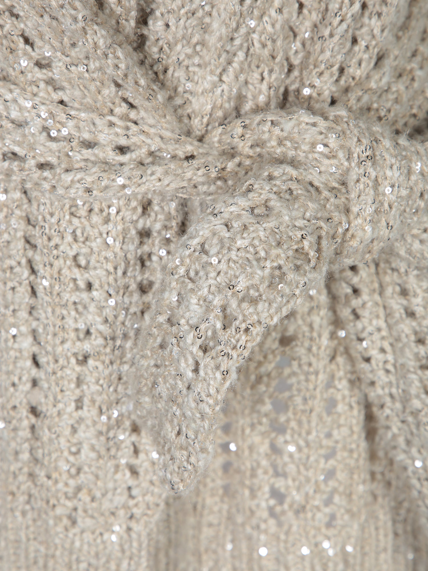 Long-sleeve crochet cardigan with a coordinating belt. Wool-blend fabric with a glittery finish.