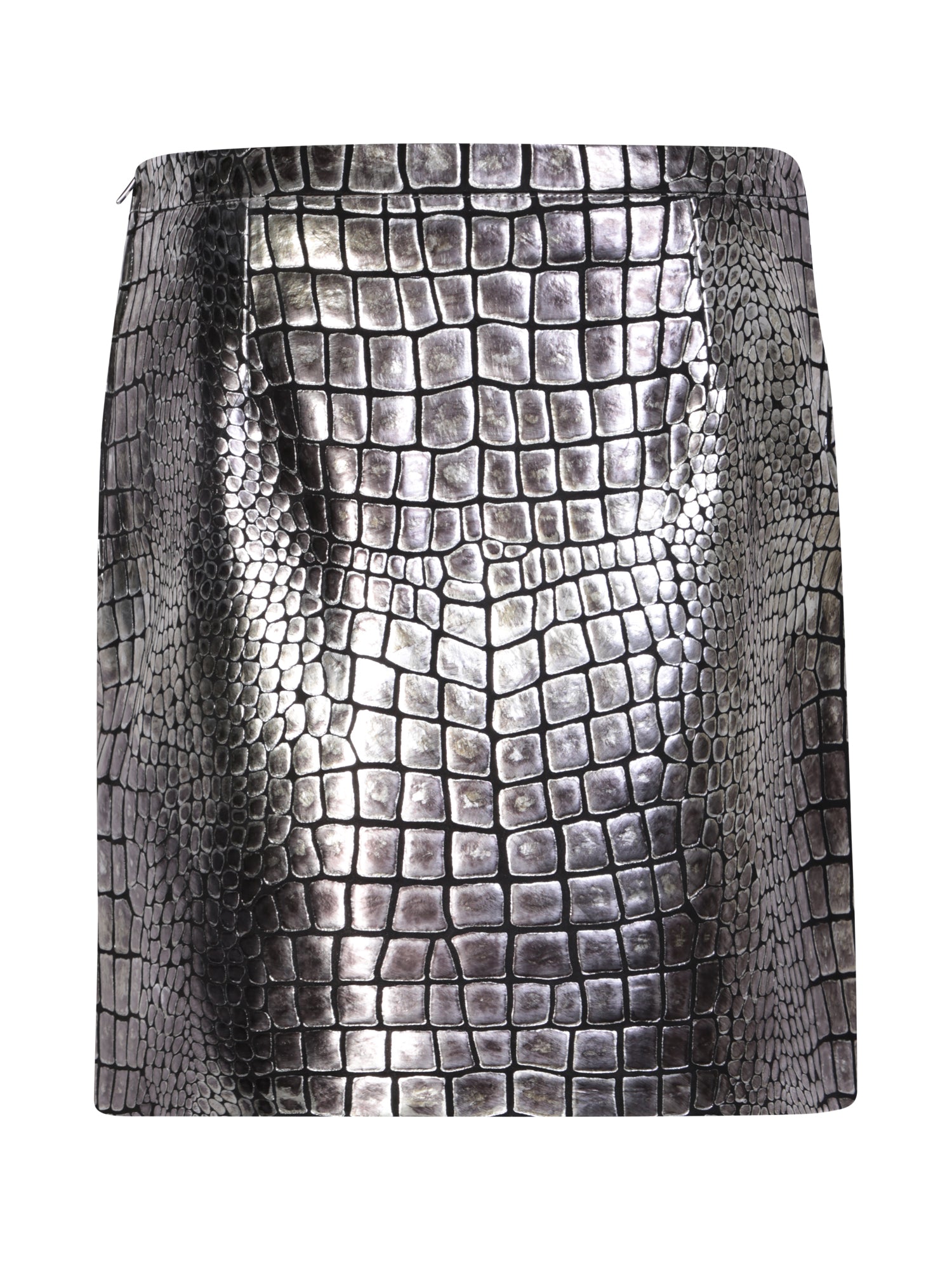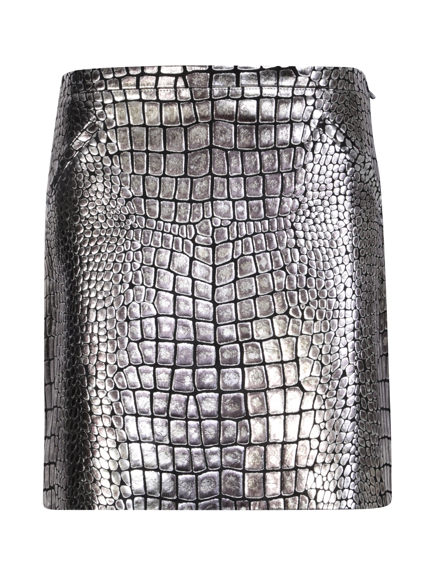 Crocodile-effect metallic leather miniskirt by Tom Ford. An exemplary brand of glamour, through this garment the quality and attention to detail placed